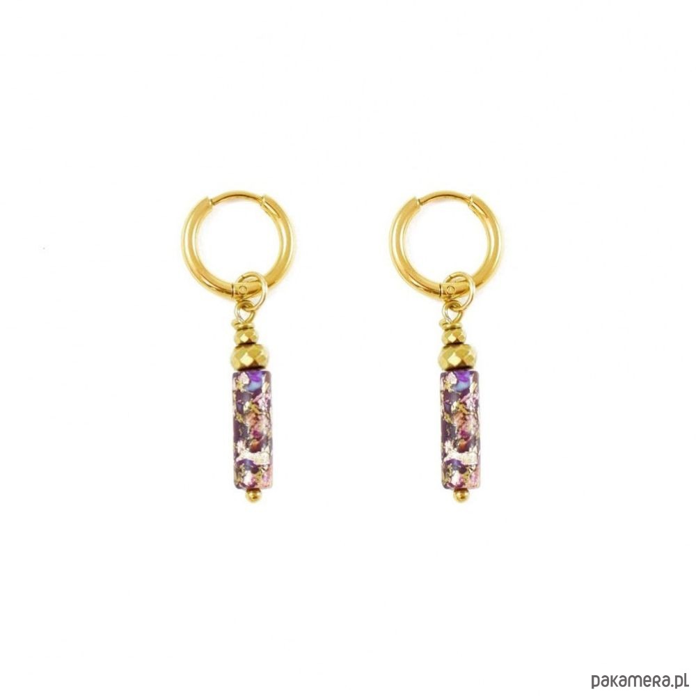 Kolczyki z baryłką śliwkowego Jaspisu cesarskiego Pozłacana stal szlachetna