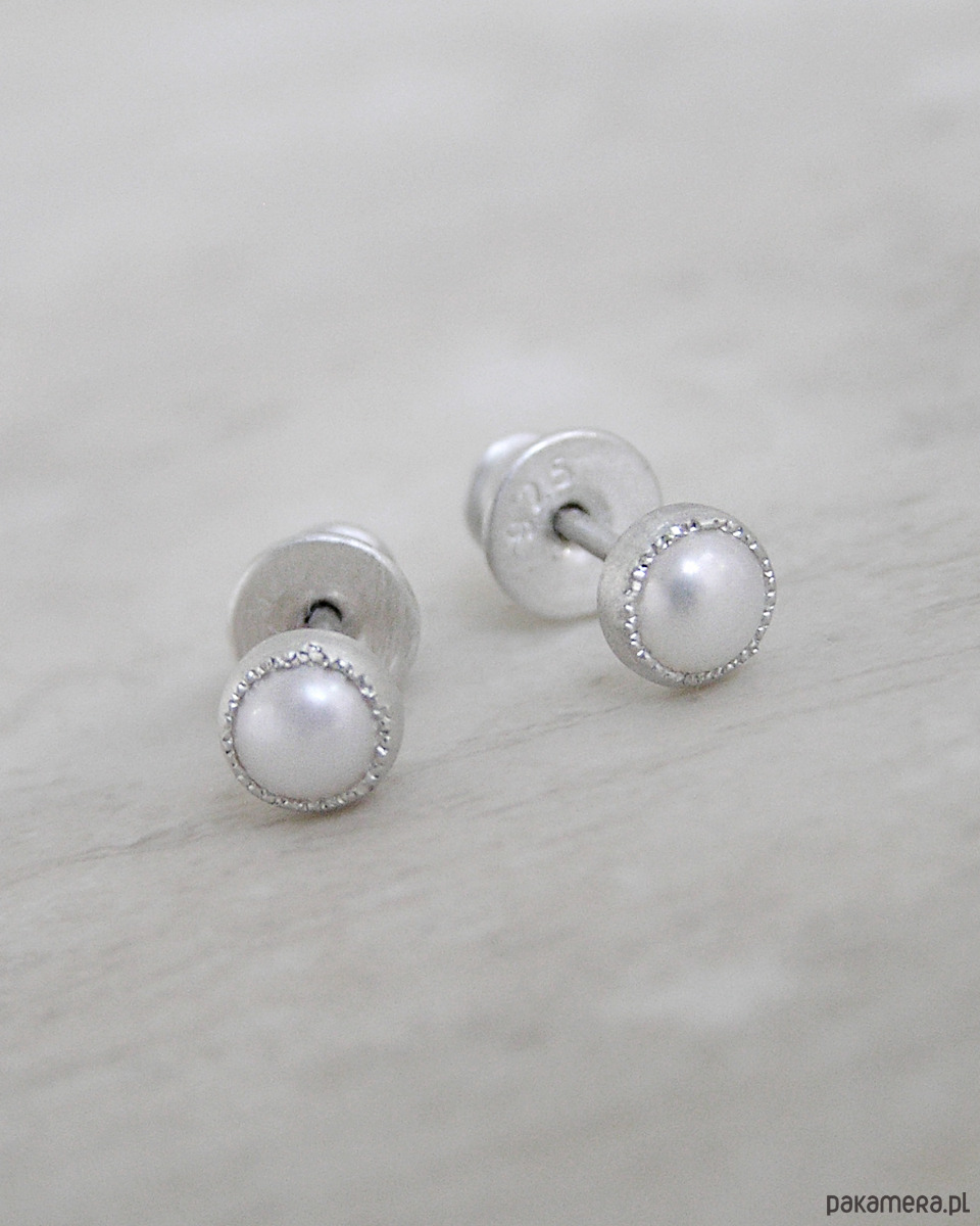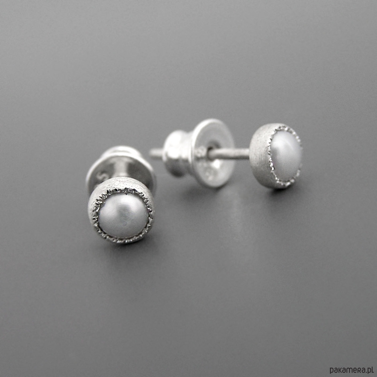 Unikatowe maleńkie kolczyki wykonane ze srebra 925 z białymi perłami.