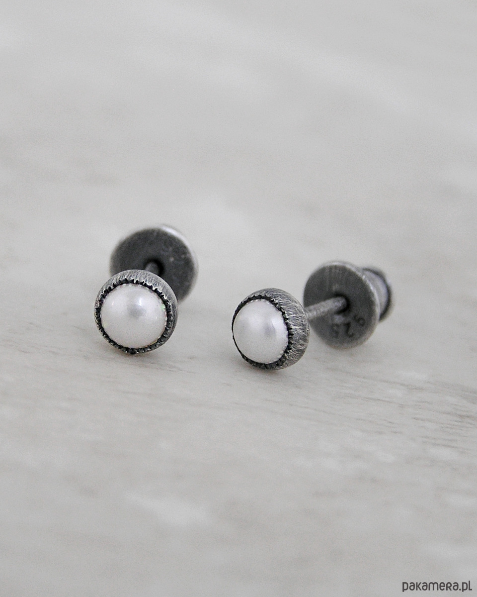 Unikatowe maleńkie kolczyki wykonane ze srebra 925 z białymi perłami.