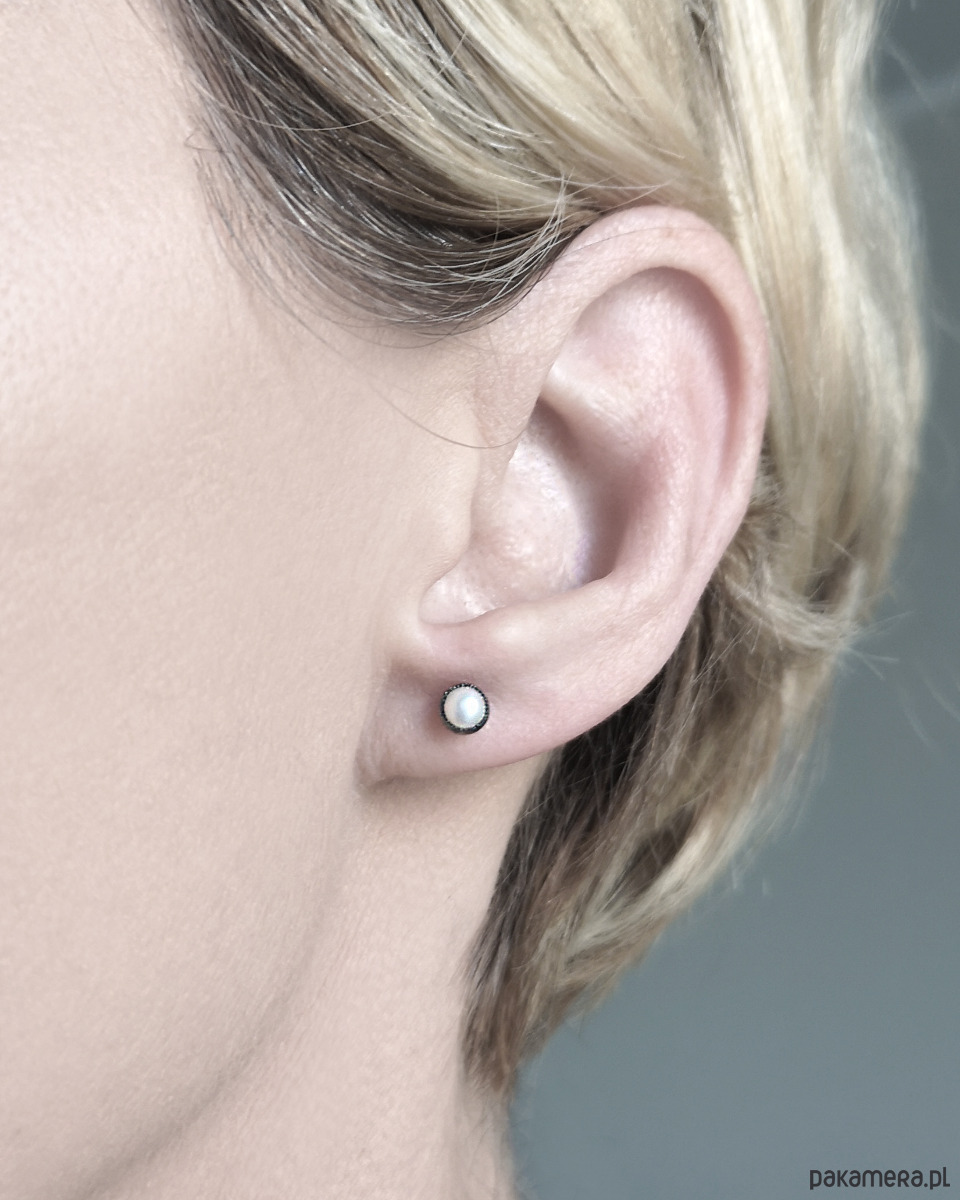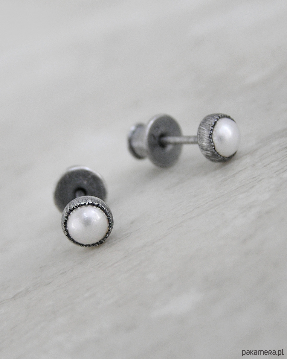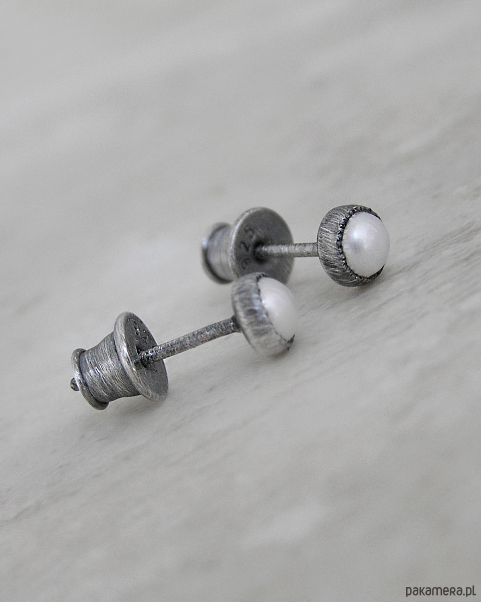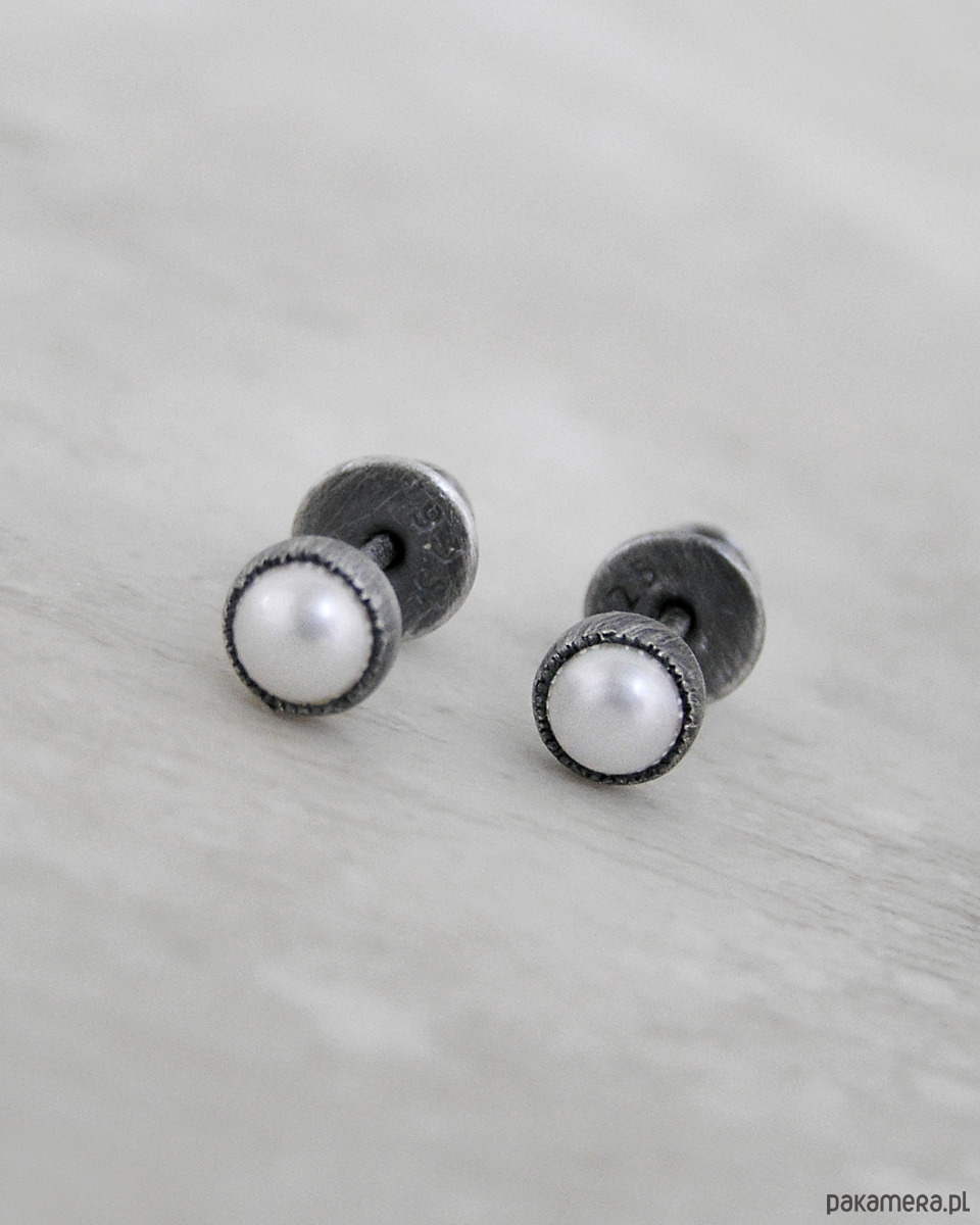 Kolczyki z białą perłą, srebro