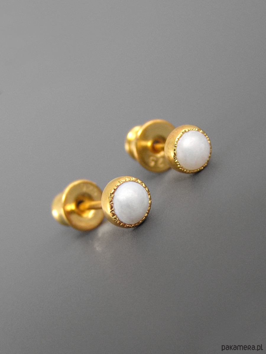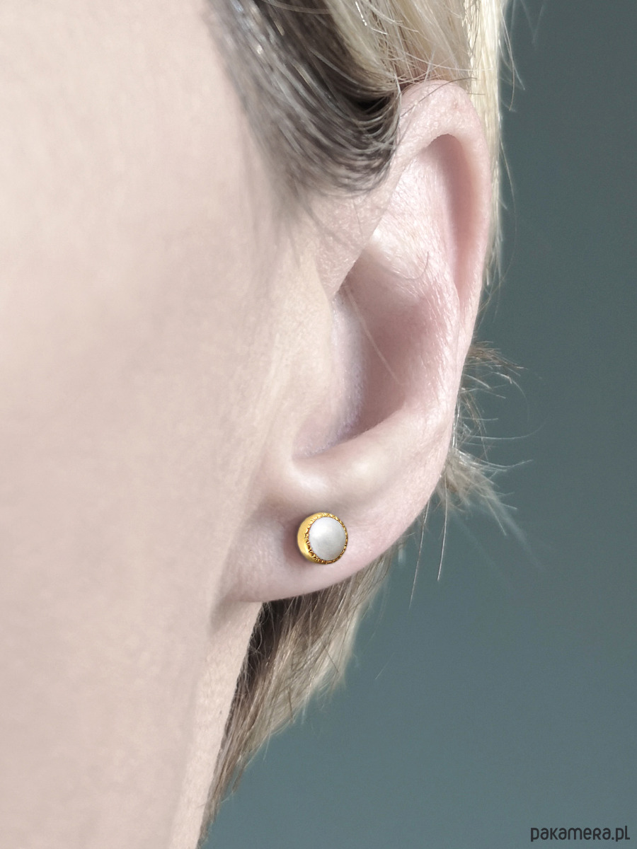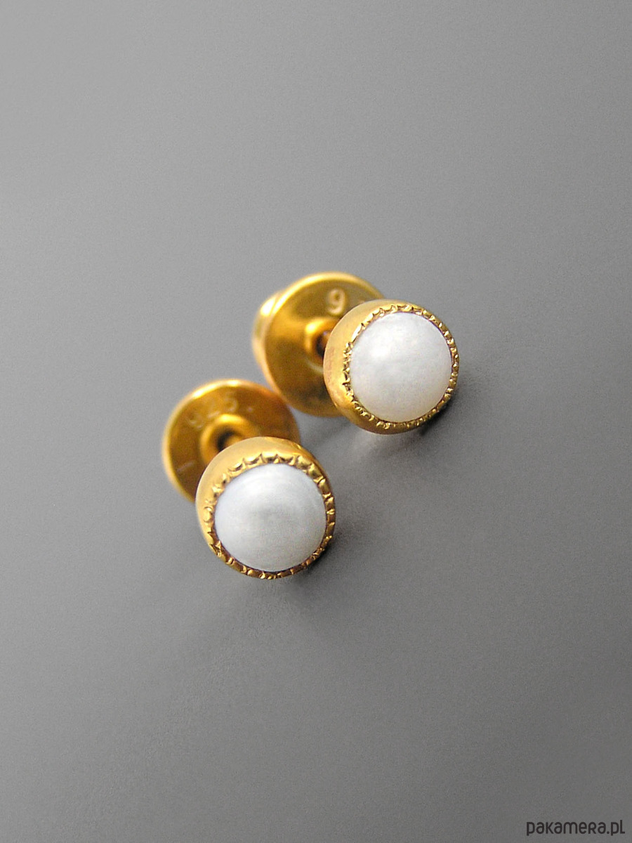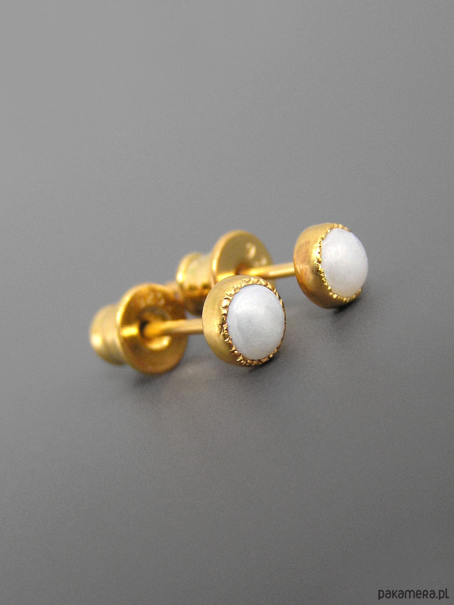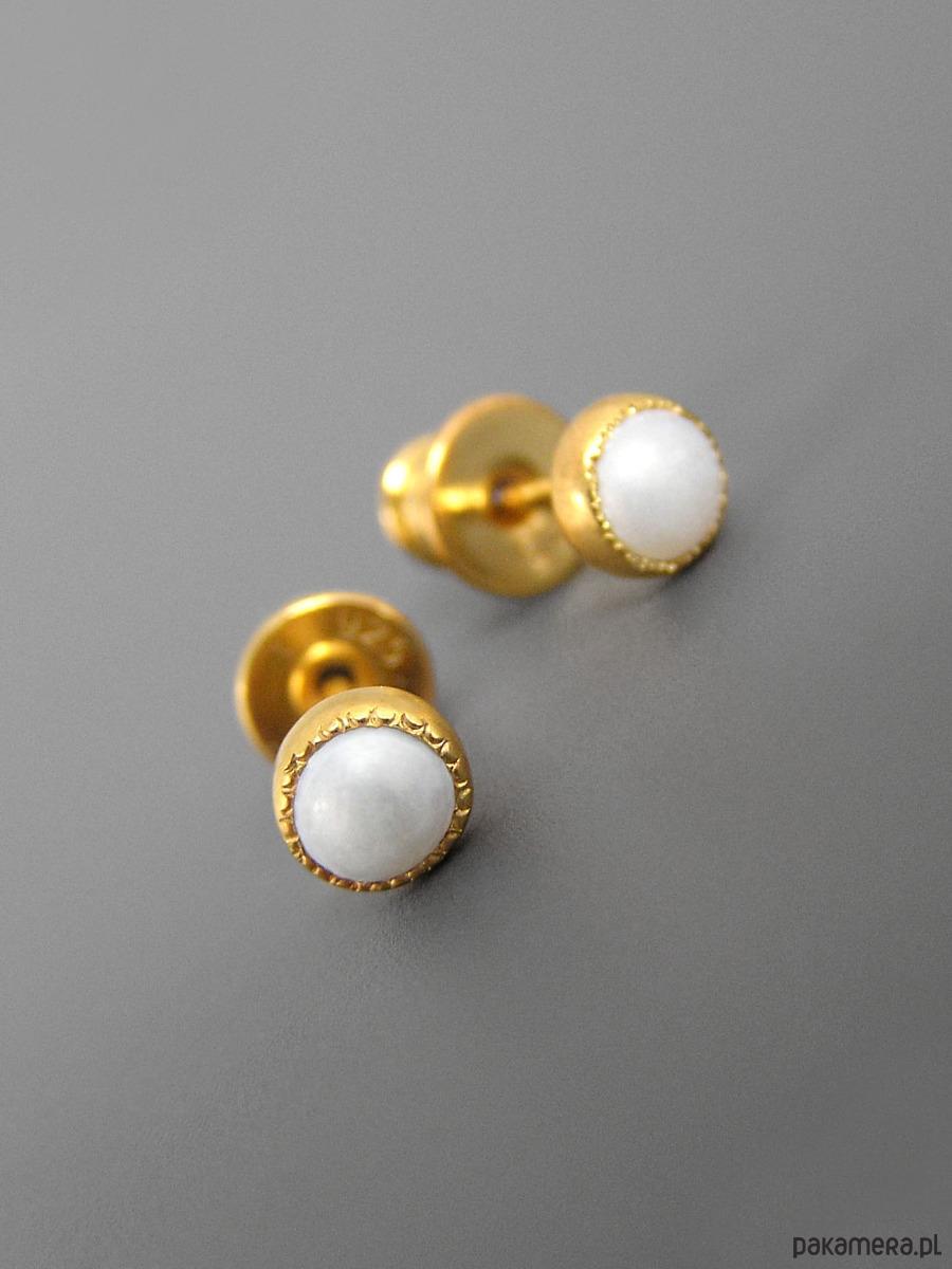Kolczyki z białą perłą, srebro pozłacane