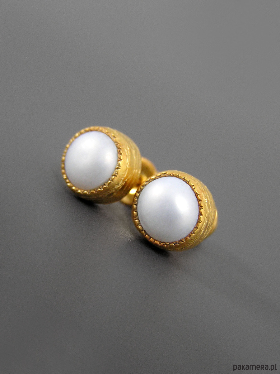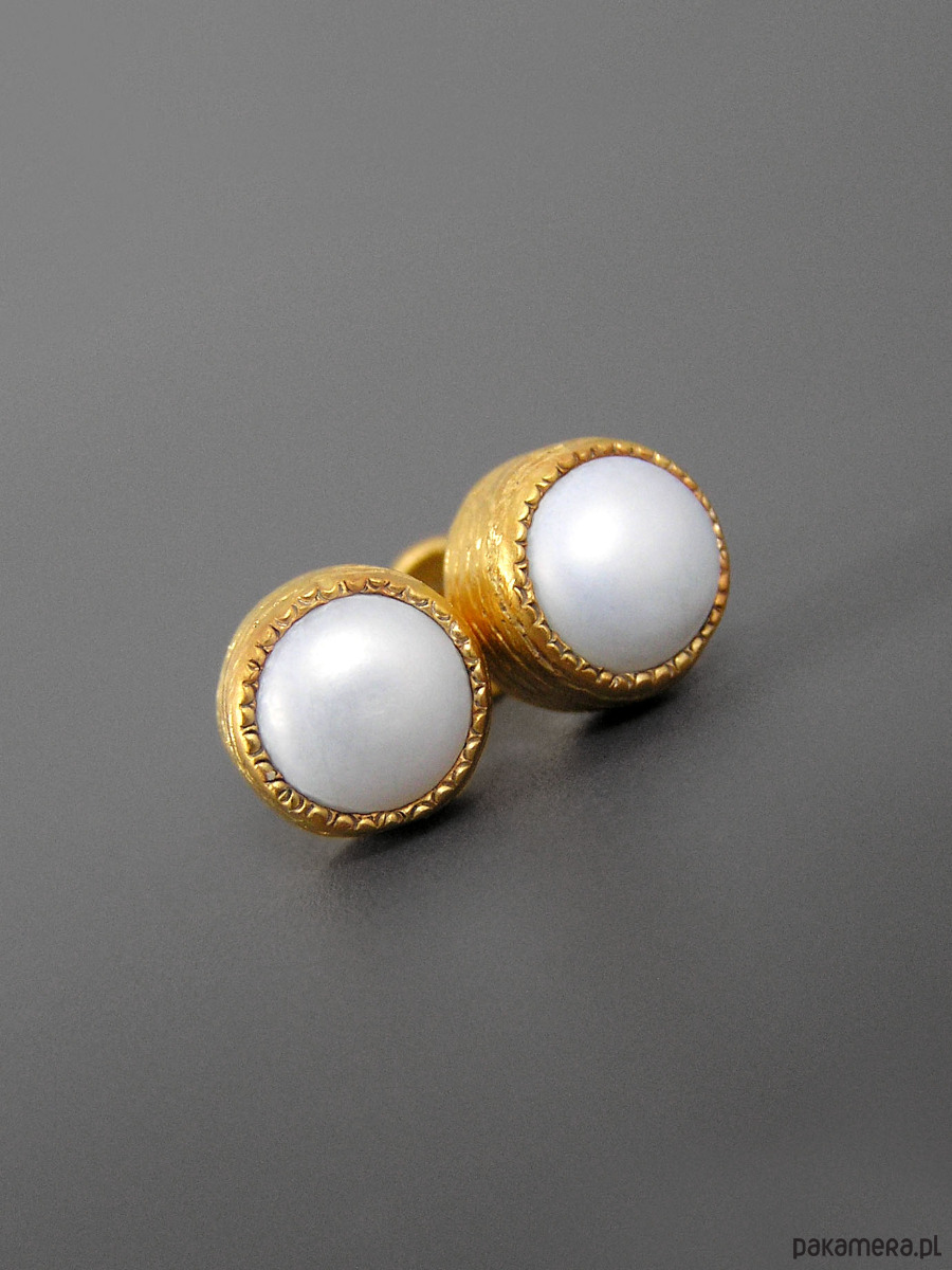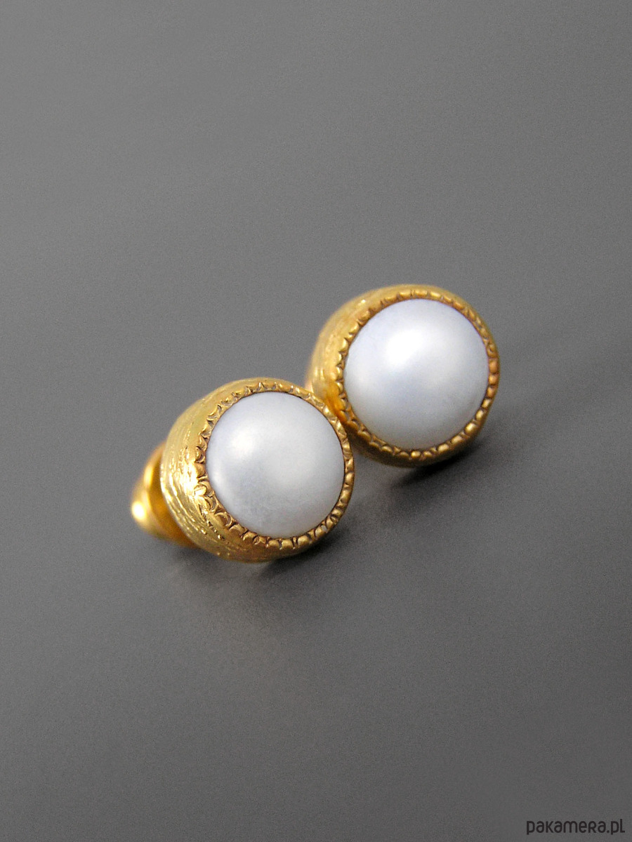 Kolczyki z białymi perłami, srebro pozłacane