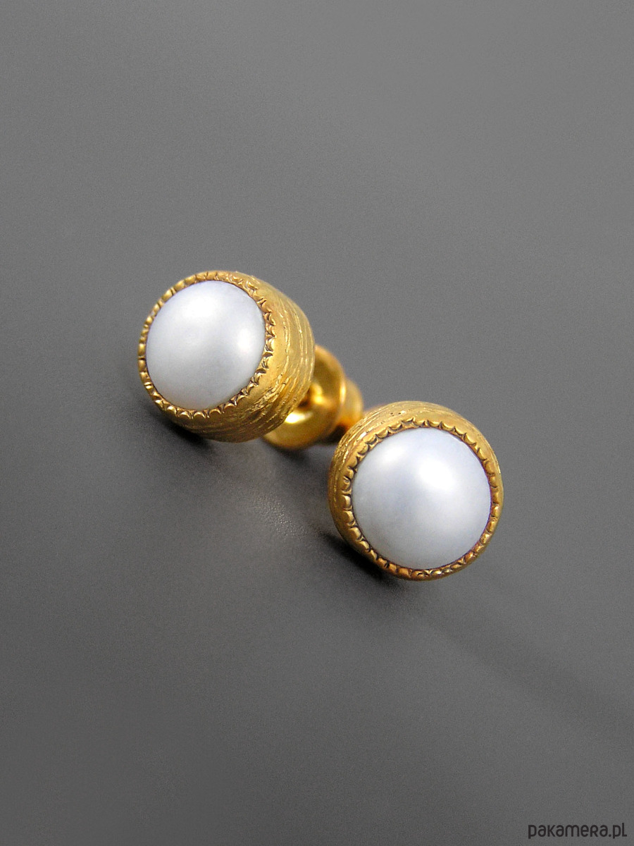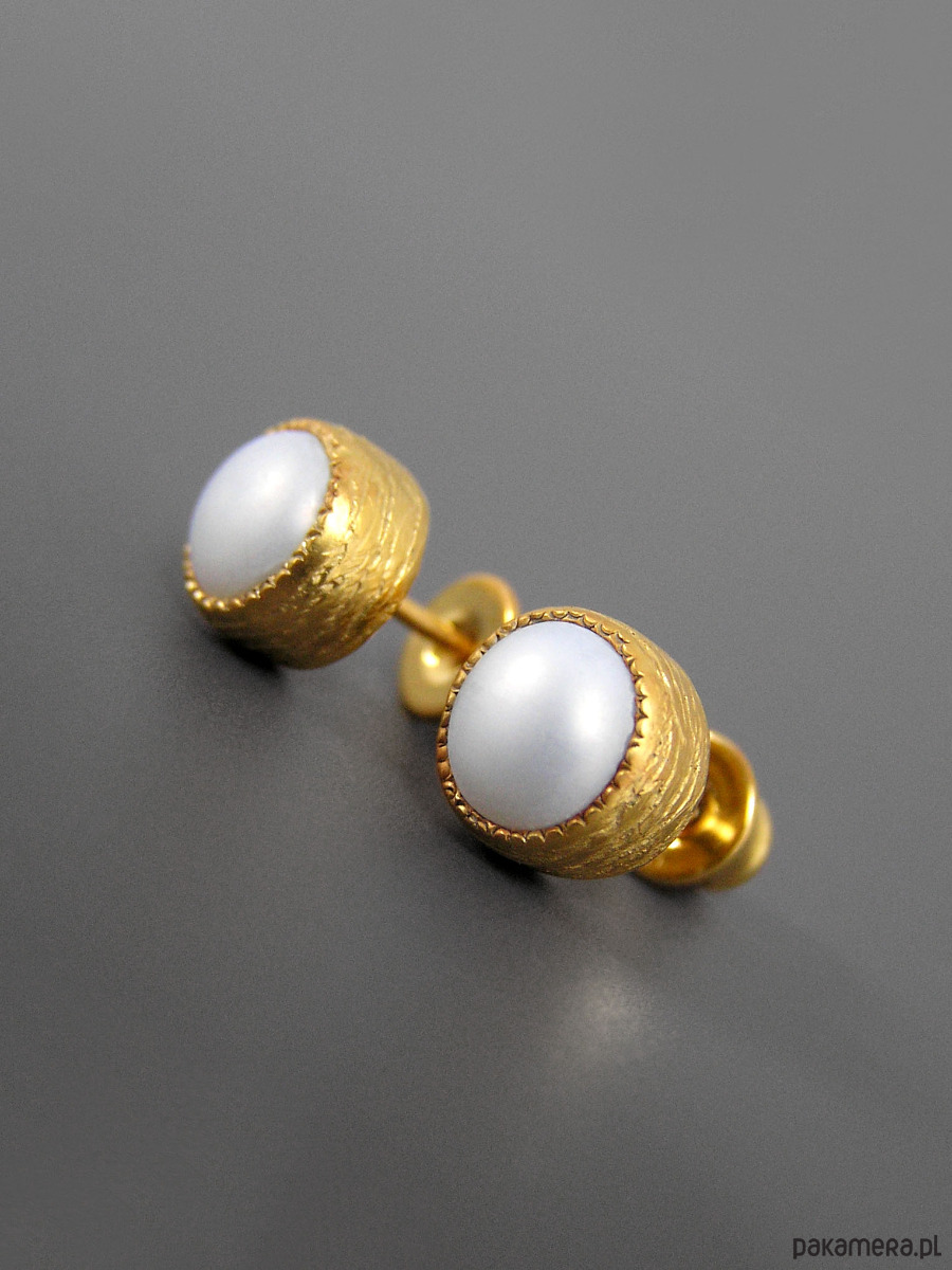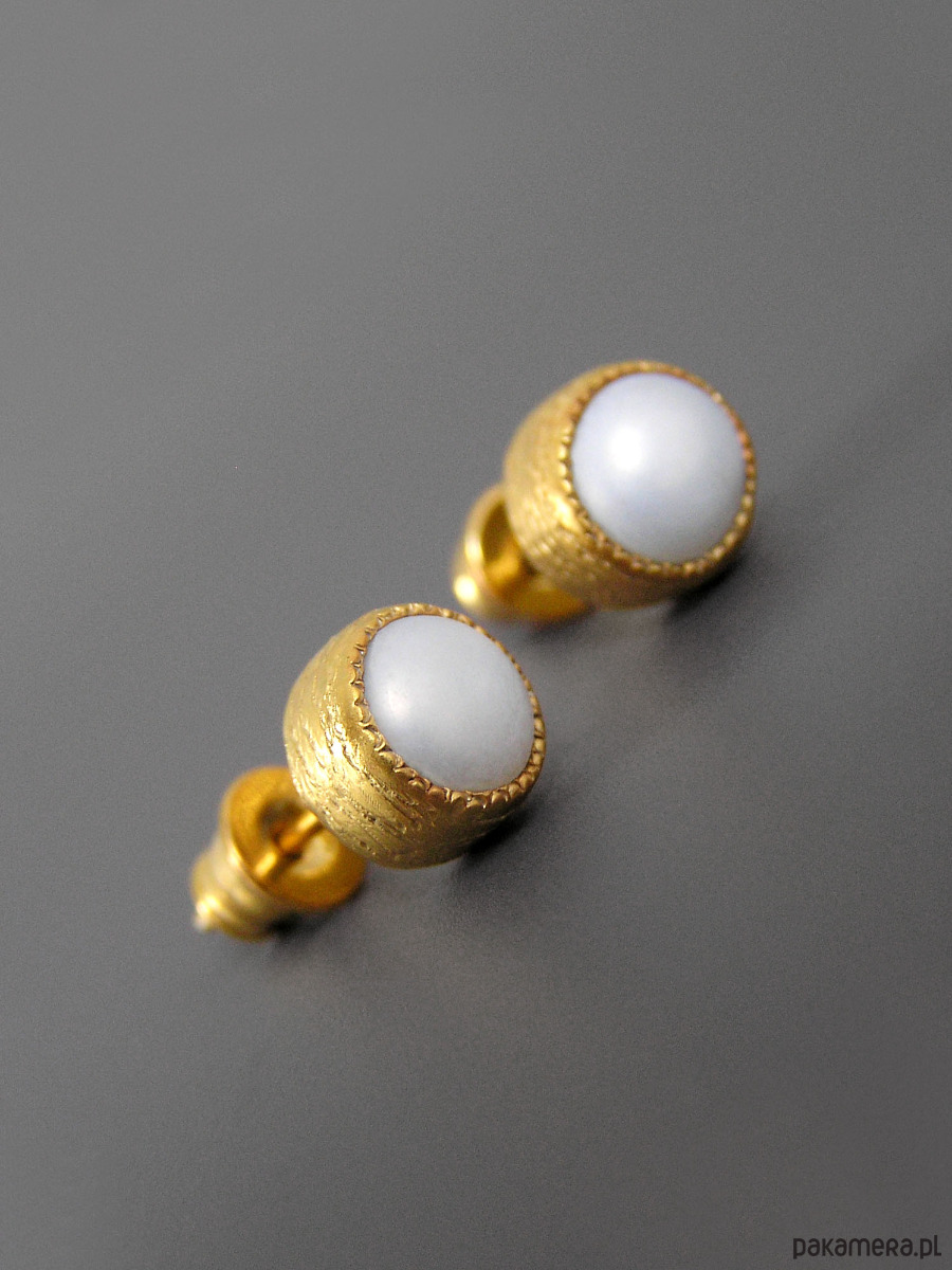 Kolczyki z białymi perłami, srebro pozłacane