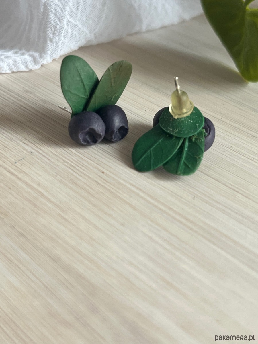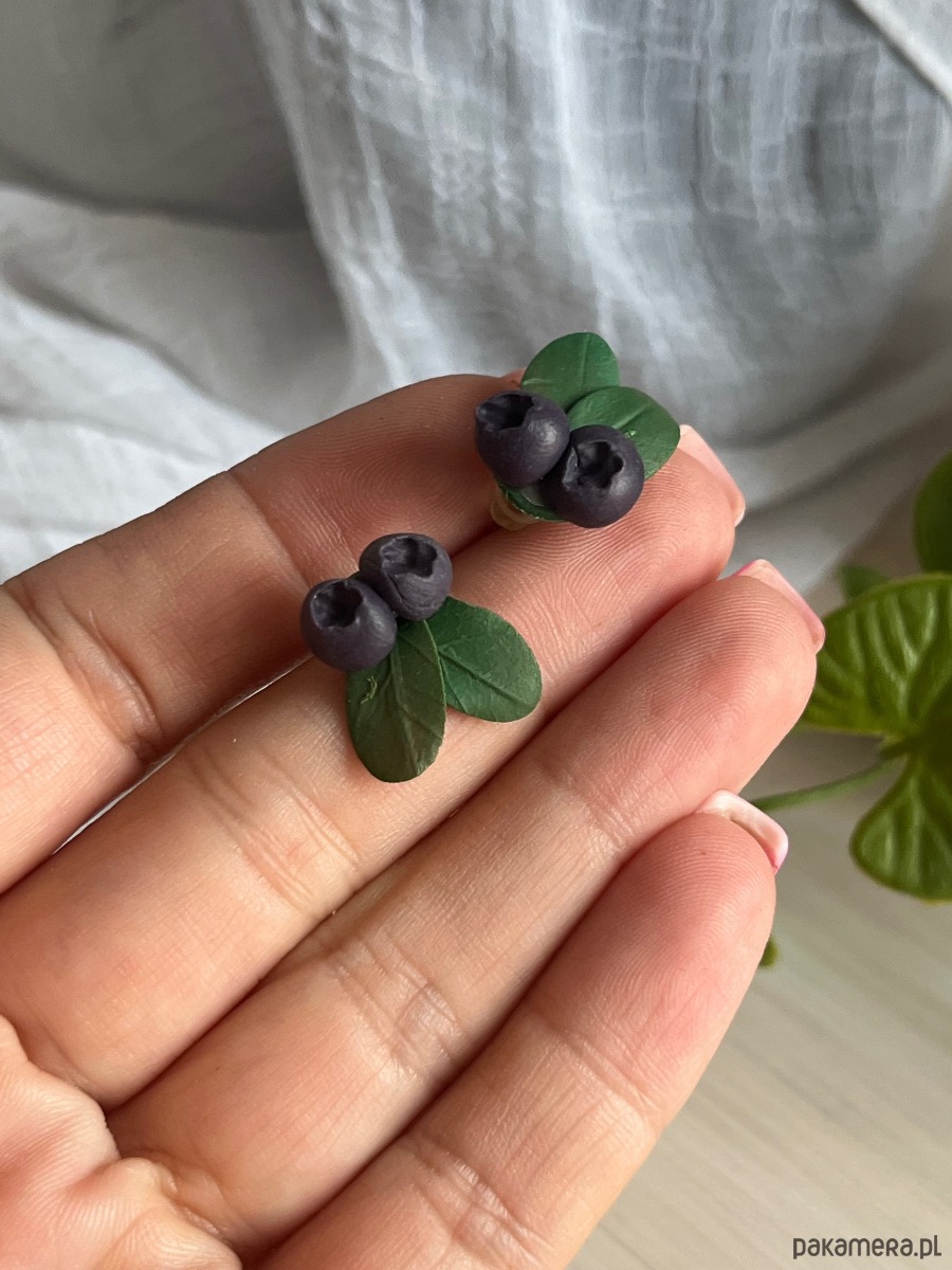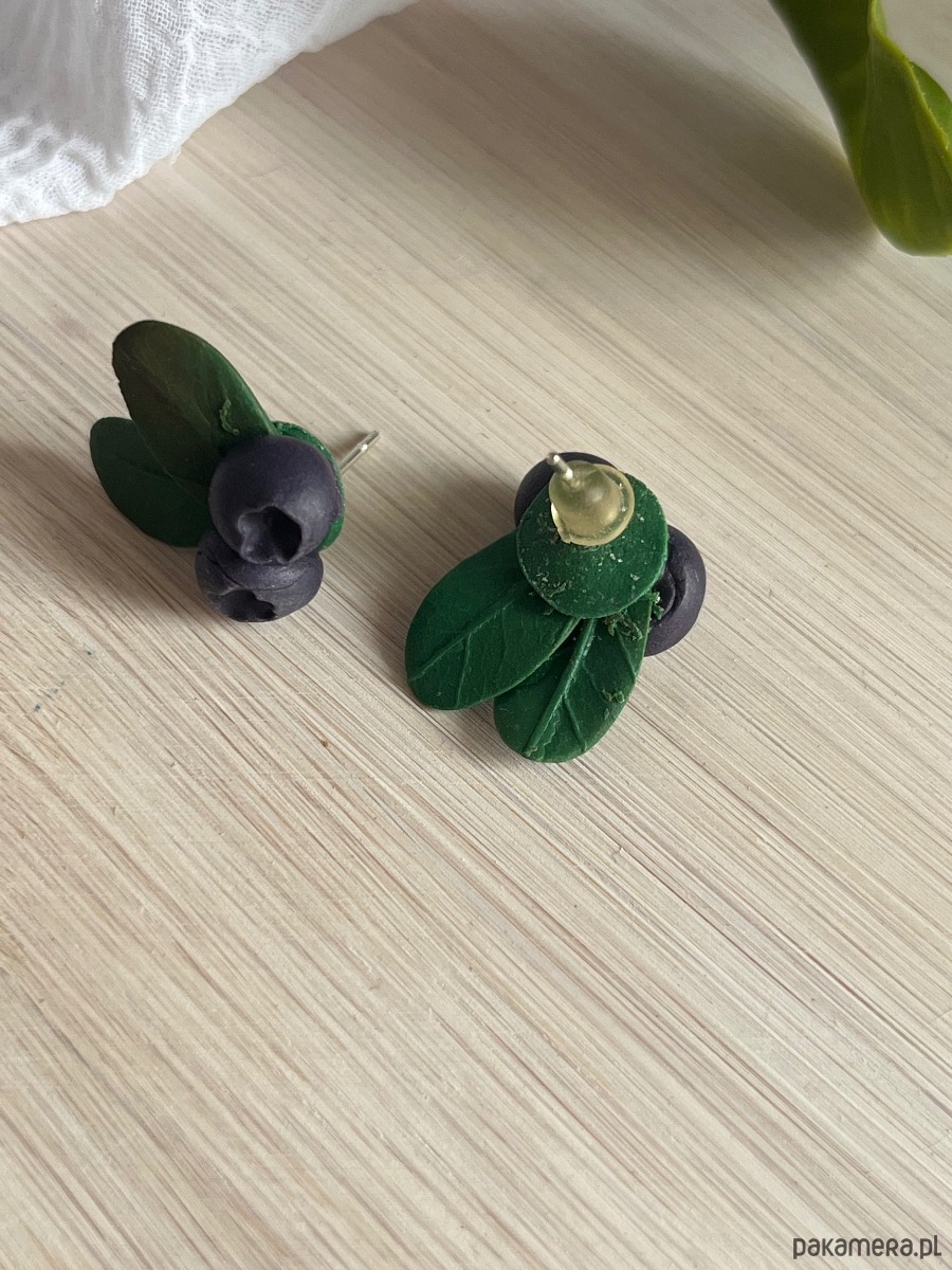 Kolczyki z borówkami, kolczyki sztyfty z gliny polimerowej