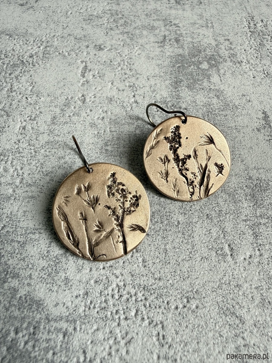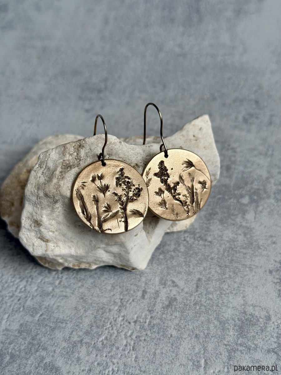 Kolczyki z brązu z odciskiem prawdziwych roślin