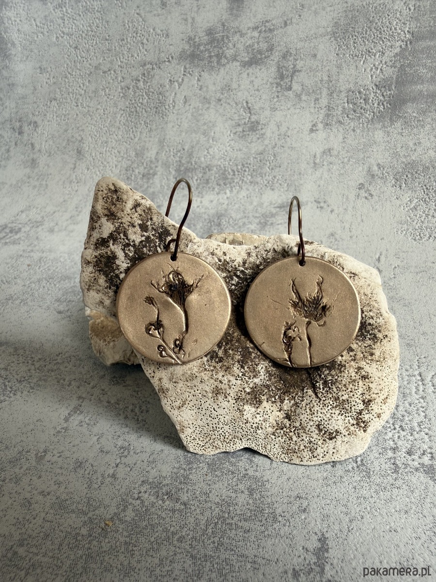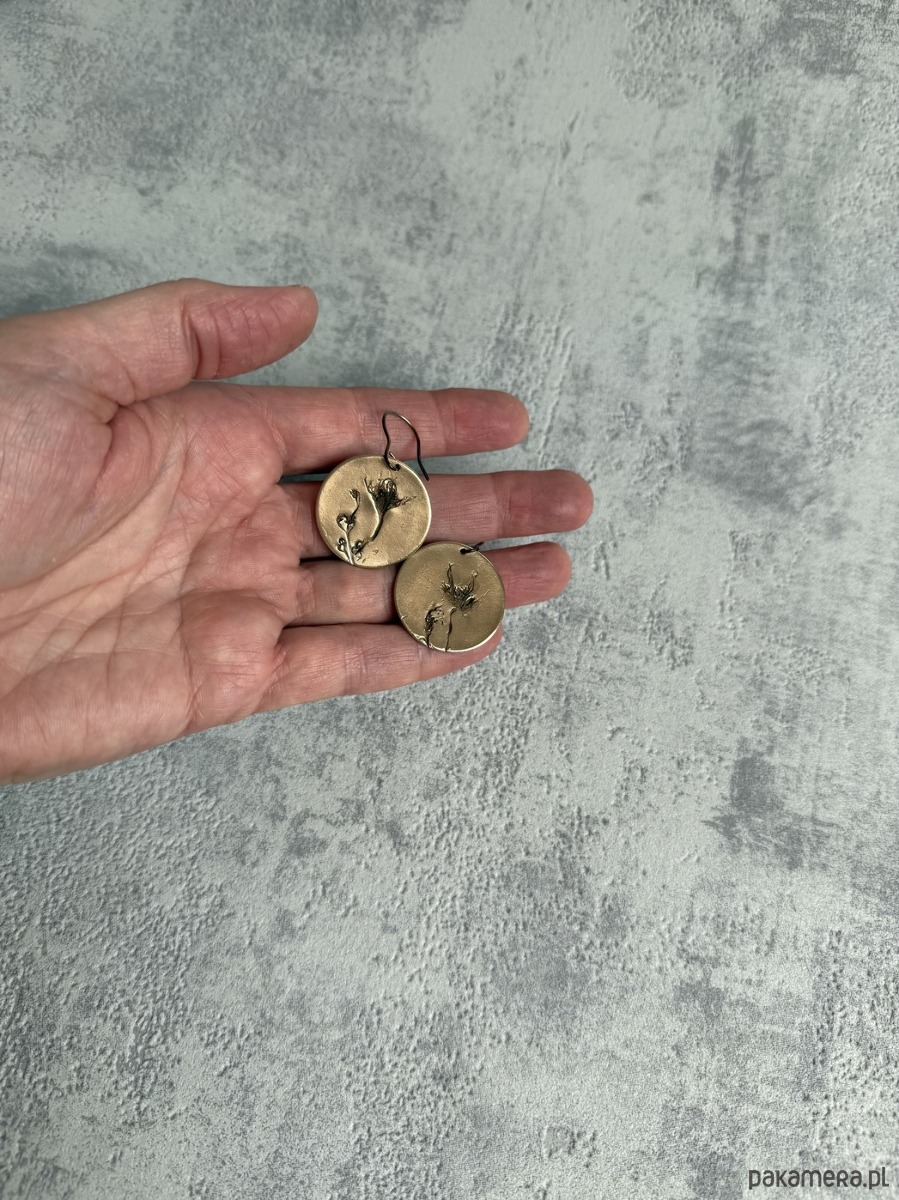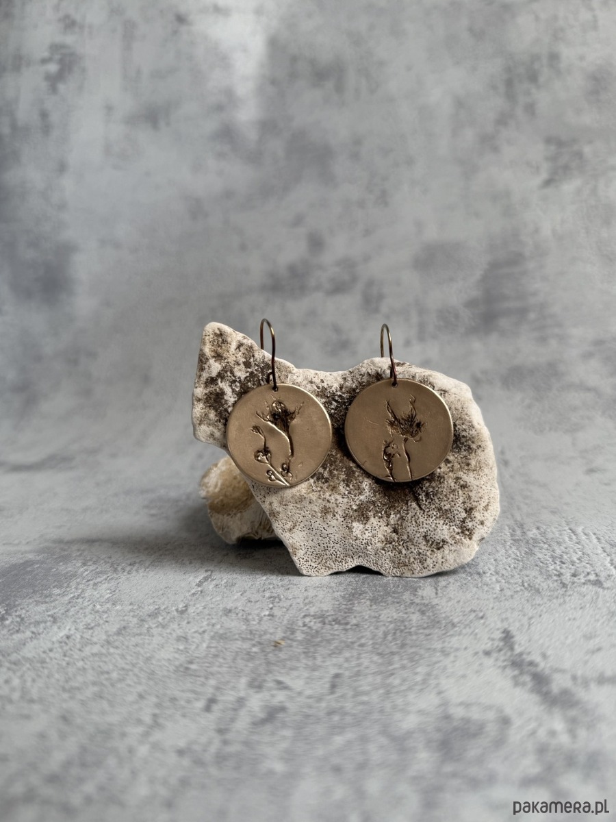 Kolczyki z brązu z unikatowym odciskiem prawdziwych roślin