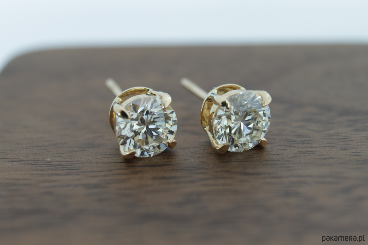 Kolczyki z brylantami, 14 karatowe żółte złoto
