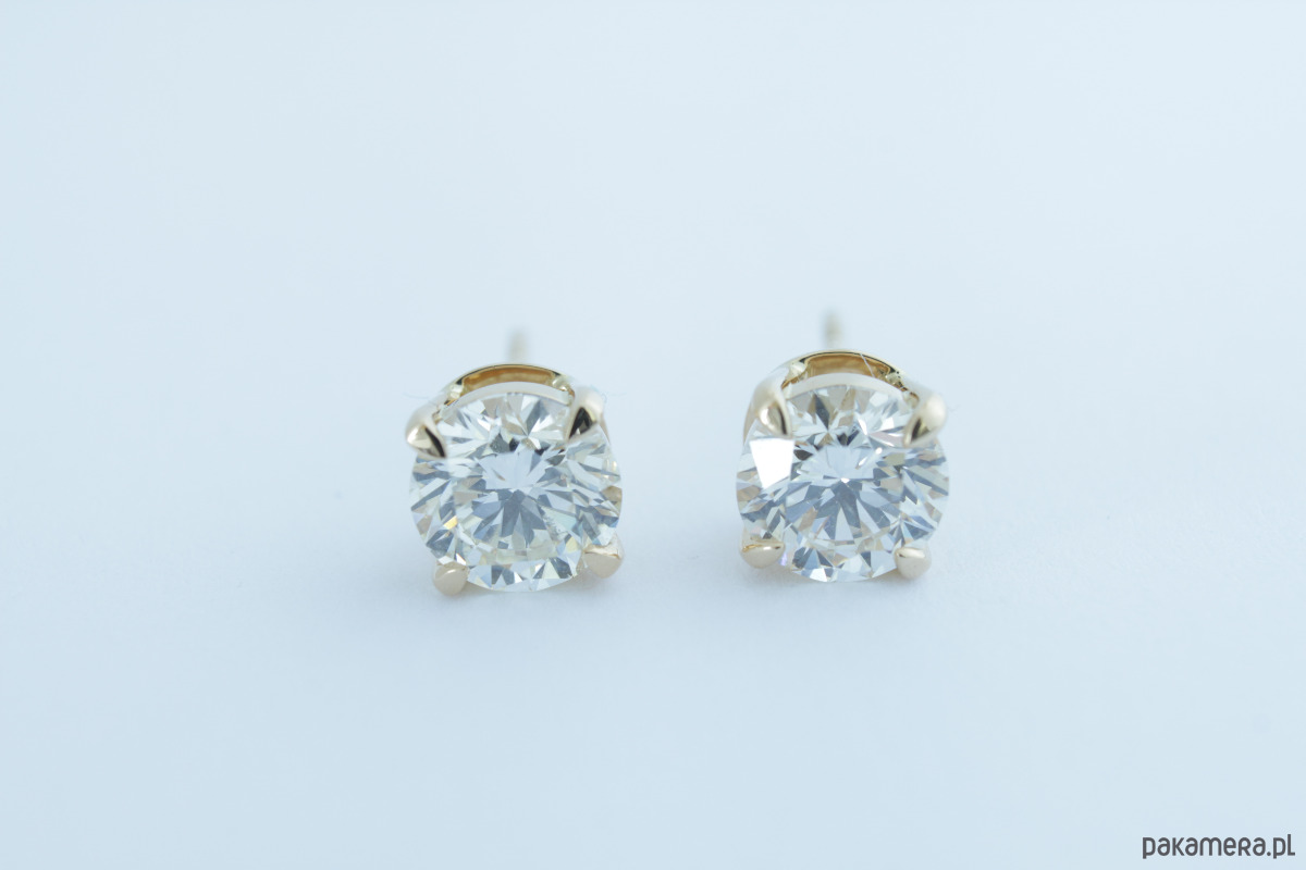 Brylanty naturalne, szlif 3 x excellent, barwa minimum H, czystość minimum VS. Kamienie z certyfikatami.