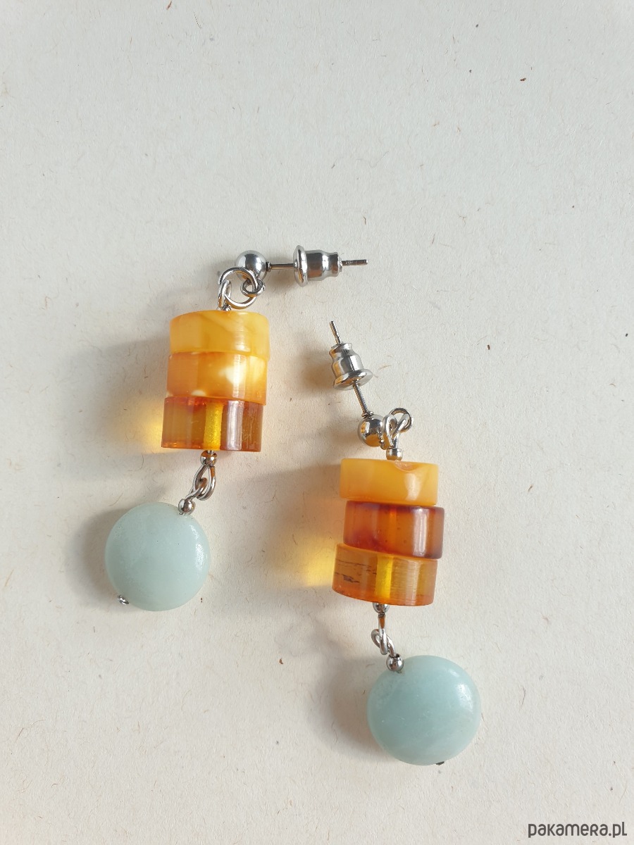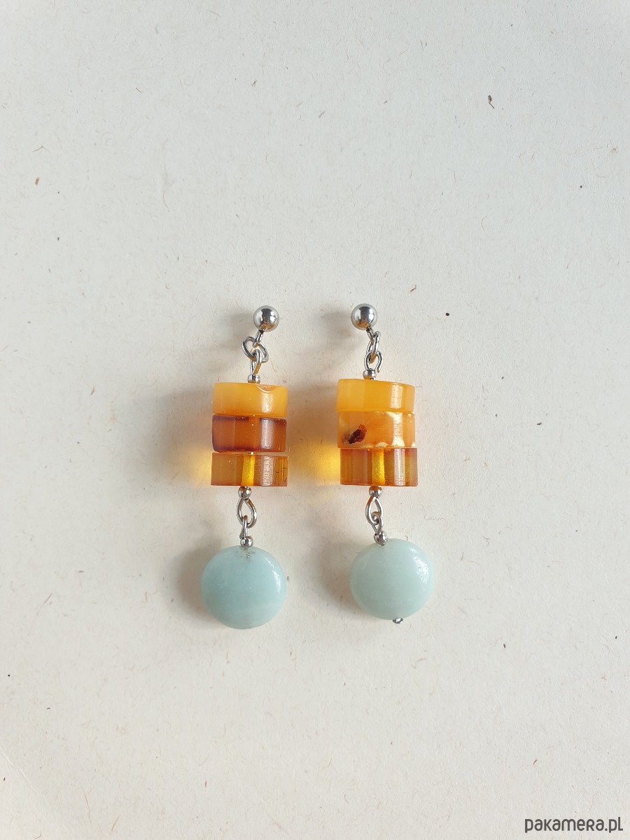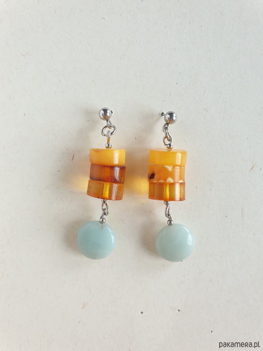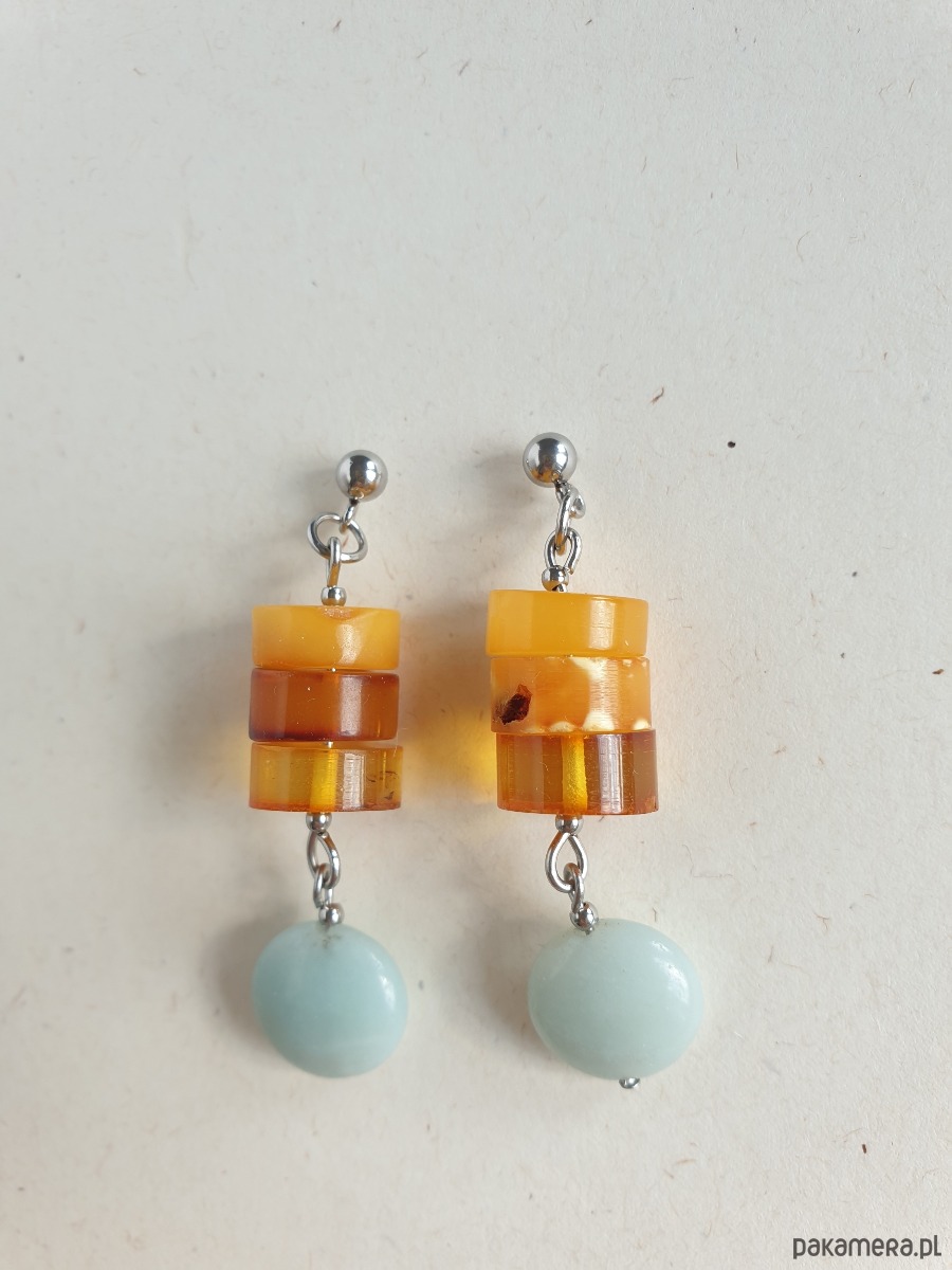 Kolczyki z bursztynem i amazonitem, regularne