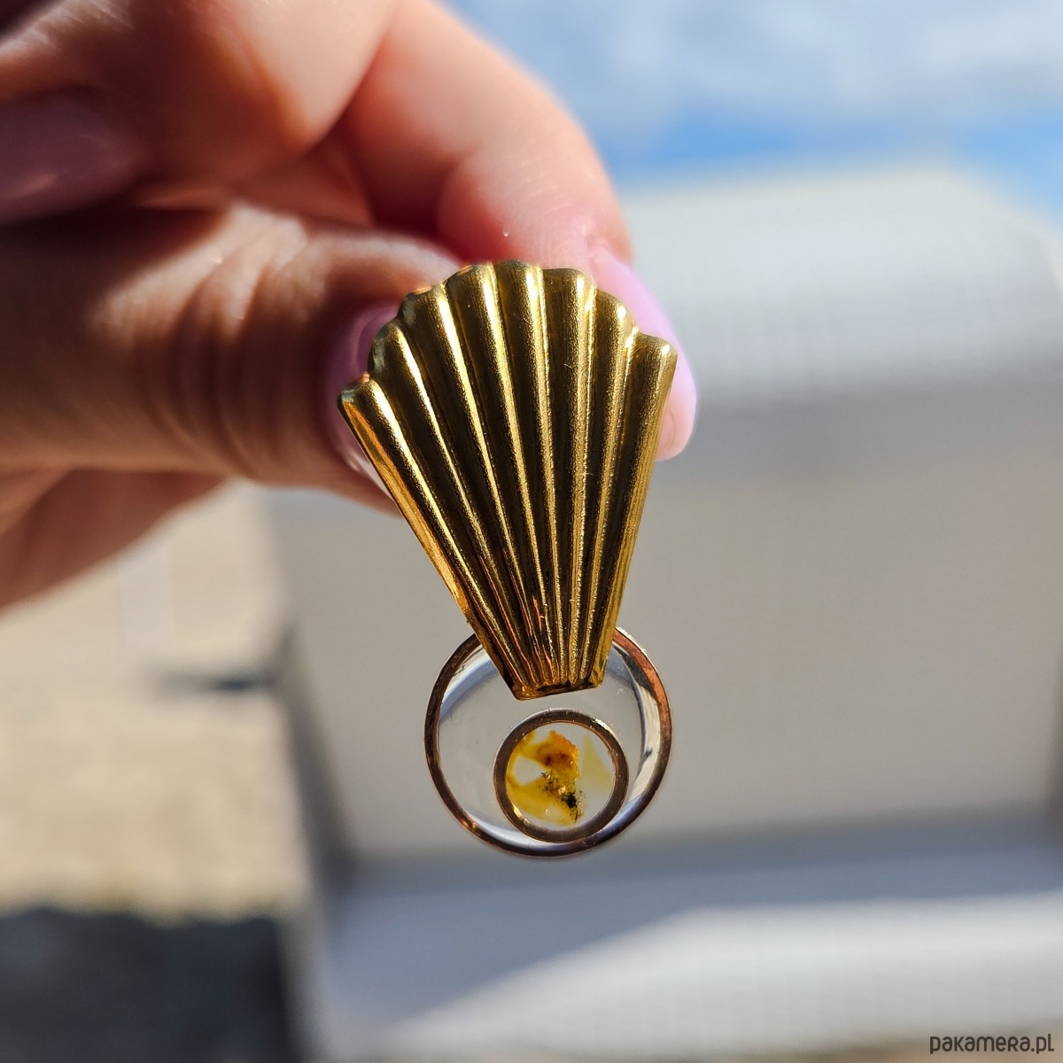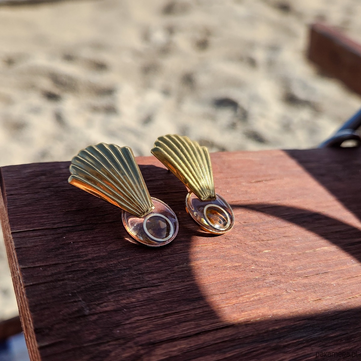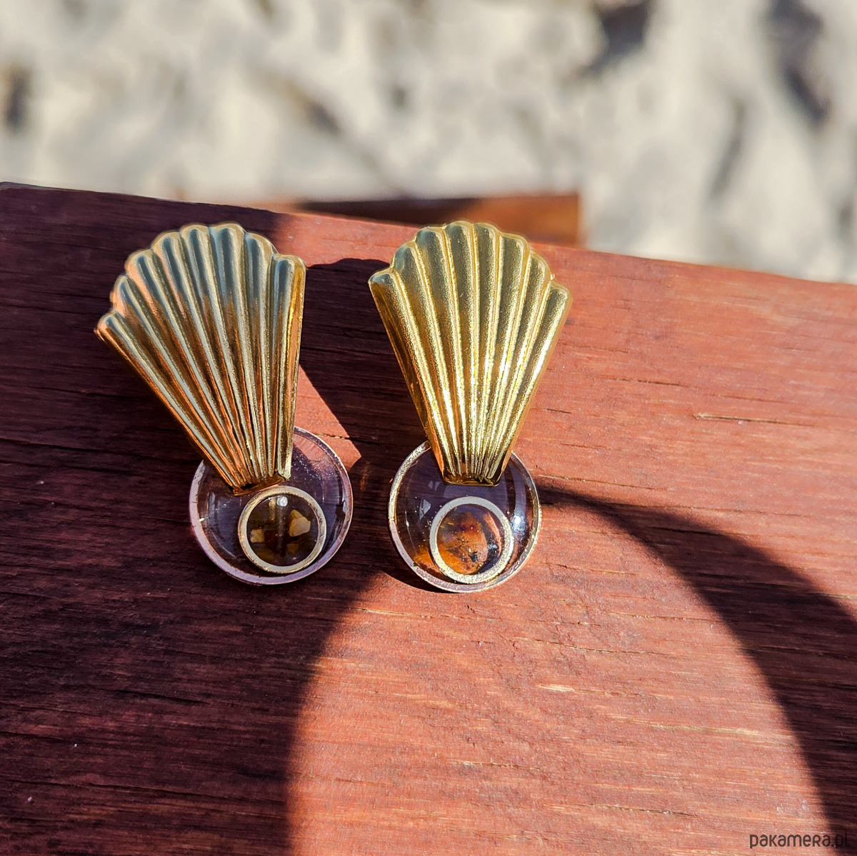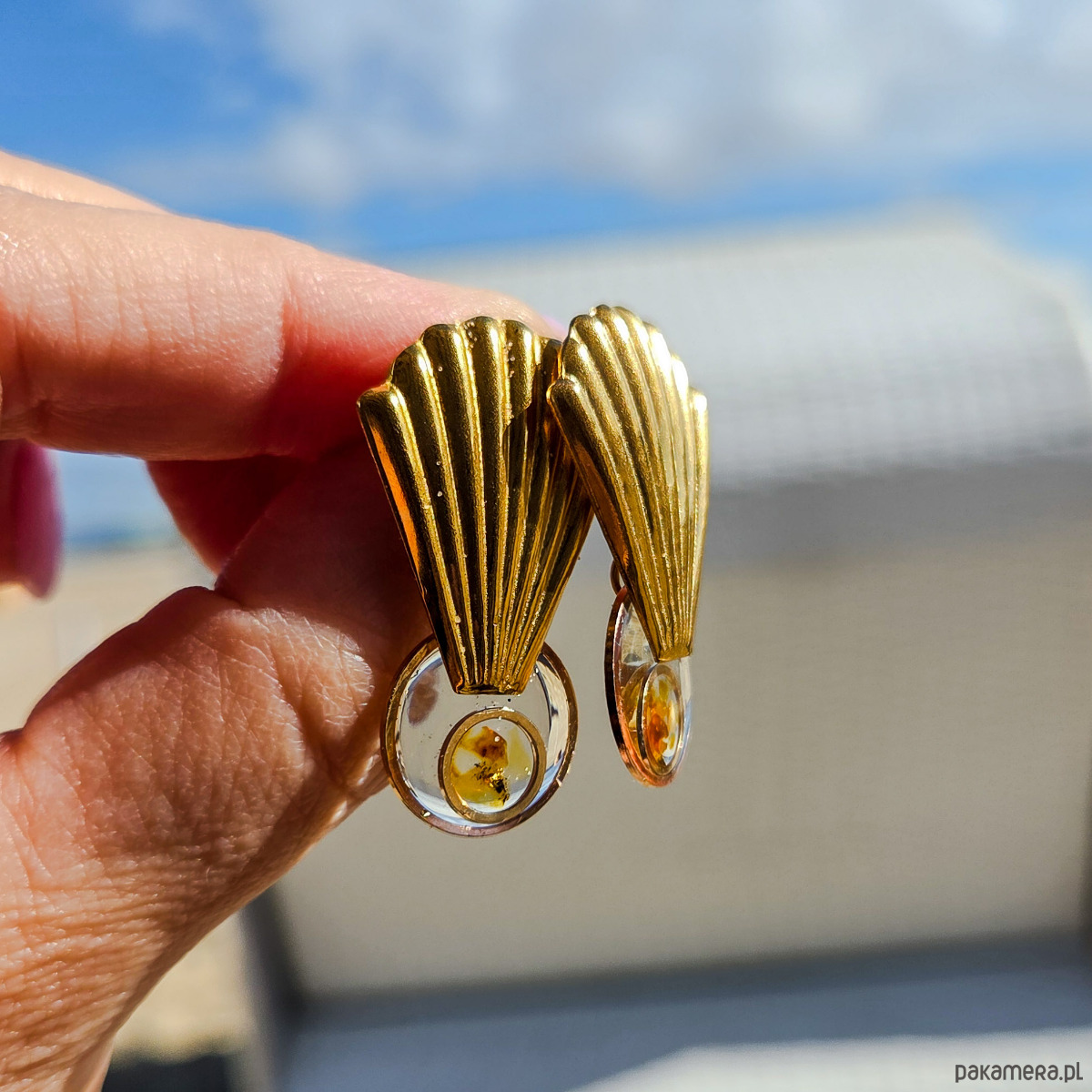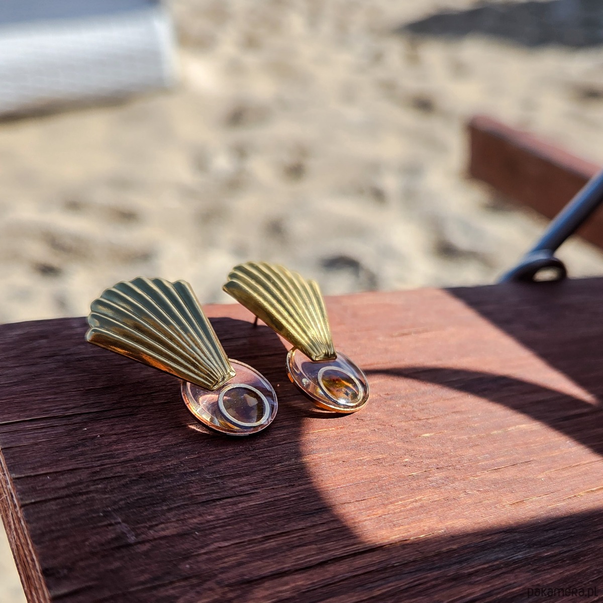 Kolczyki sztyfty z bursztynem zatopionym w żywicy epoksydowej.