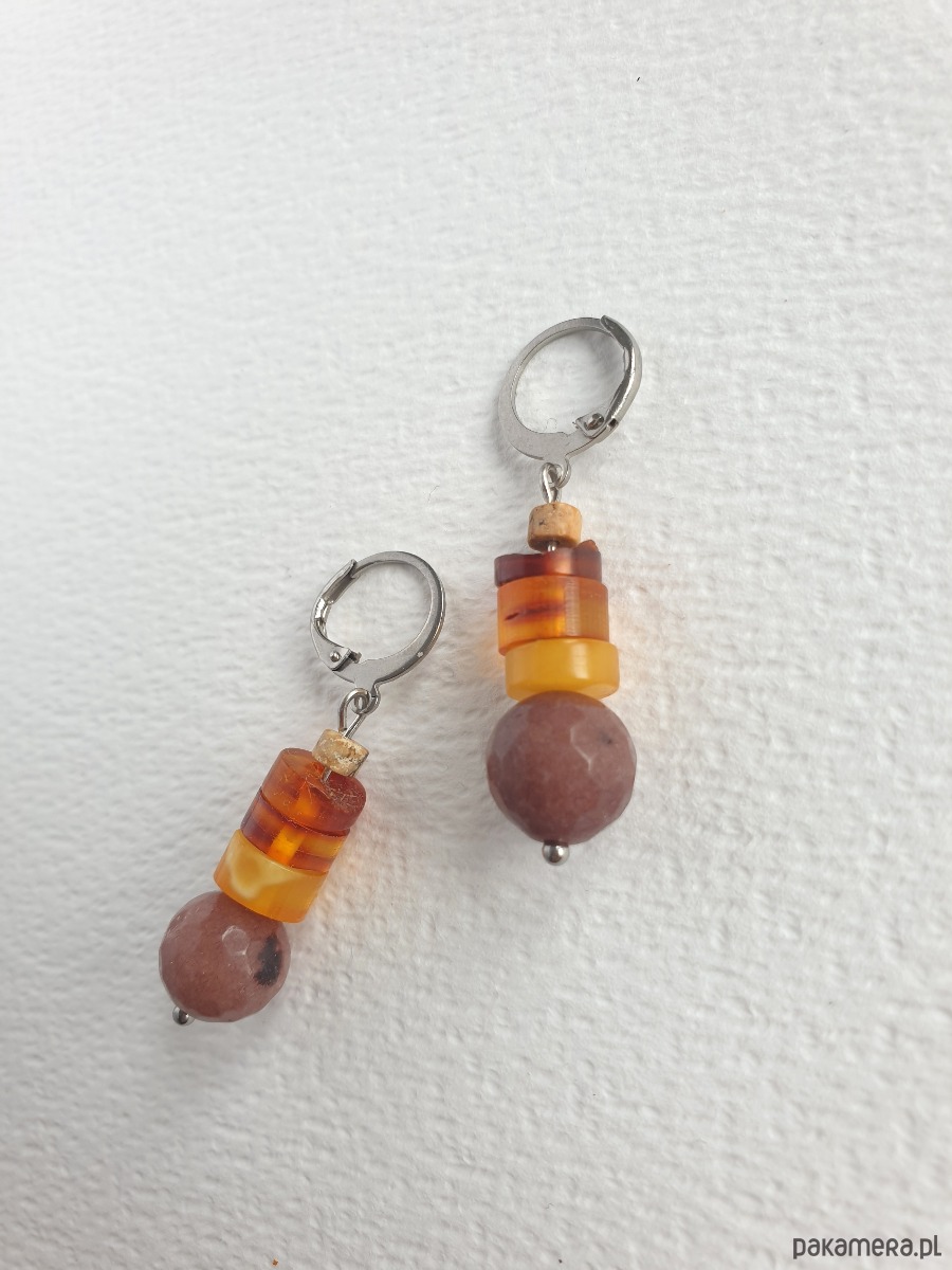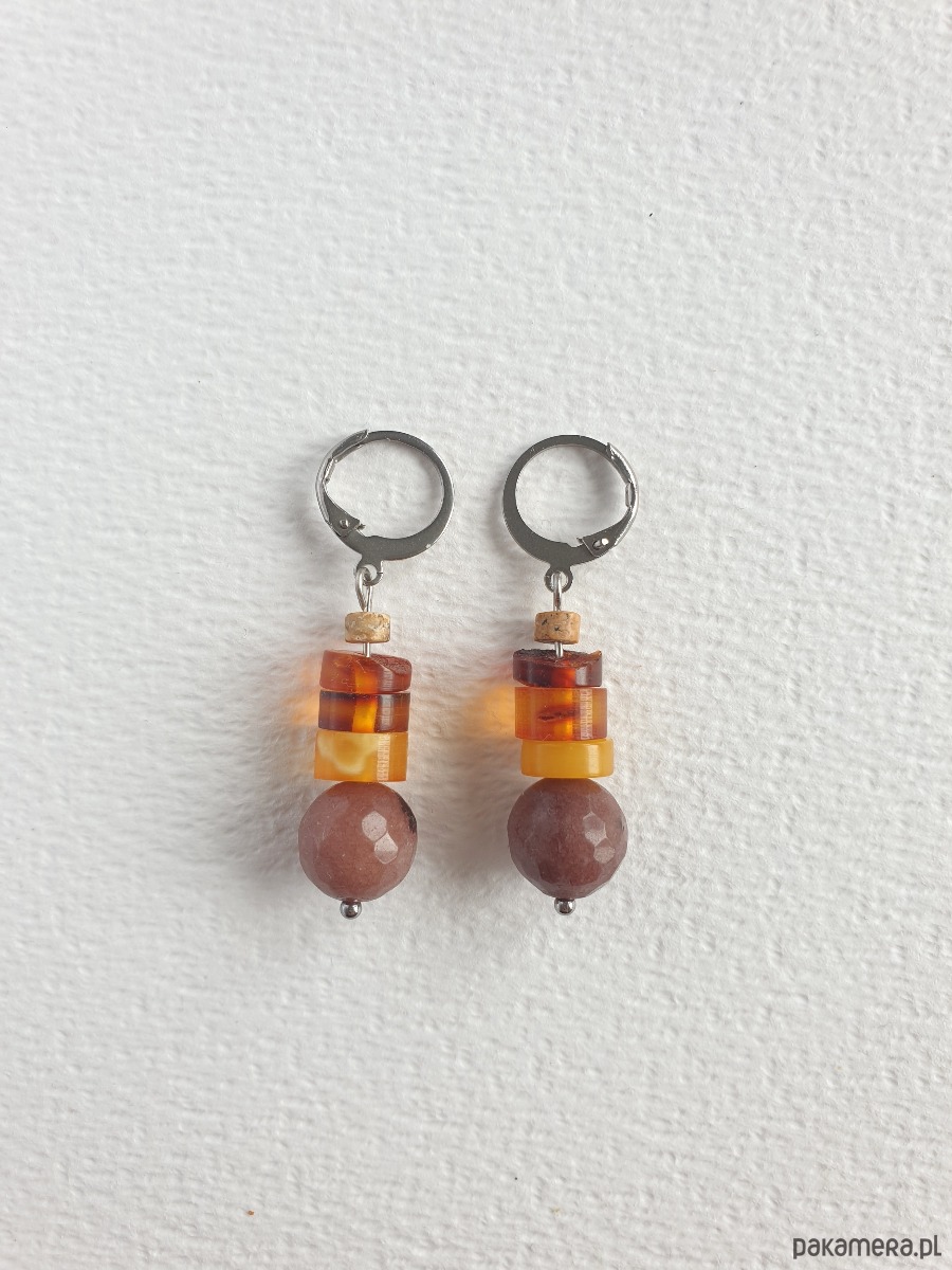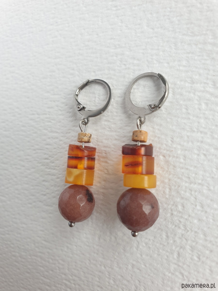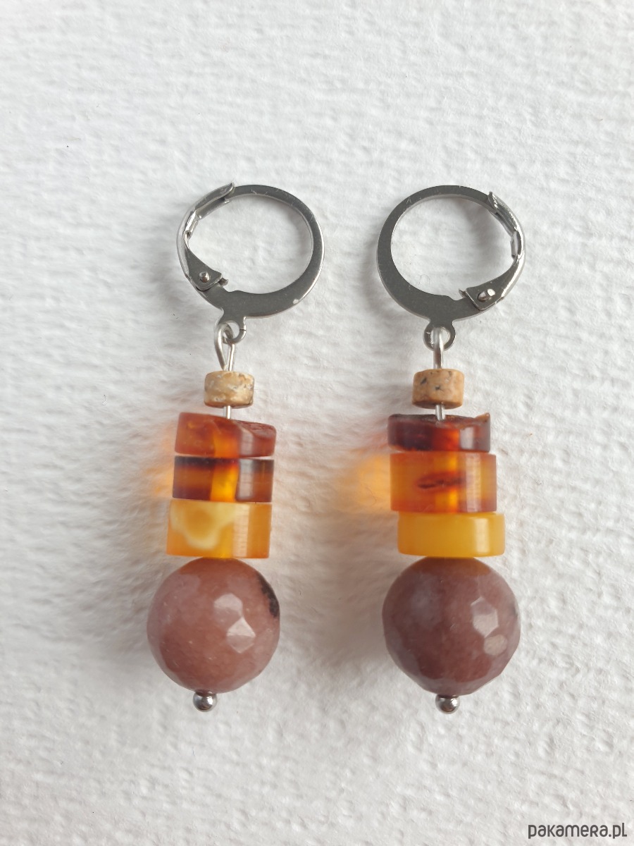 Kolczyki z bursztynem SZASZŁYKI jadeit brązowy