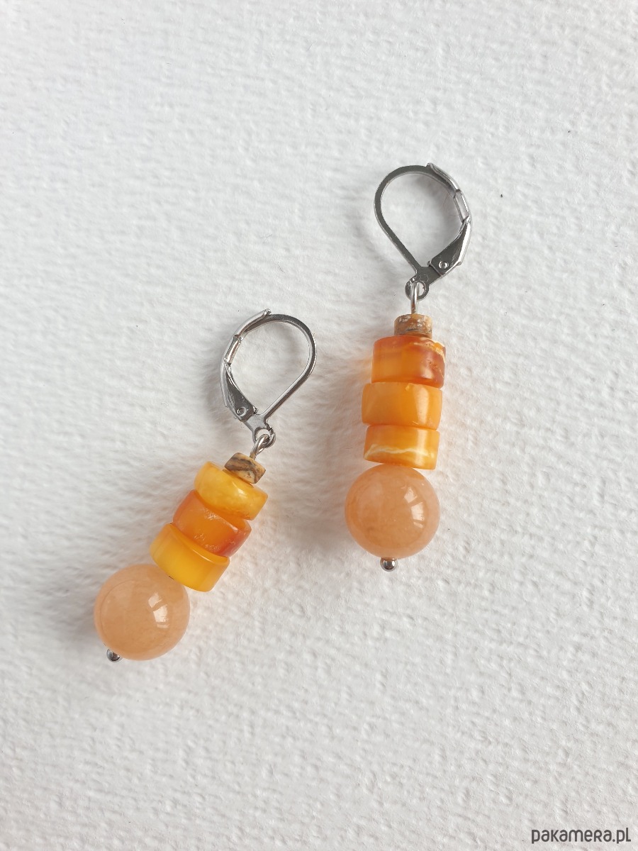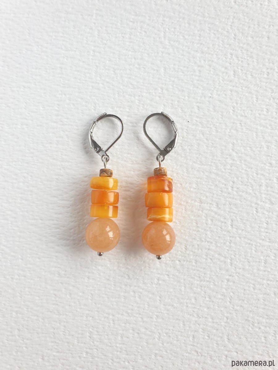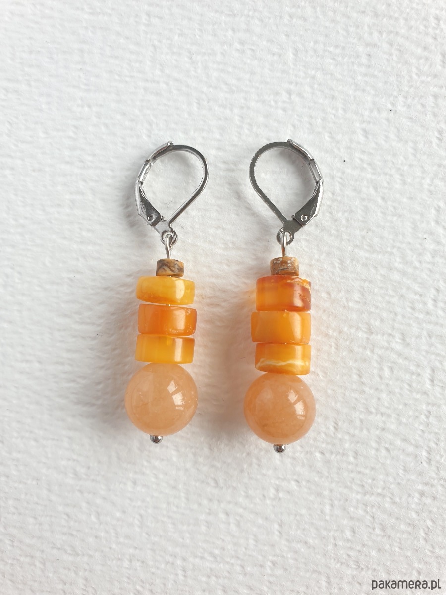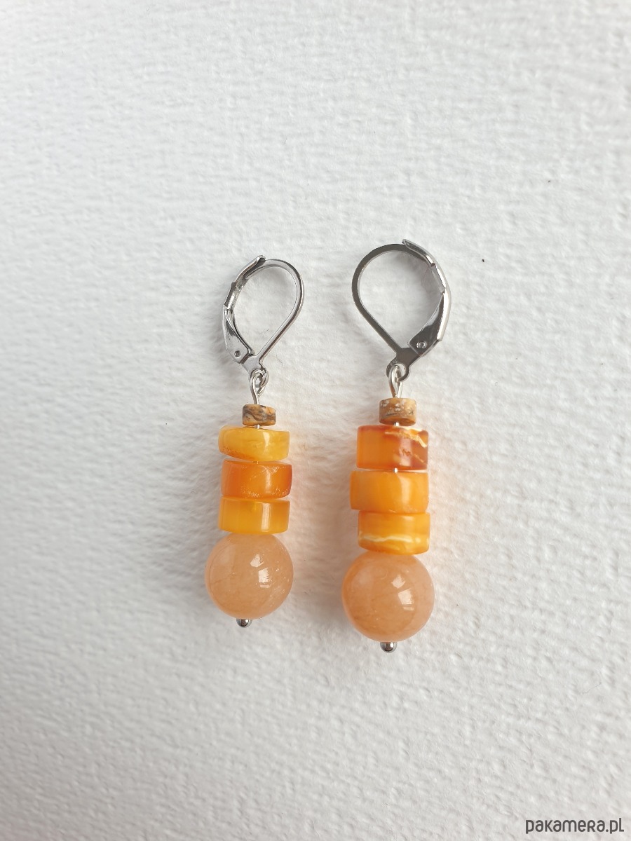Kolczyki z bursztynem SZASZŁYKI jadeit dyniowy