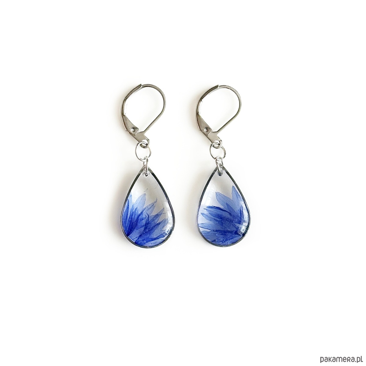 Kolczyki wiszące wykonane ze stali szlachetnej oraz żywicy epoksydowej.
