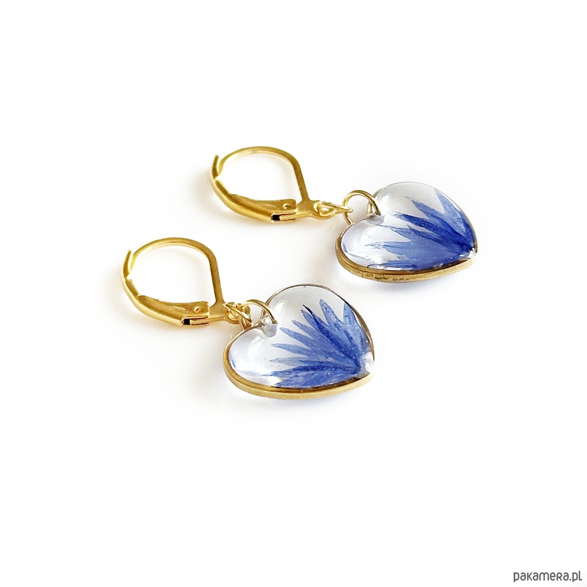 Kolczyki wiszące wykonane ze stali szlachetnej oraz żywicy epoksydowej.