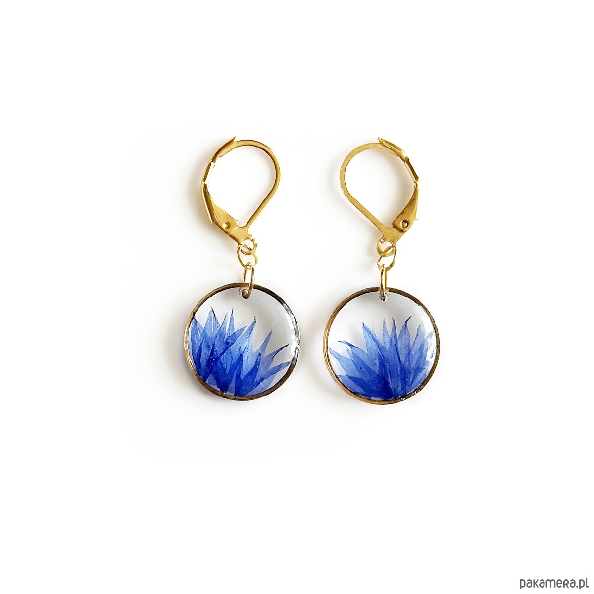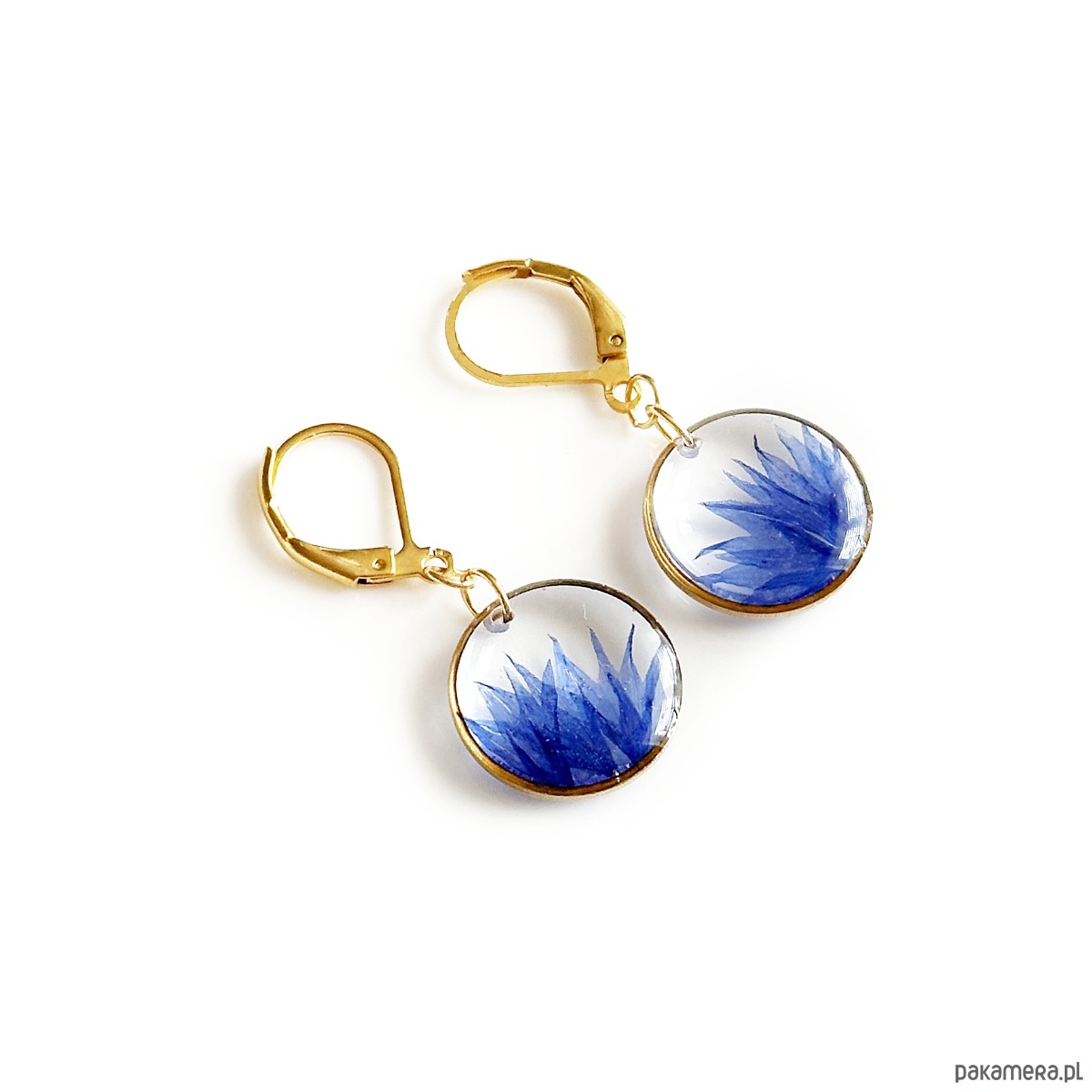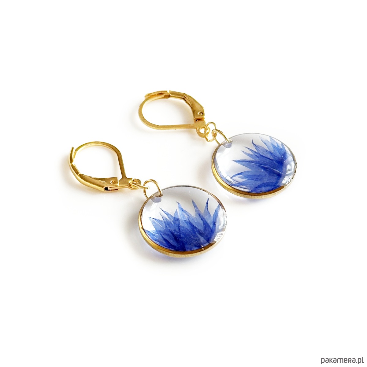 Kolczyki wiszące wykonane ze stali szlachetnej oraz żywicy epoksydowej.