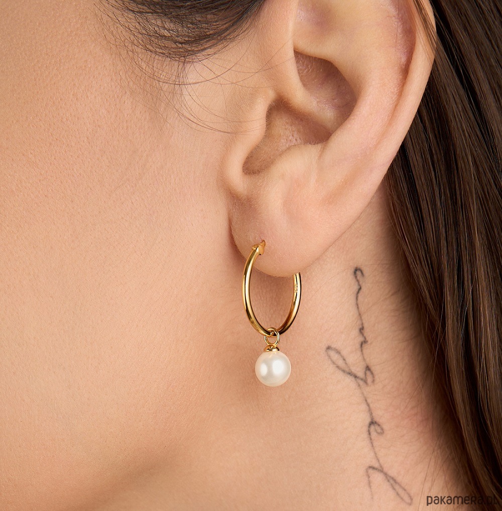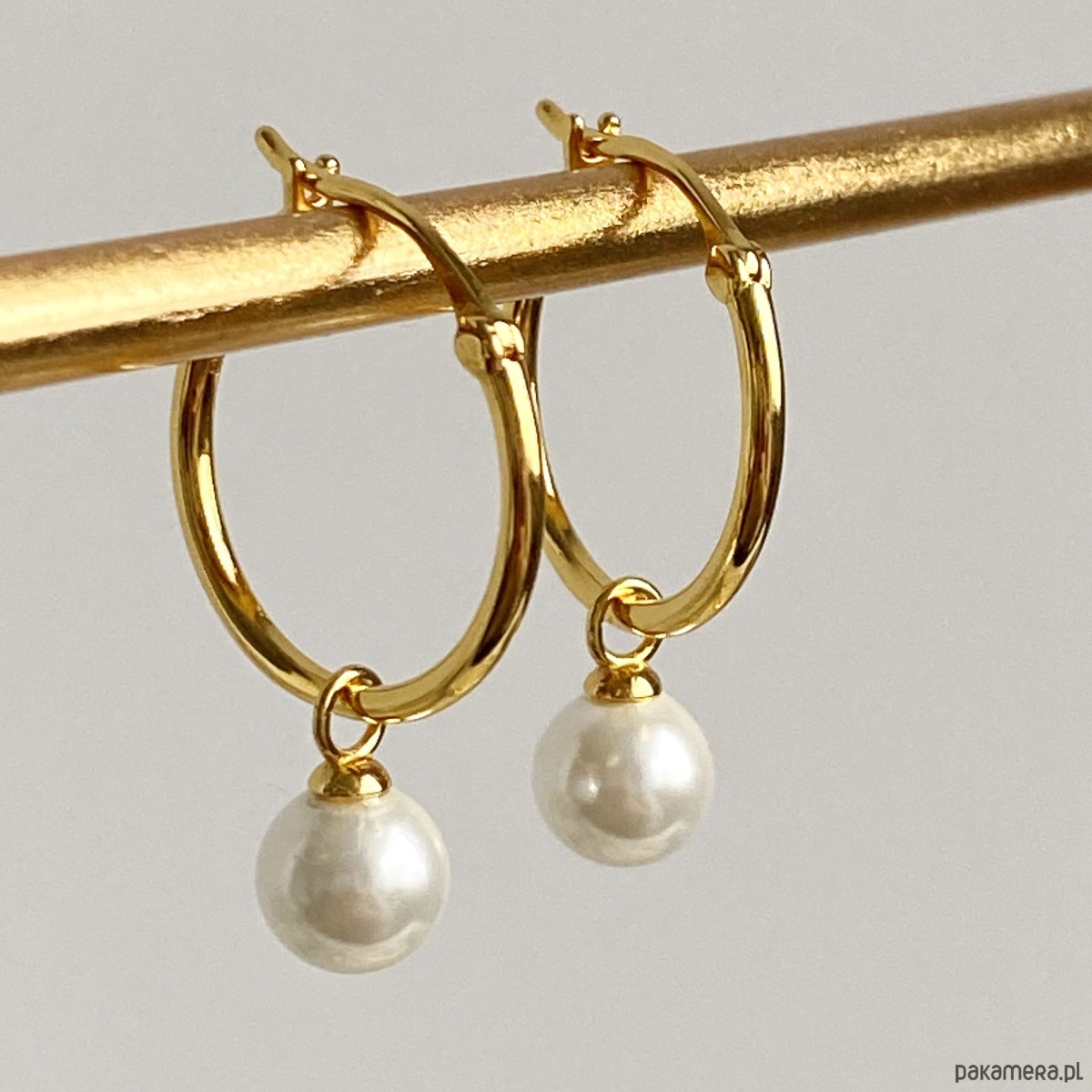 Kolczyki koła z ozdobną perłą ze srebra 925 pozłacanego:
