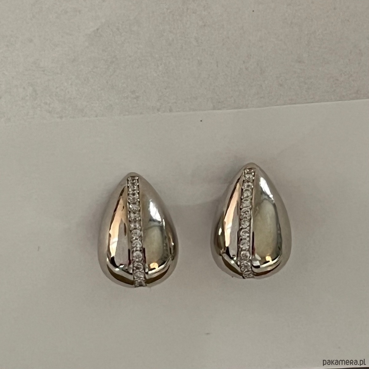 Eleganckie kolczyki w kształcie łezki wykonane ze srebra próby 925. Klasyczna, ponadczasowa forma została ozdobiona delikatnym pasem cyrkonii biegnącym przez środek – to właśnie on nadaje biżuterii wyjątkowego blasku i szlachetnego charakteru.