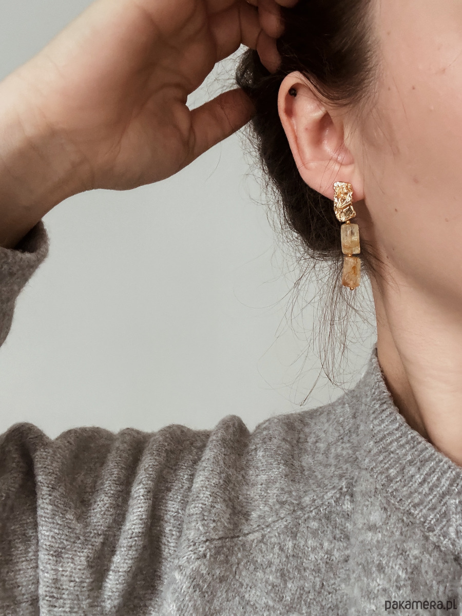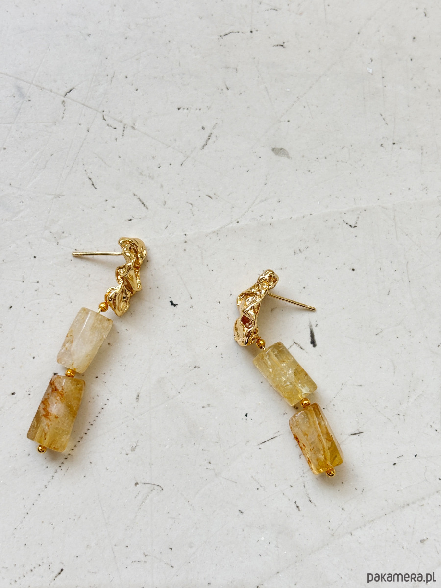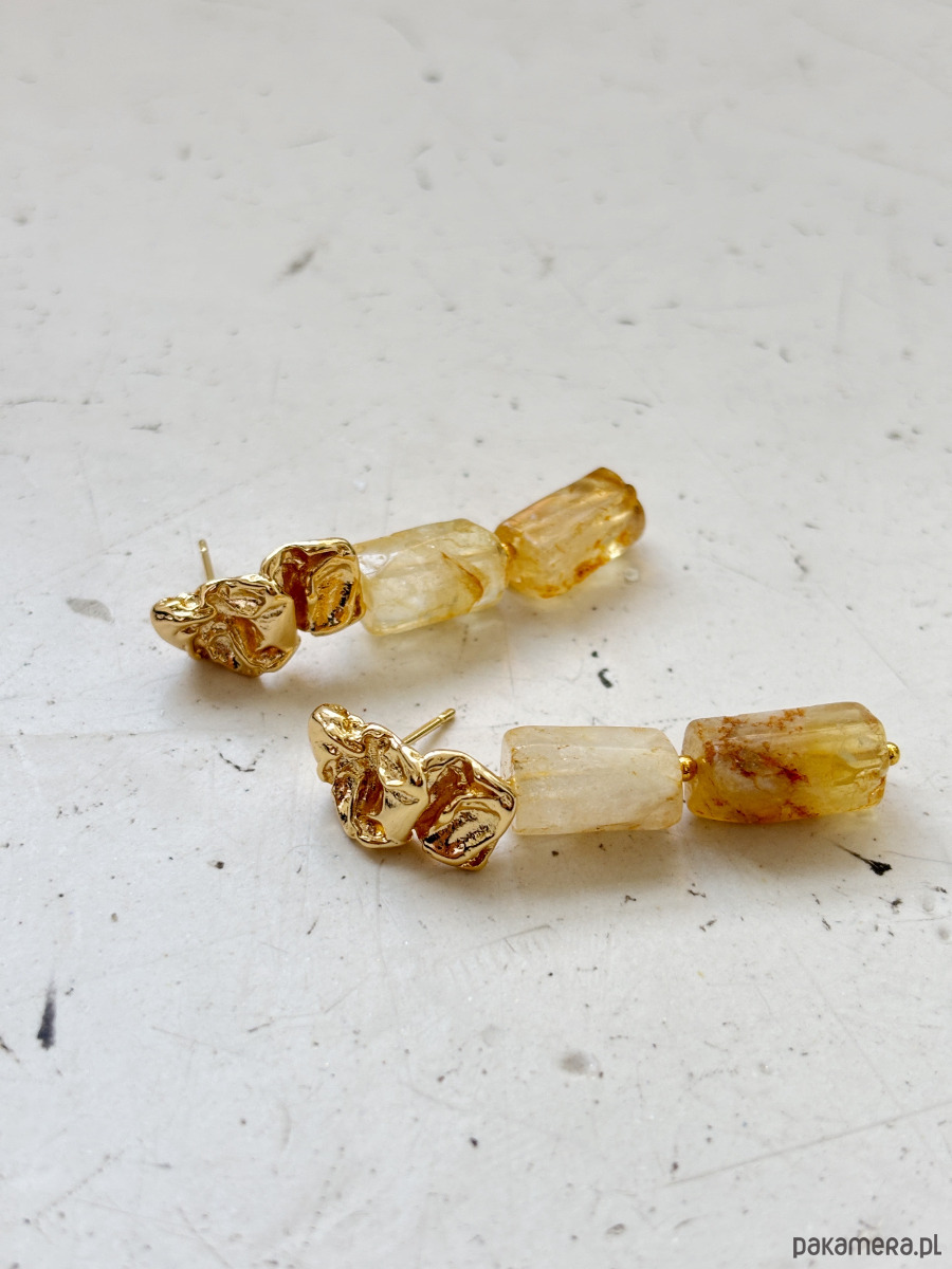 Kolczyki są wykonane ze sztyftu z mosiądzu pozłacanego i cytrynu.