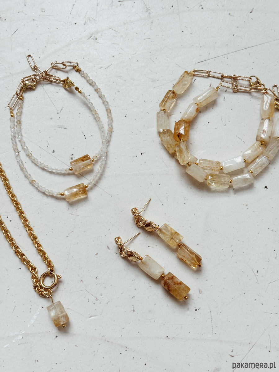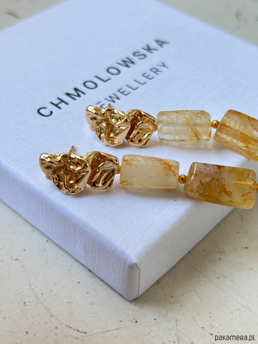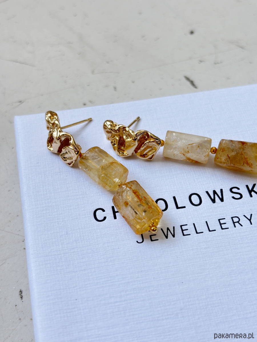 Kolczyki są wykonane ze sztyftu z mosiądzu pozłacanego i cytrynu.
