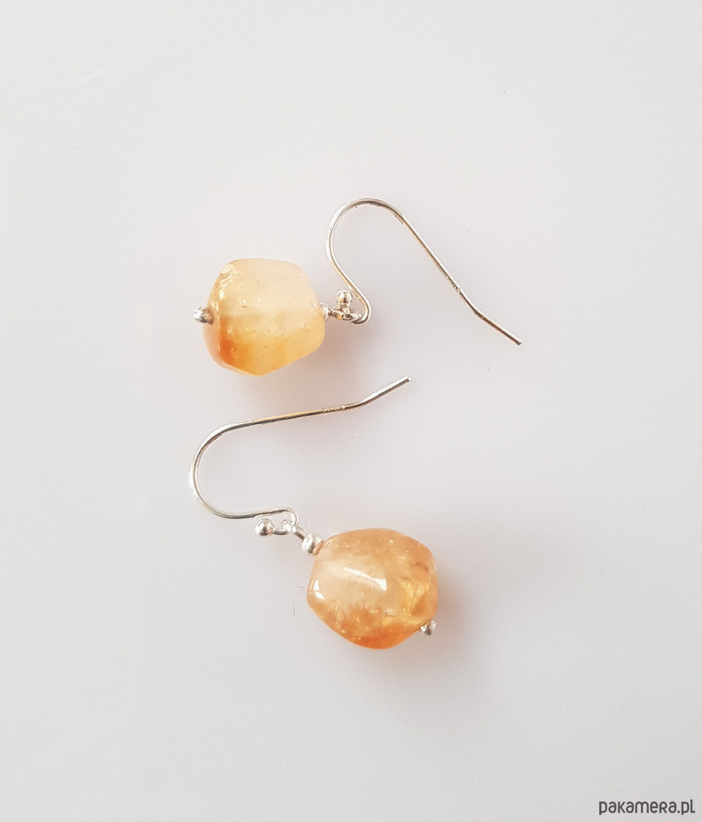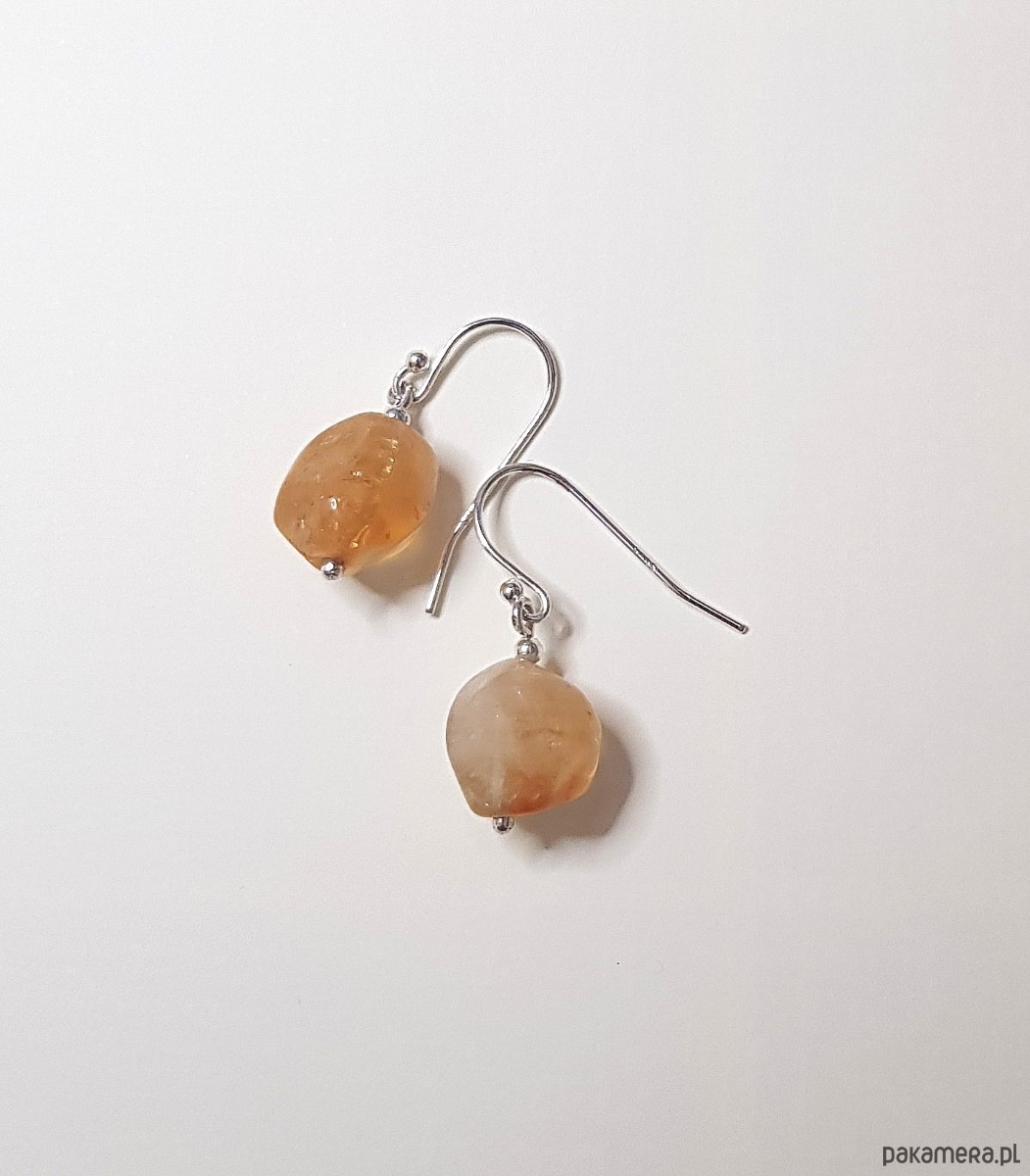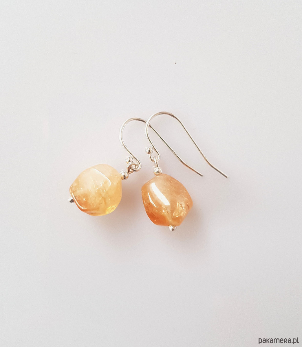 Wykonane z niezwykłych bryłek cytrynu i bigli ze srebra próby 925.