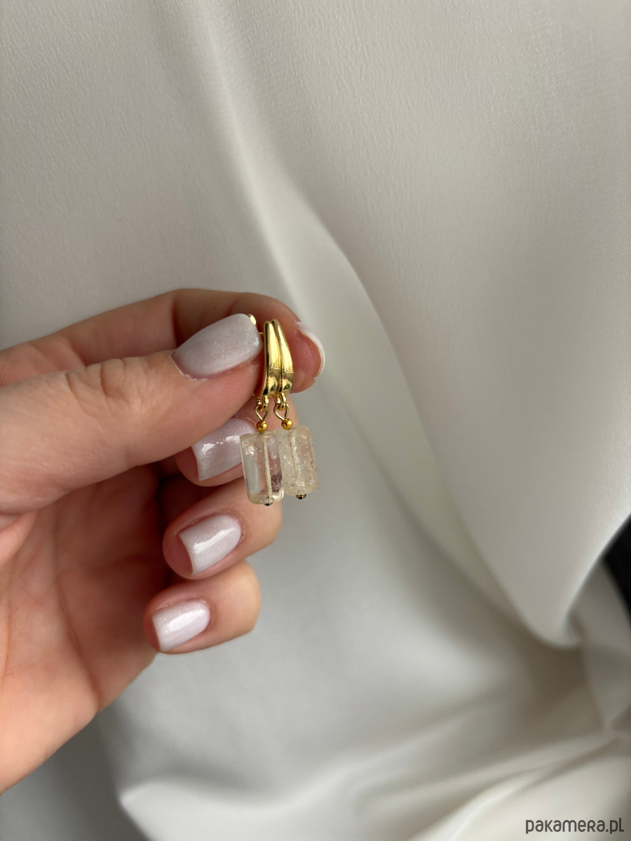 Kolczyki są wykonane ze sztyftu z mosiądzu pozłacanego i naturalnych brył cytrynu.