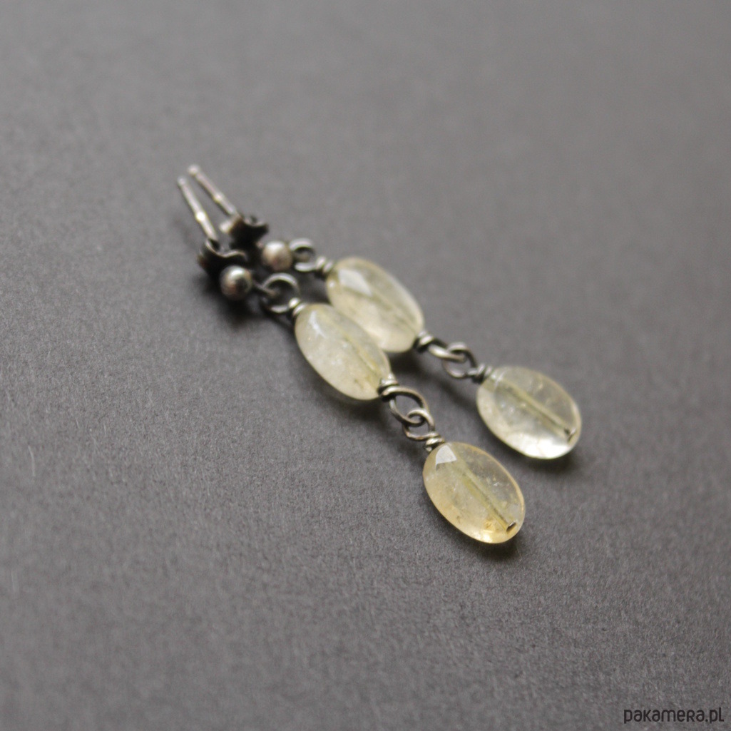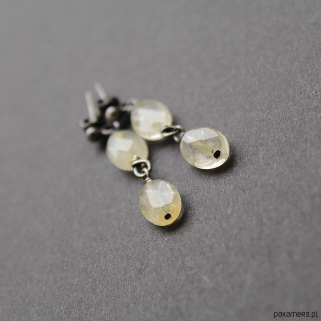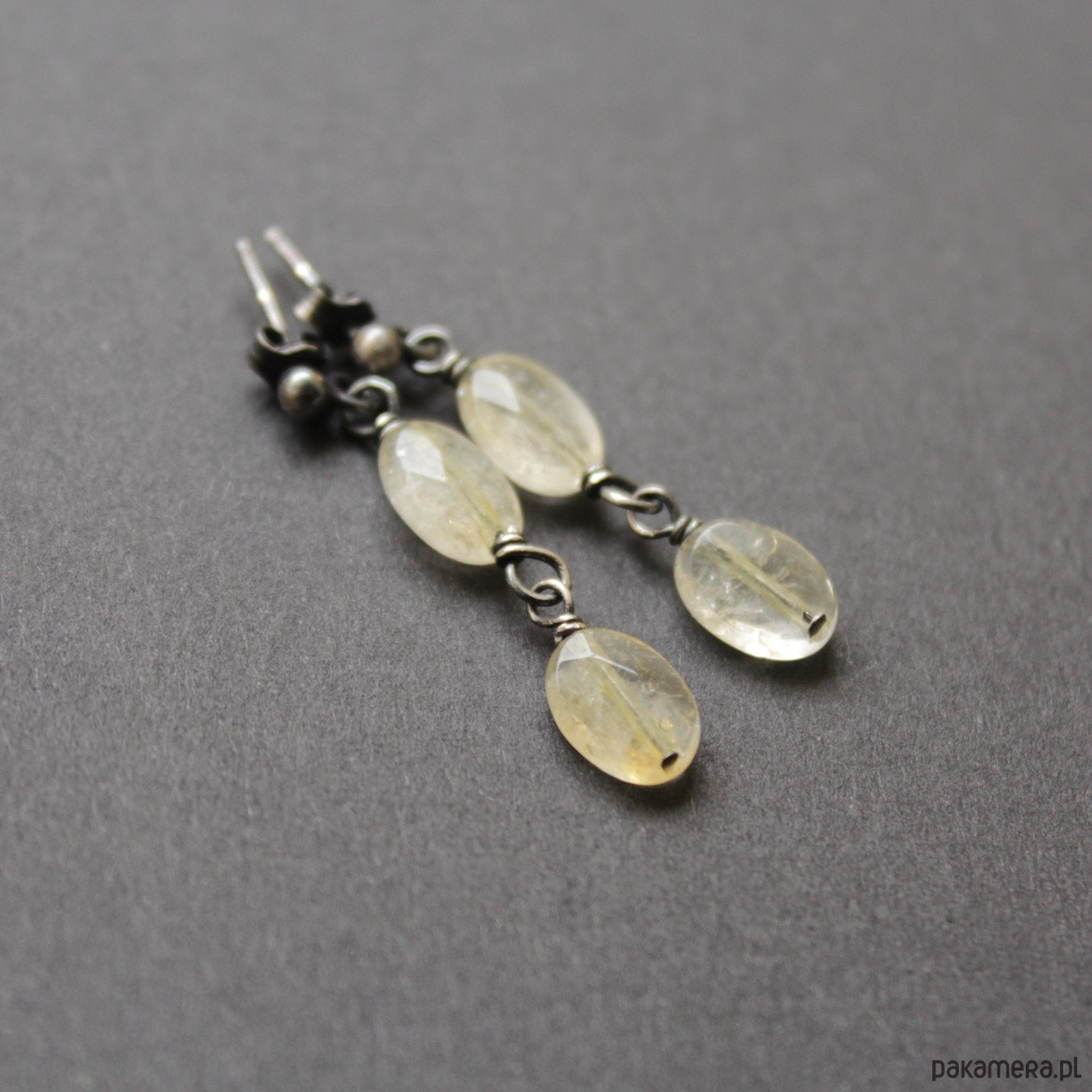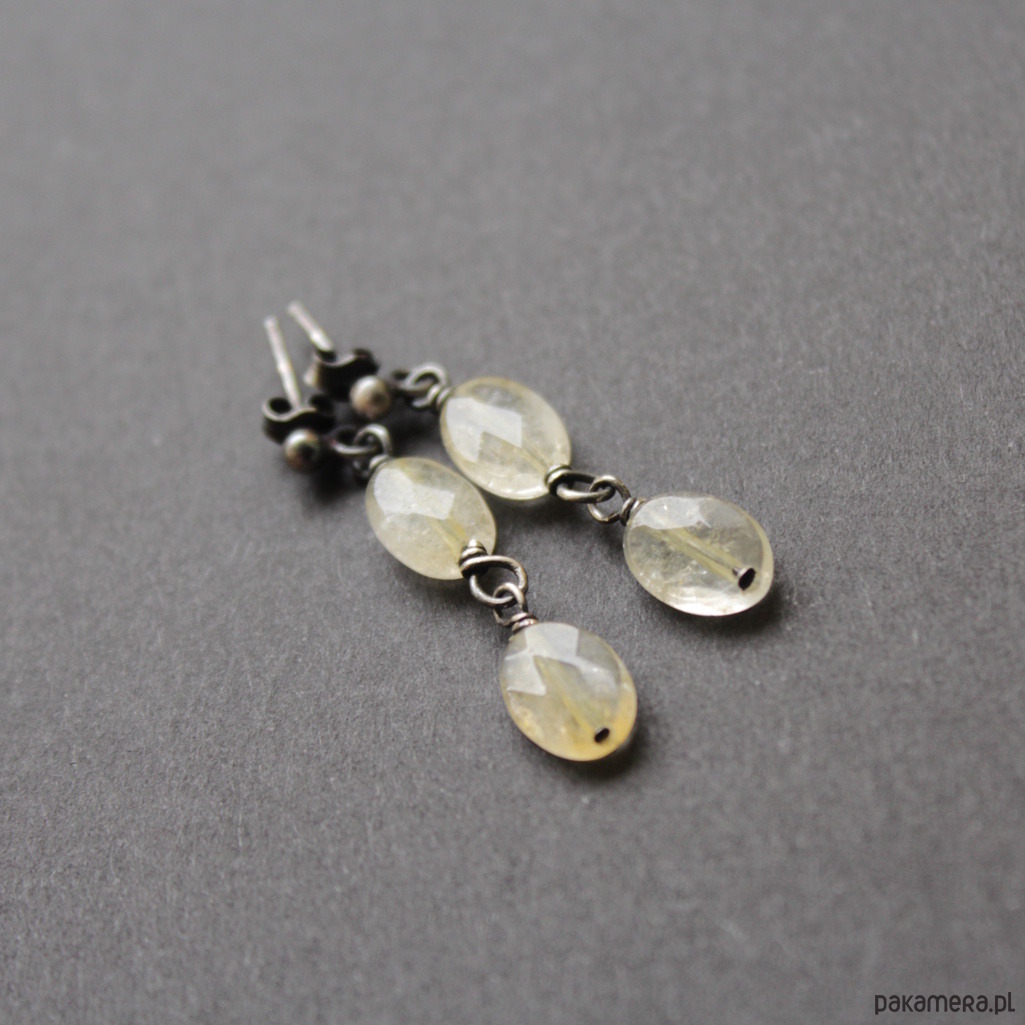 Oryginalne kolczyki wykonane zostały zoksydowanego srebra próby 925 oraz fasetowanych cytrynów wielkości 0,8 cm.
