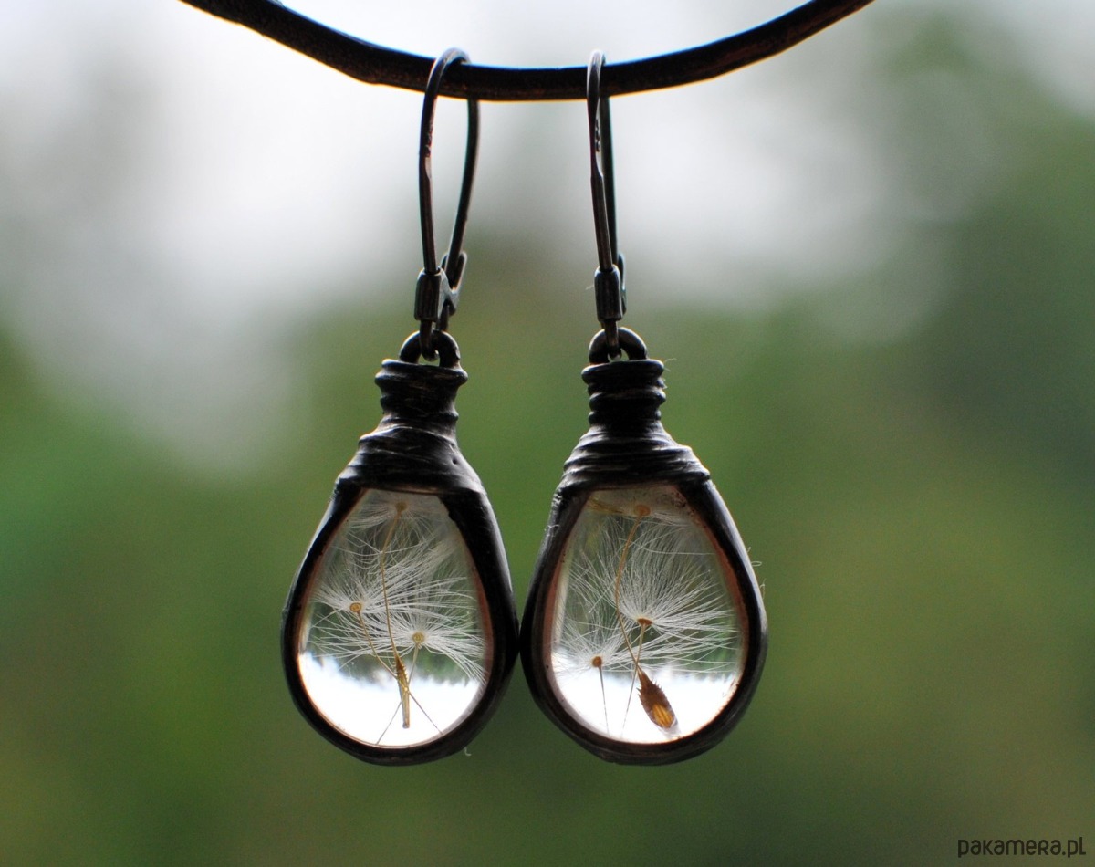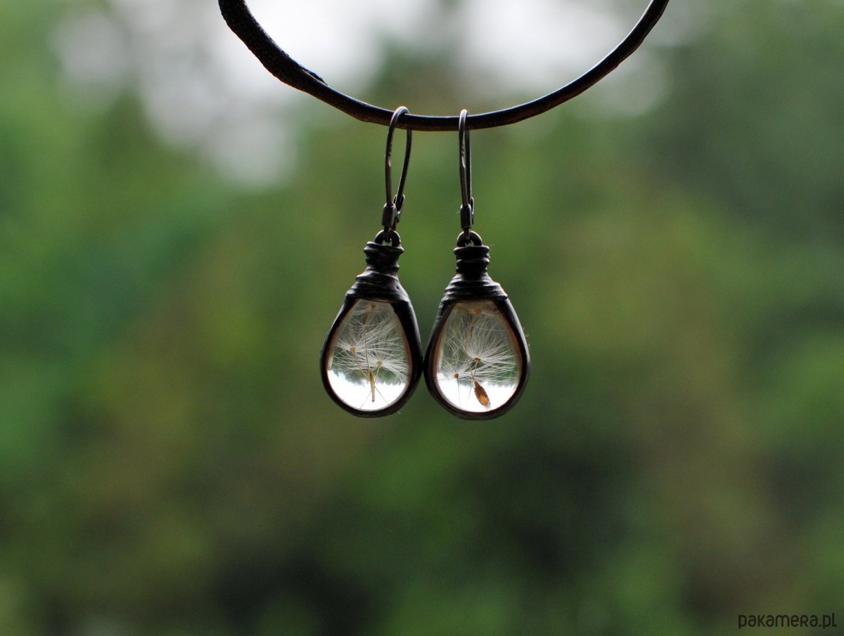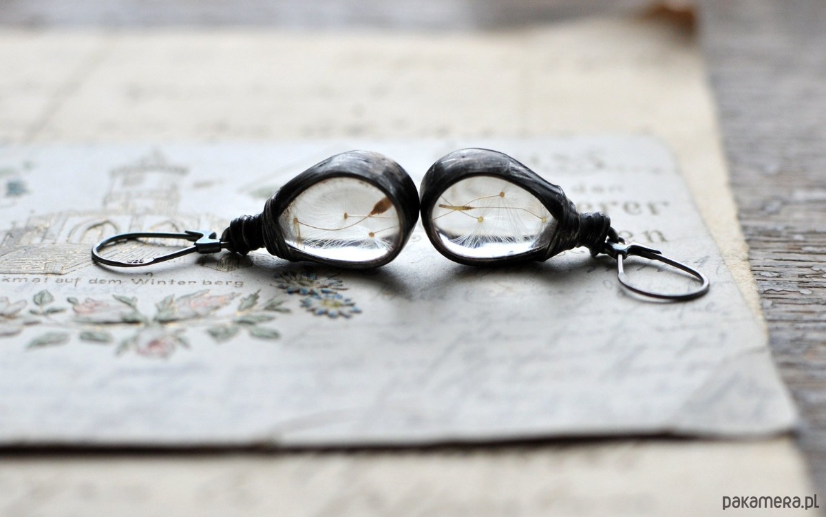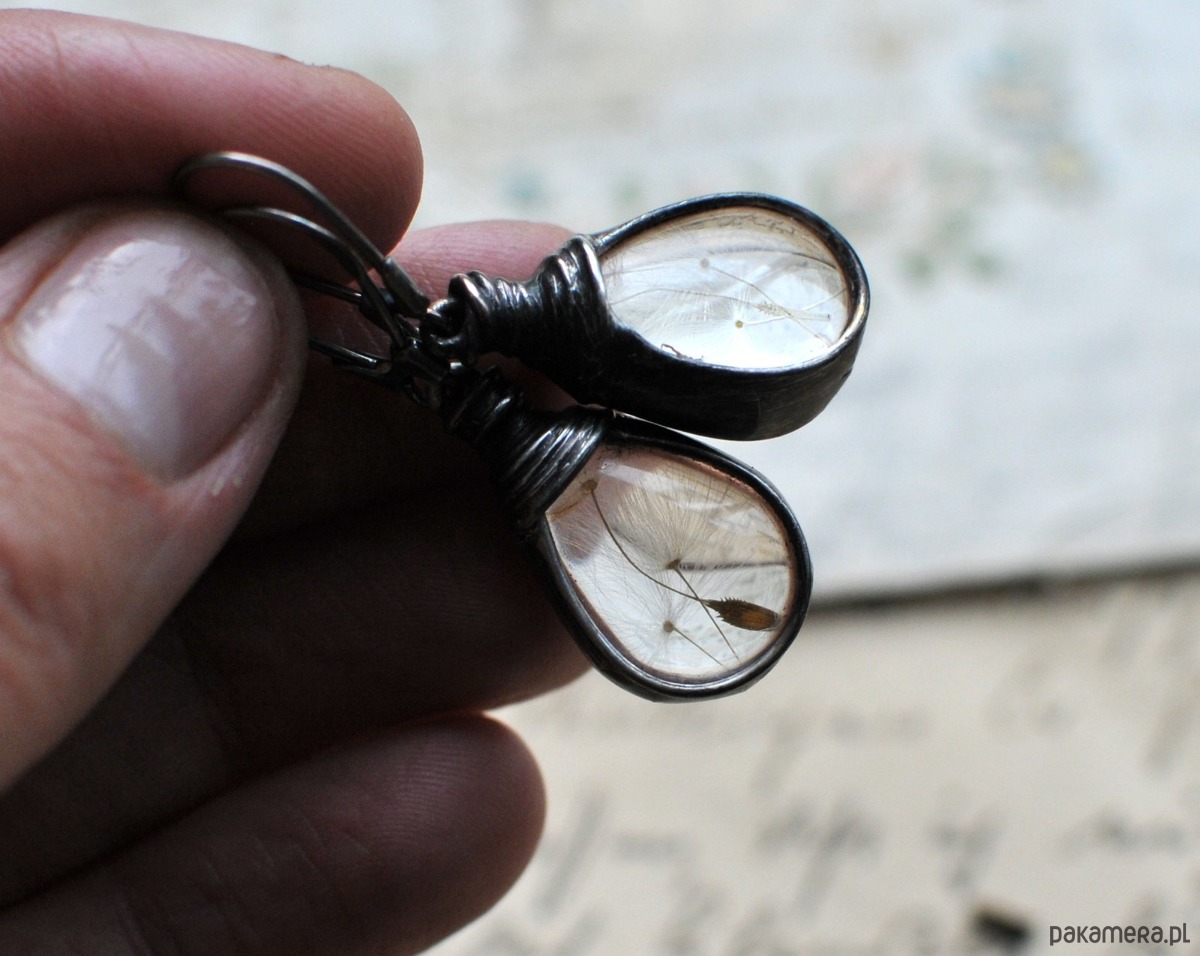 Delikatne kolczyki - nasiona dmuchawca zamknięte w szkle.