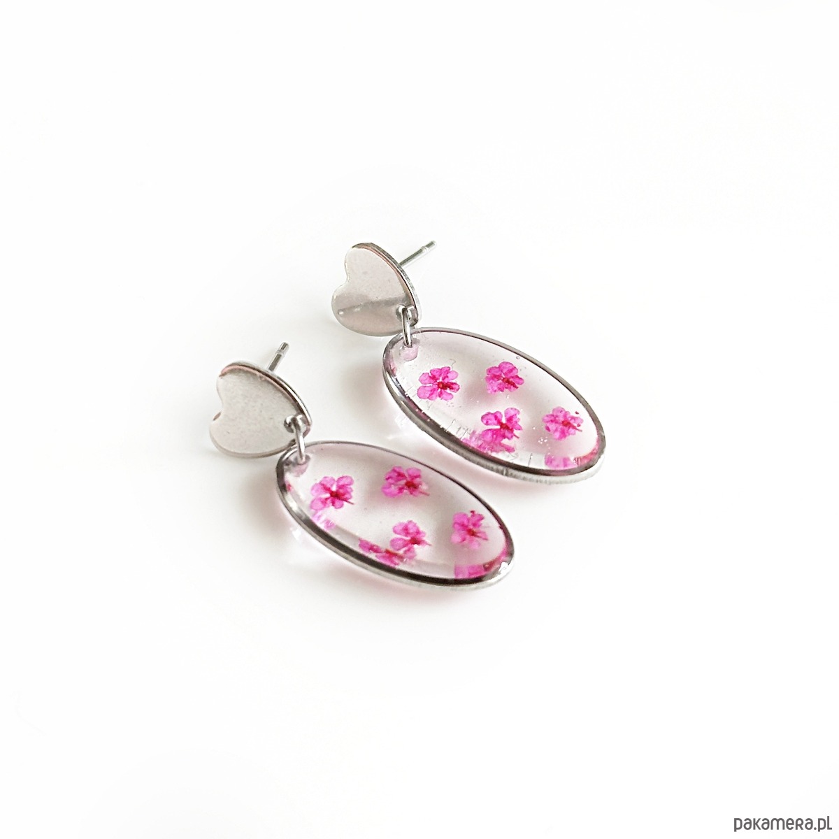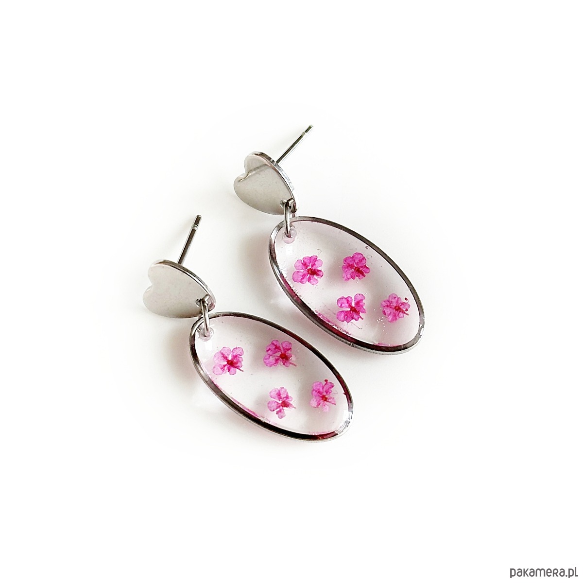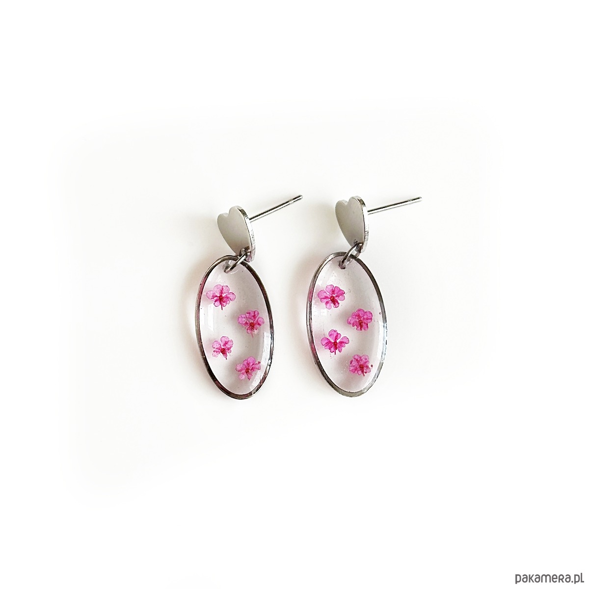 Kolczyki wiszące wykonane ze stali szlachetnej oraz żywicy epoksydowej.