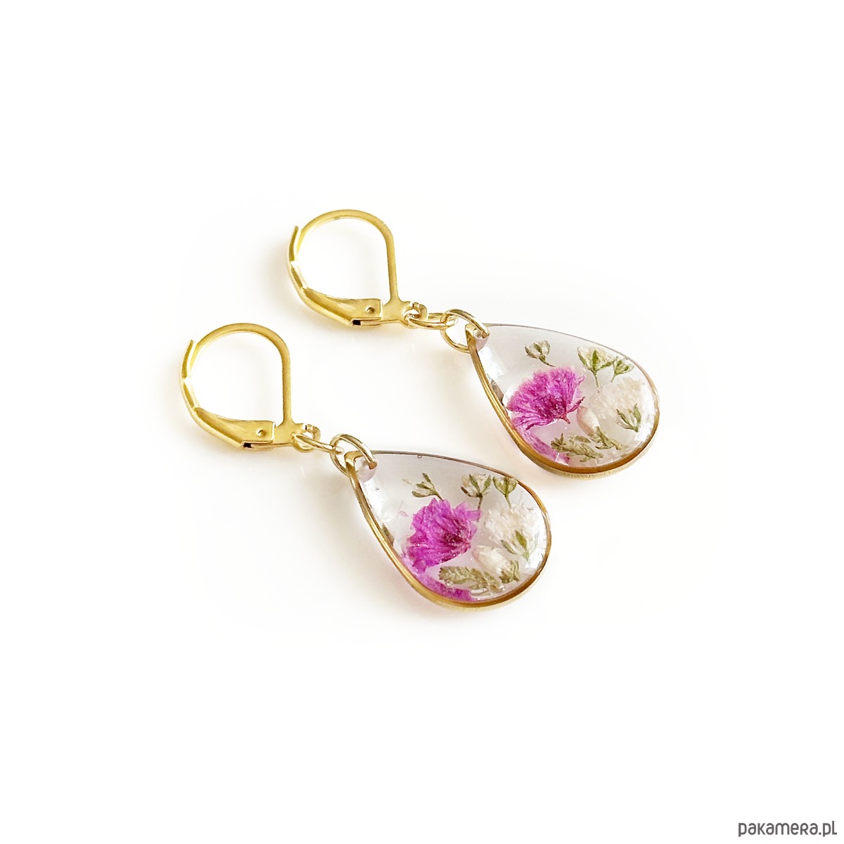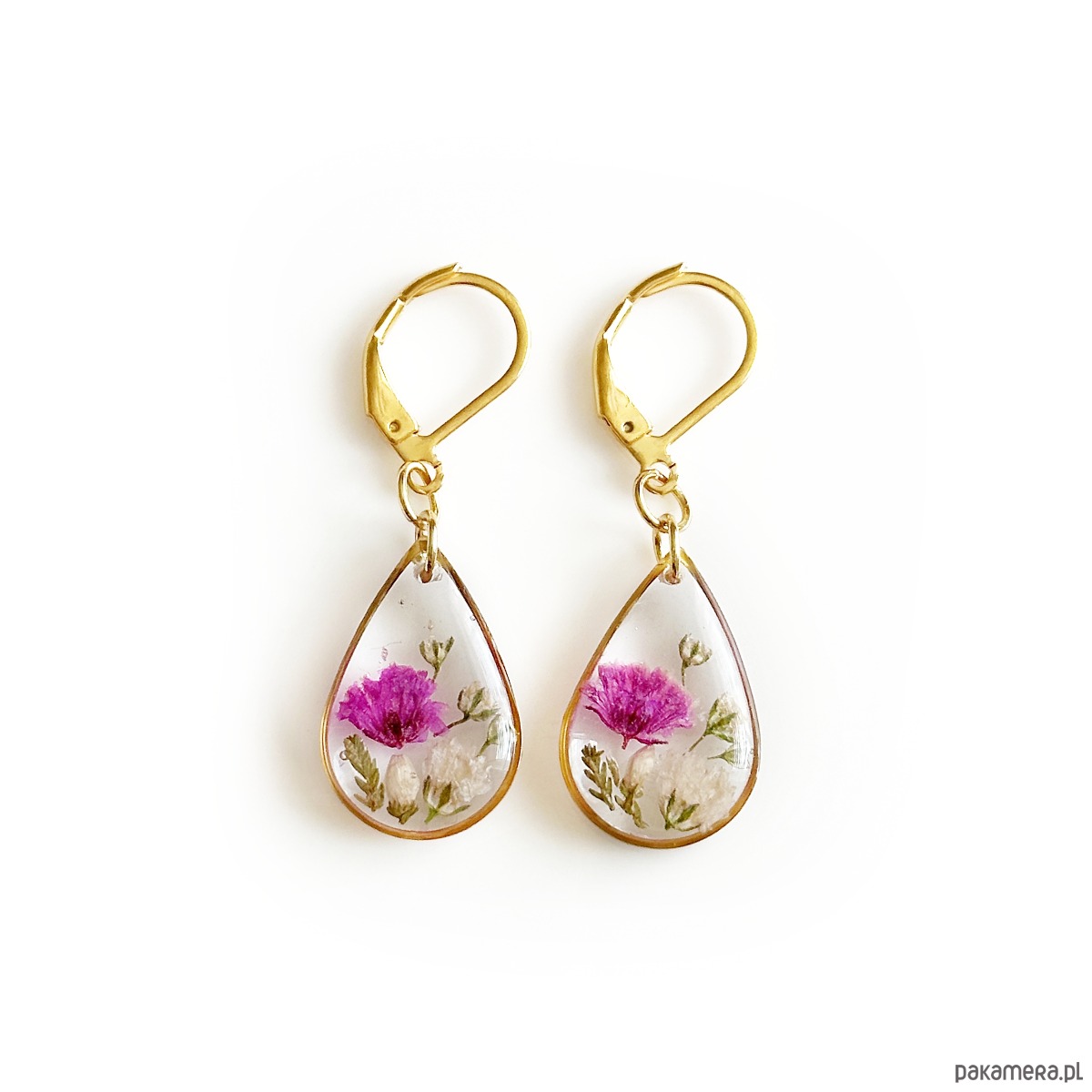 Kolczyki wiszące wykonane ze stali szlachetnej oraz żywicy epoksydowej.