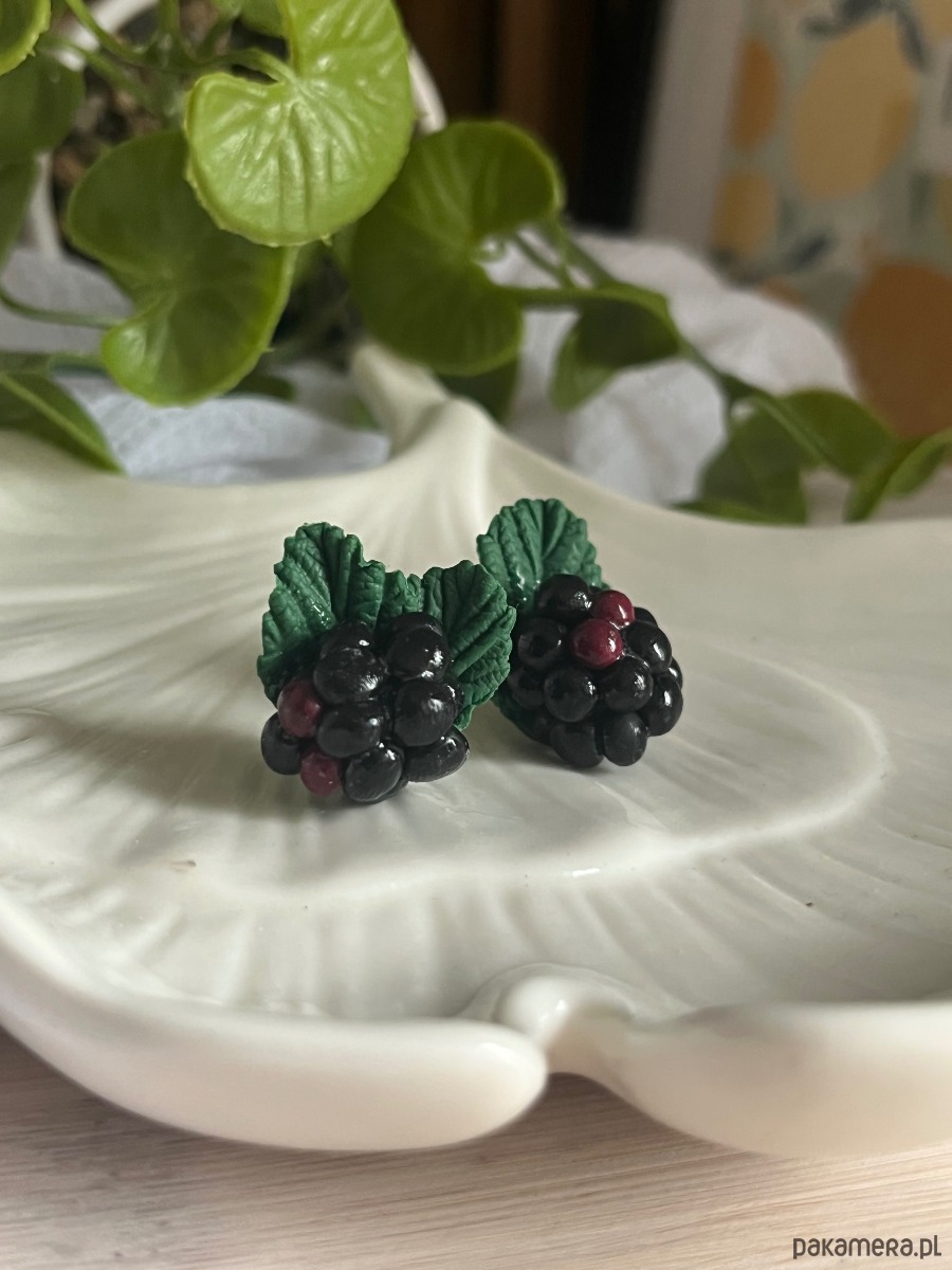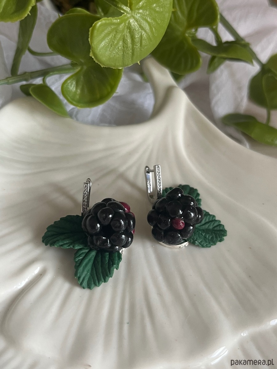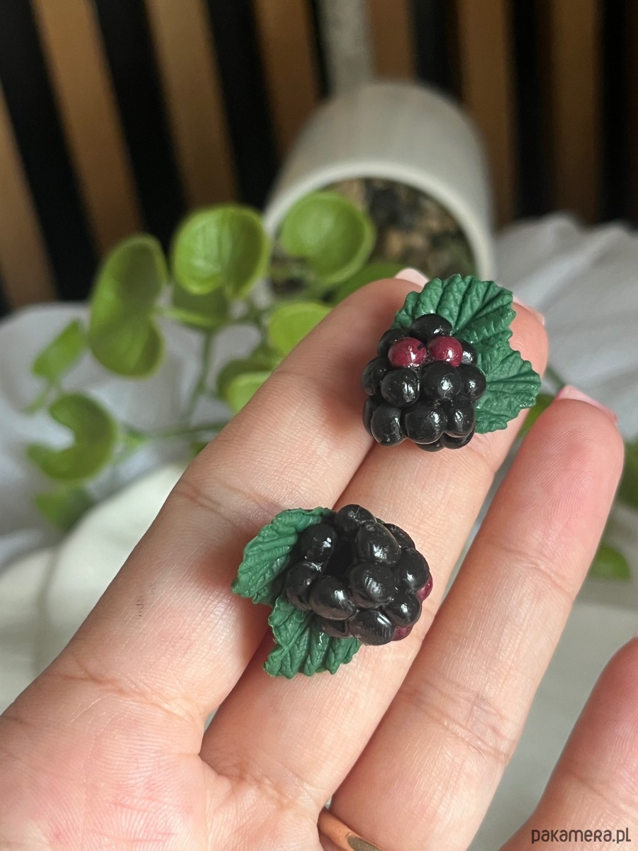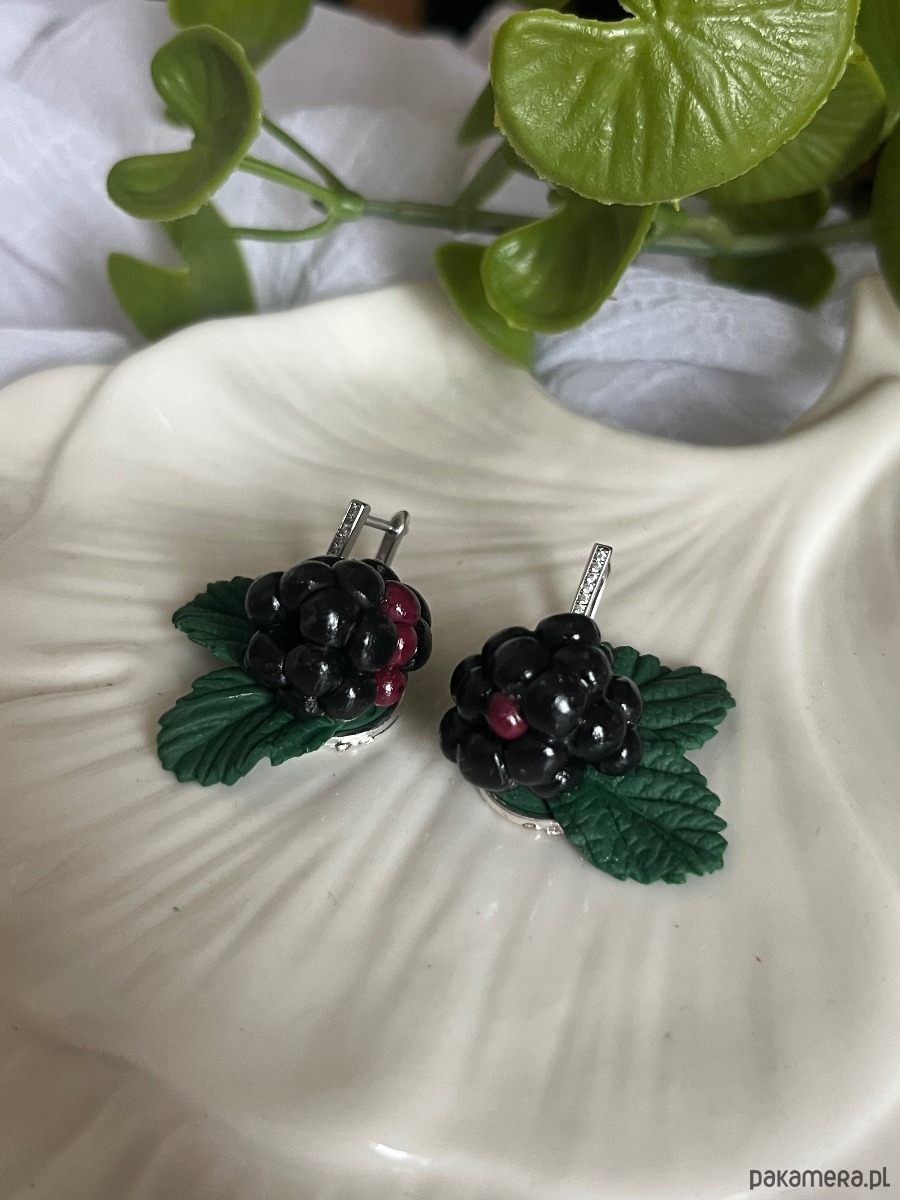 Kolczyki z jagodami jeżyna. Handmade Polska. Polimerowa glina