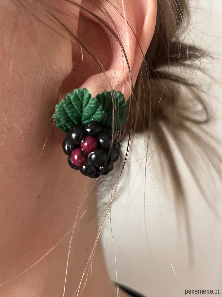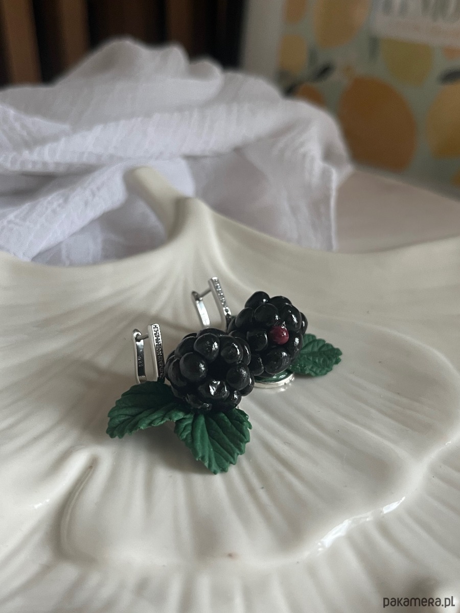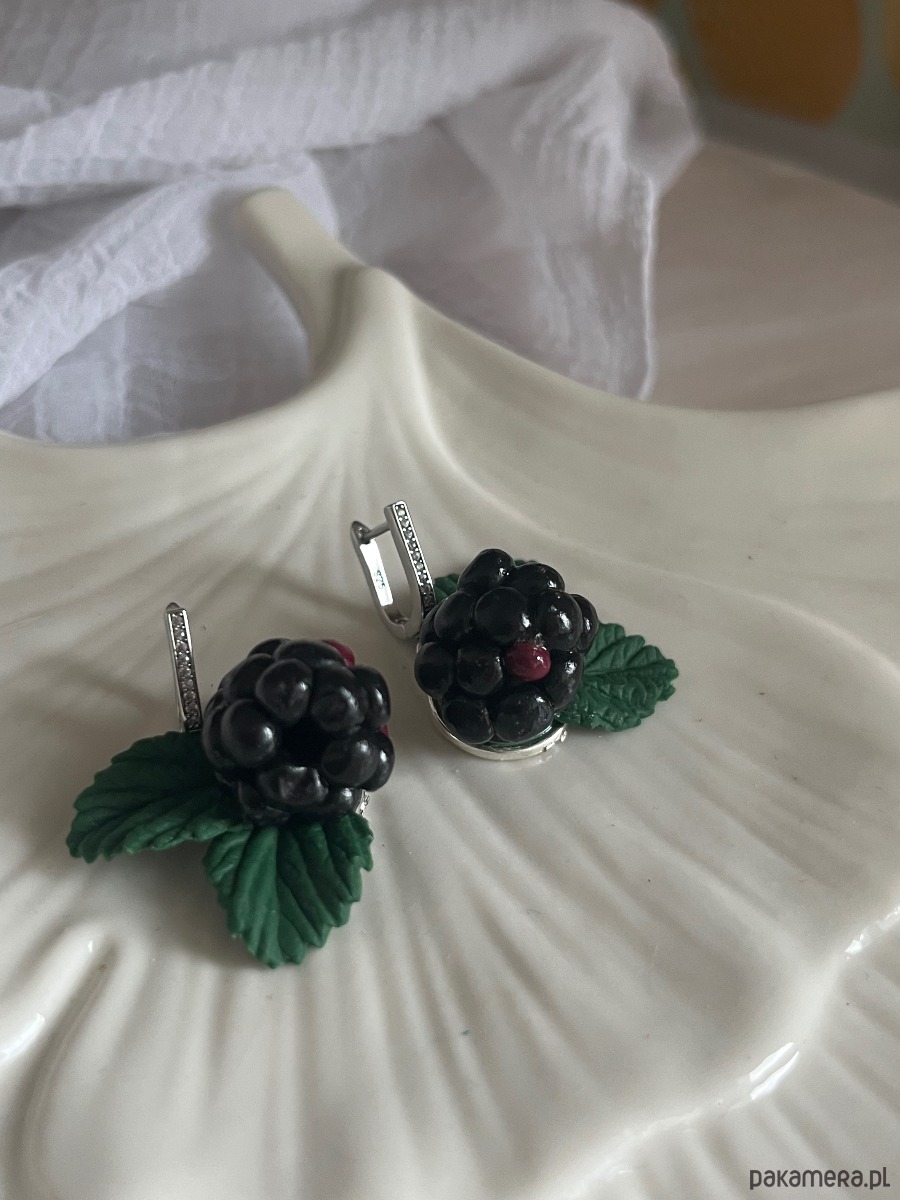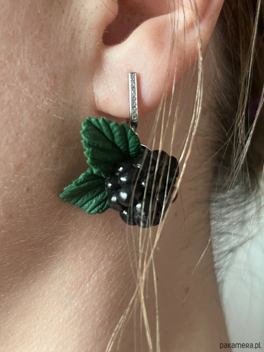Kolczyki z jagodami jeżyna. Handmade Polska. Polimerowa glina