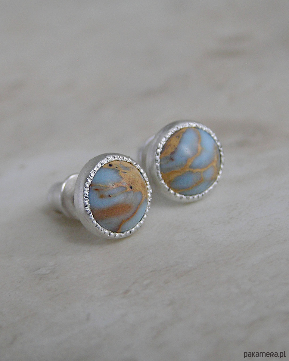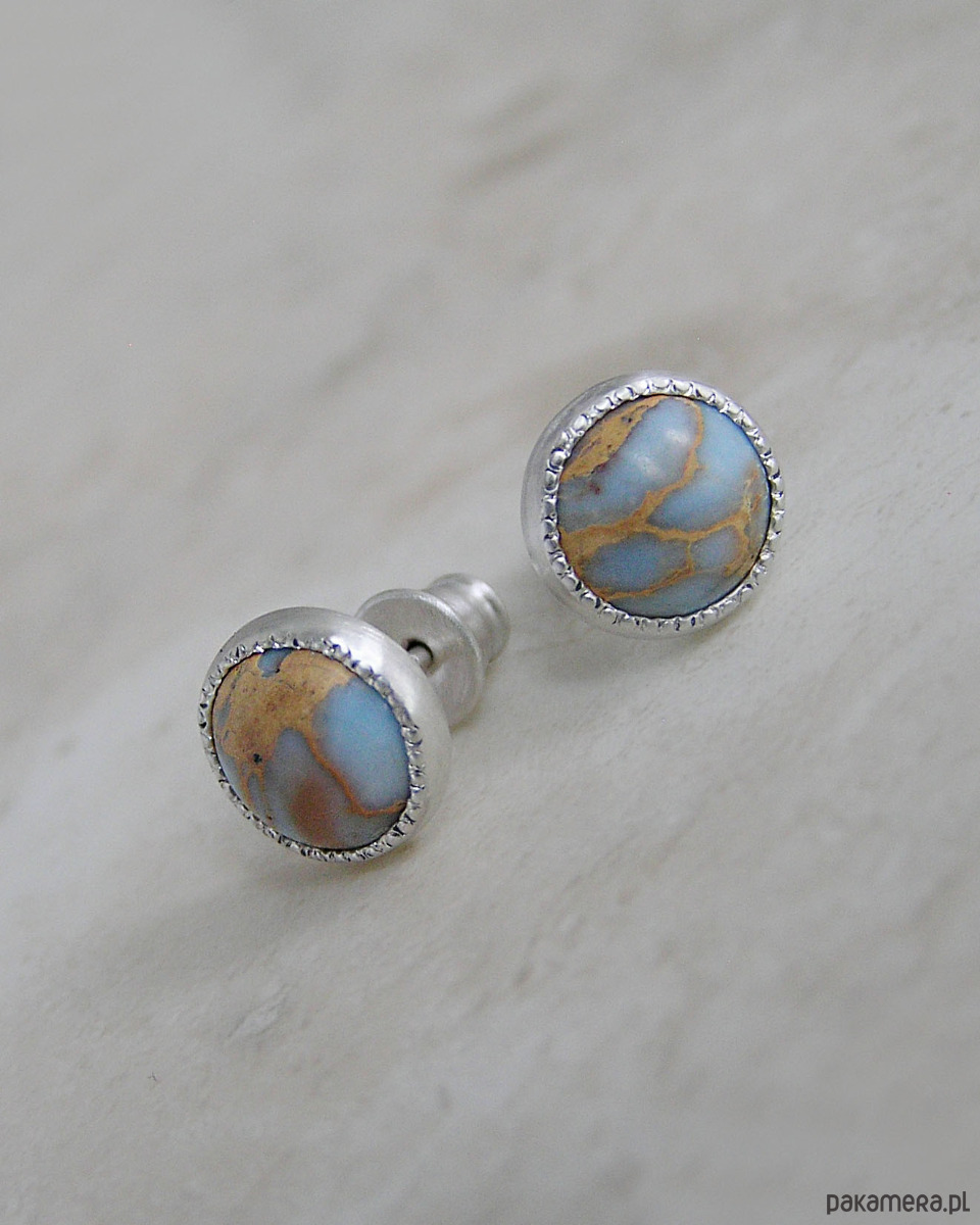 Unikatowe kolczyki wykonane ze srebra 925 z jaspisem oceanicznym w kolorach błękitu i beżu.
