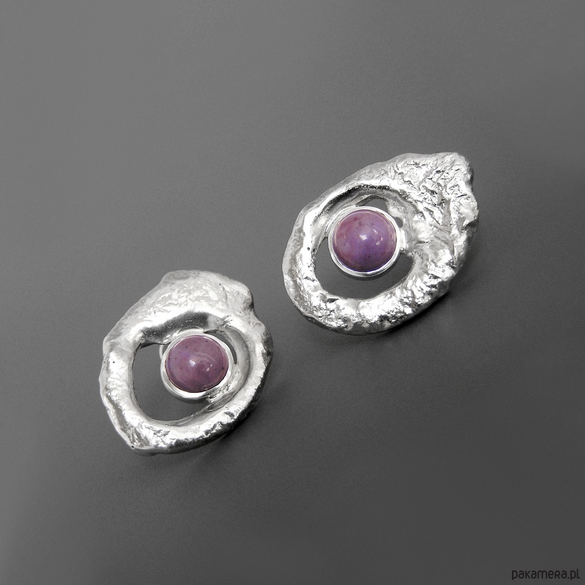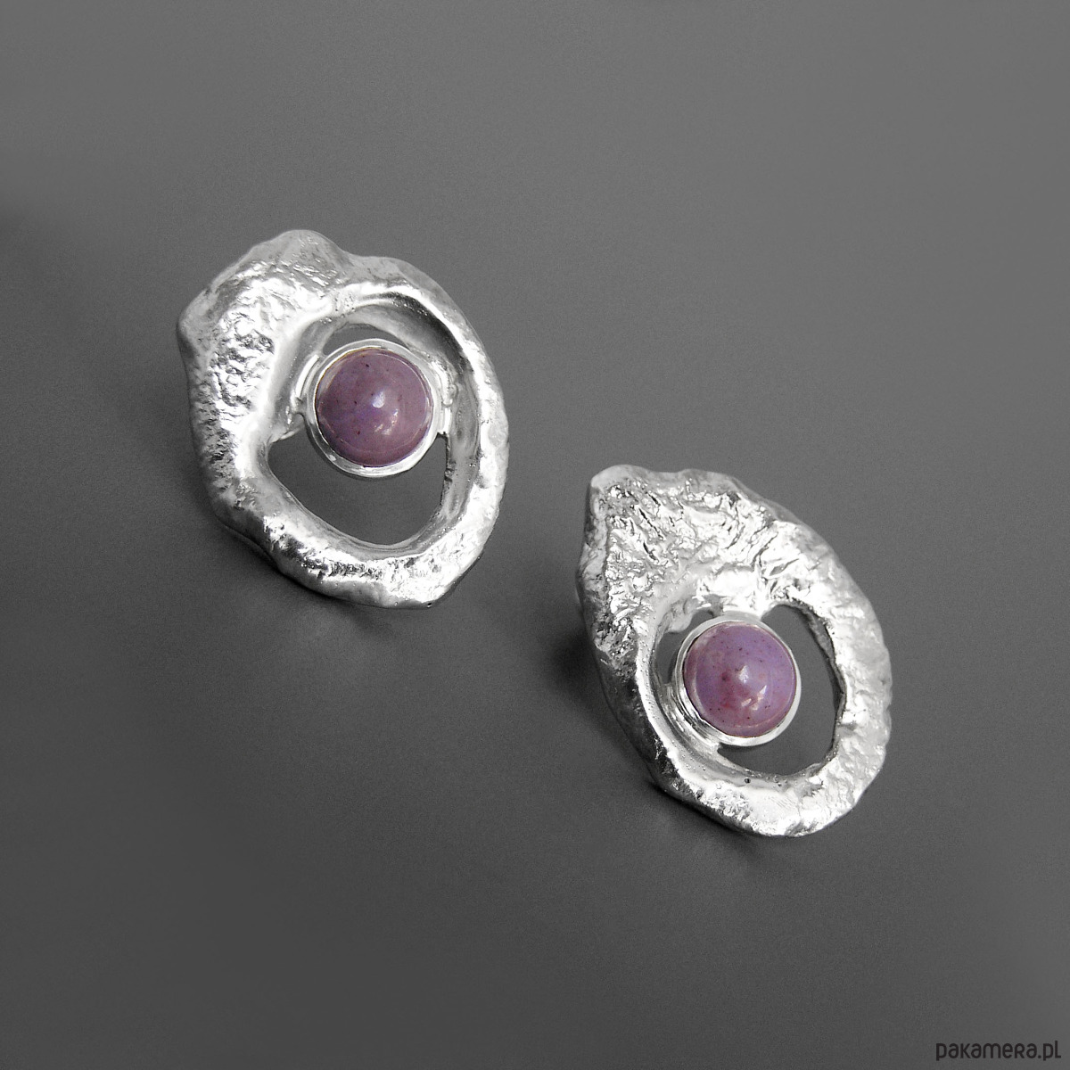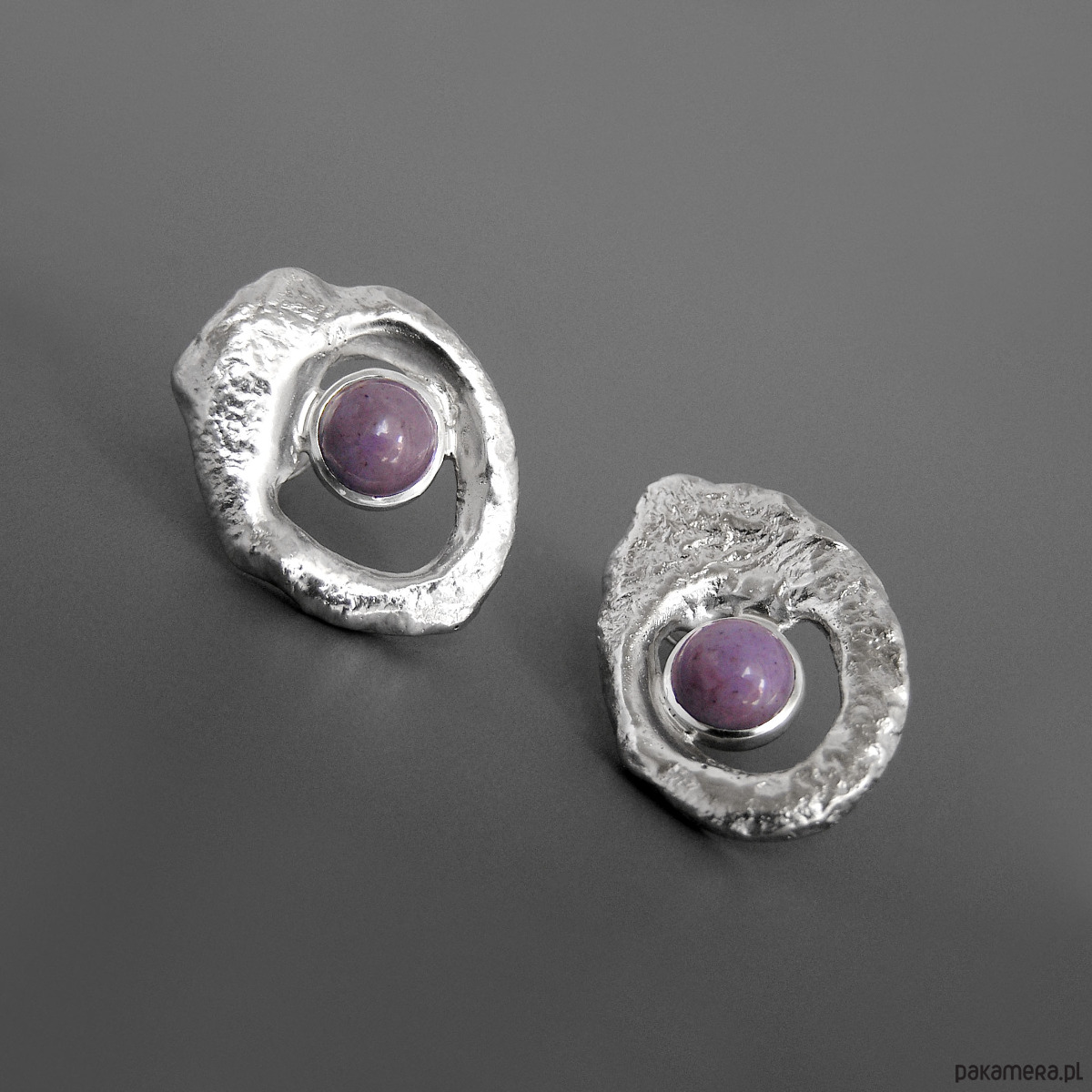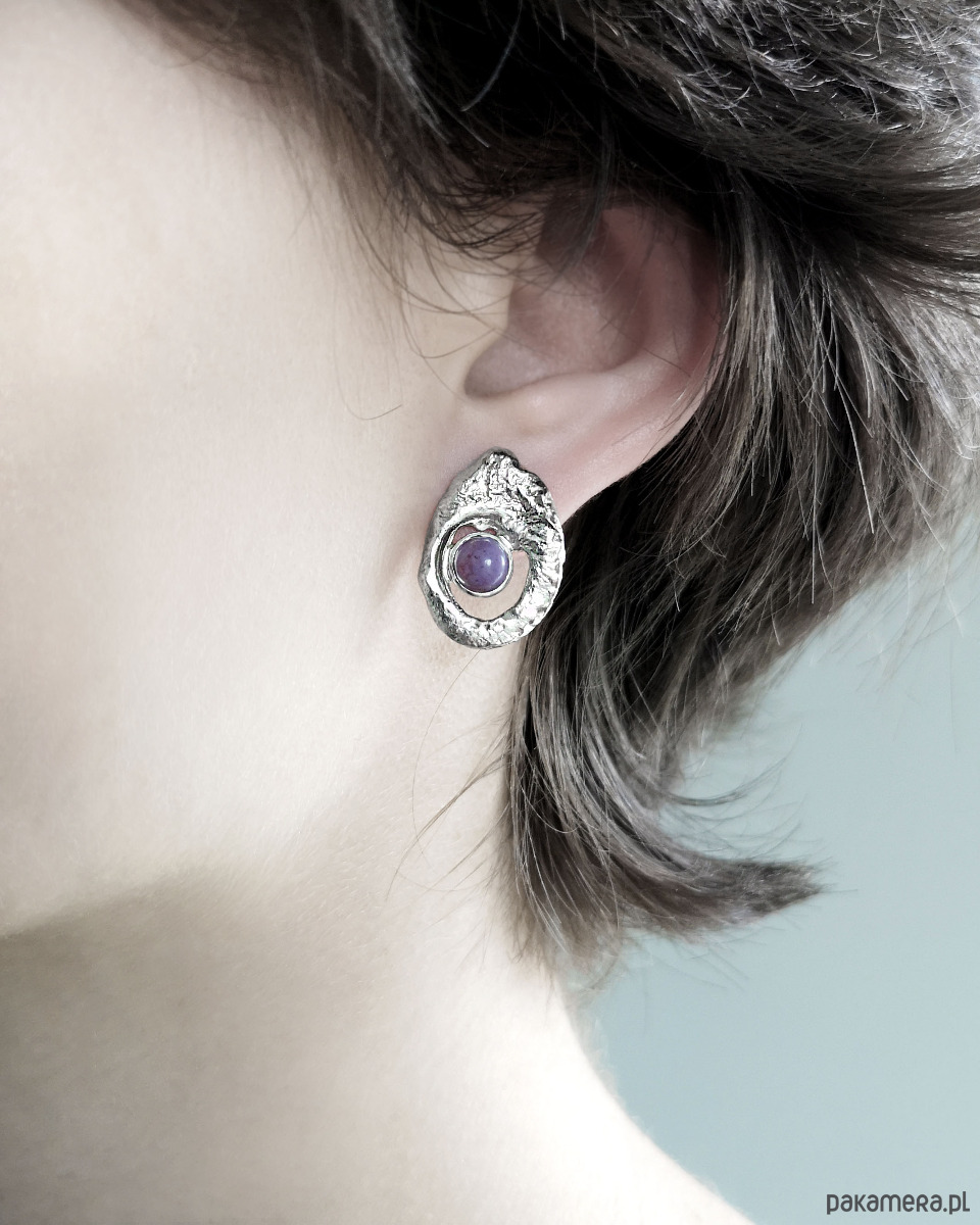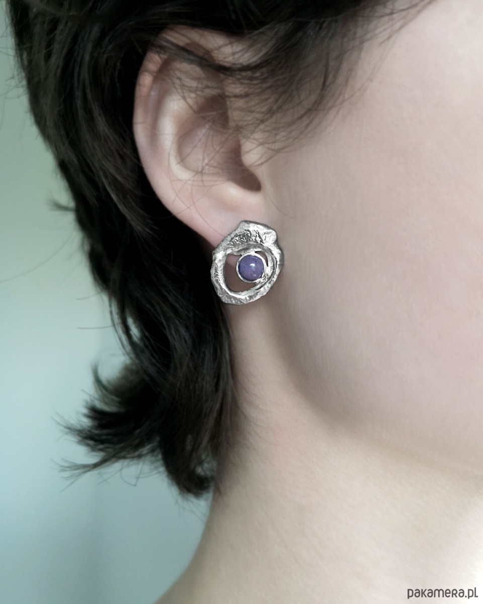 Unikatowe asymetryczne kolczyki wykonane ze srebra 925 z jaspisem lawendowym.