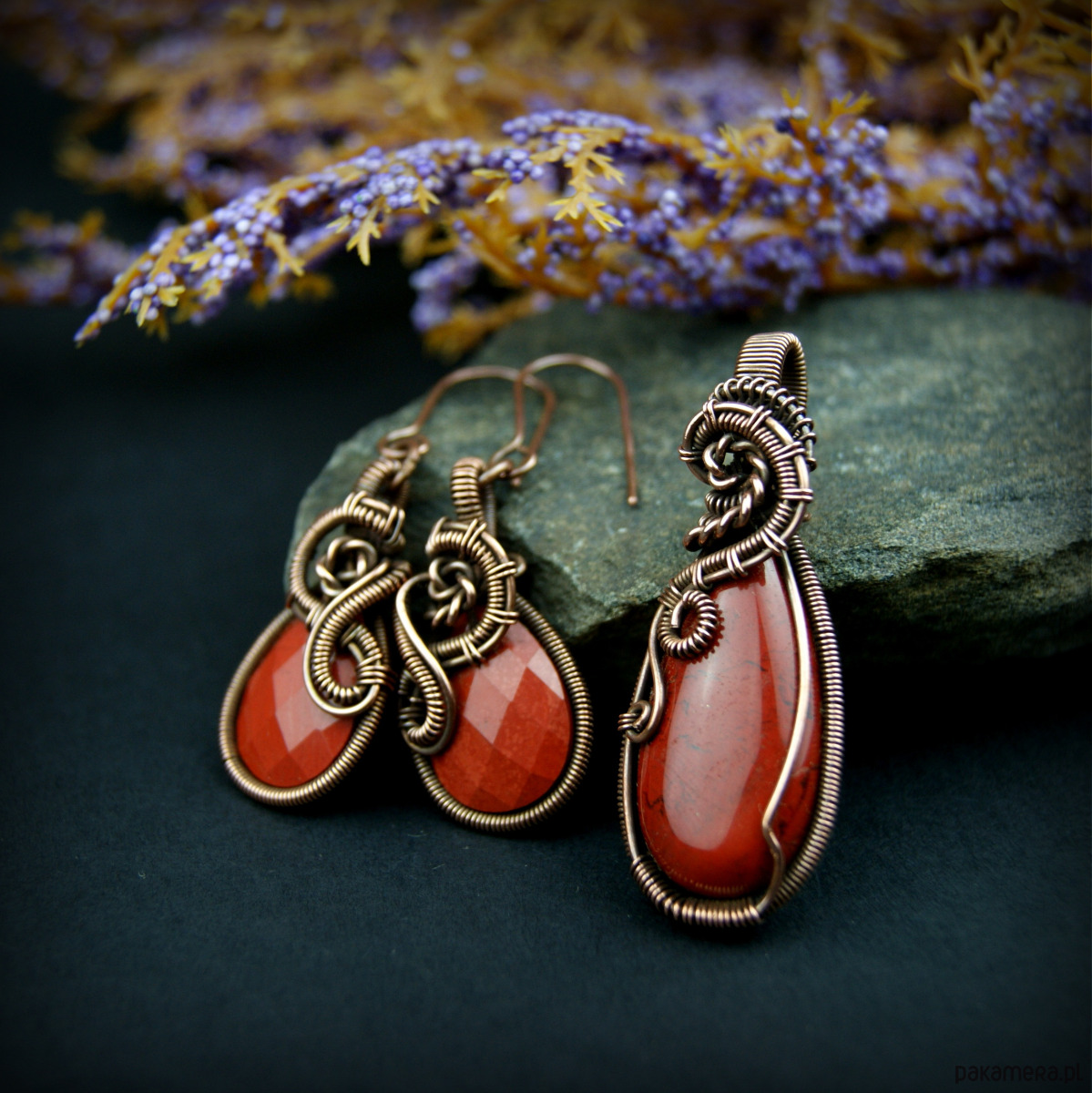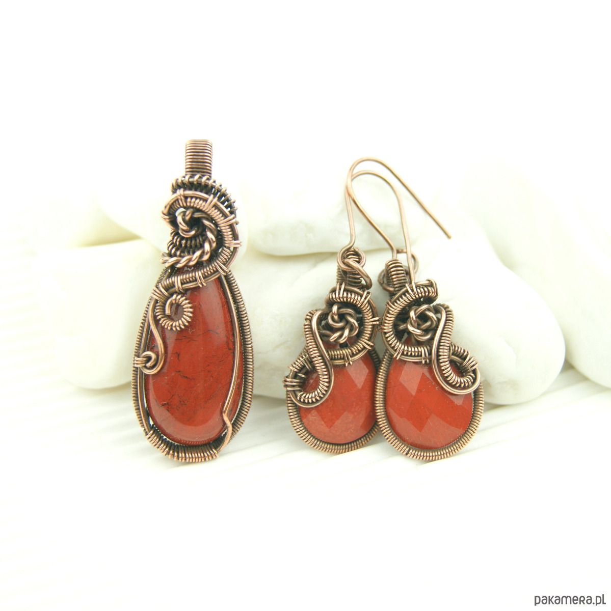 Materiał: jaspis, miedziany drut jubilerski.