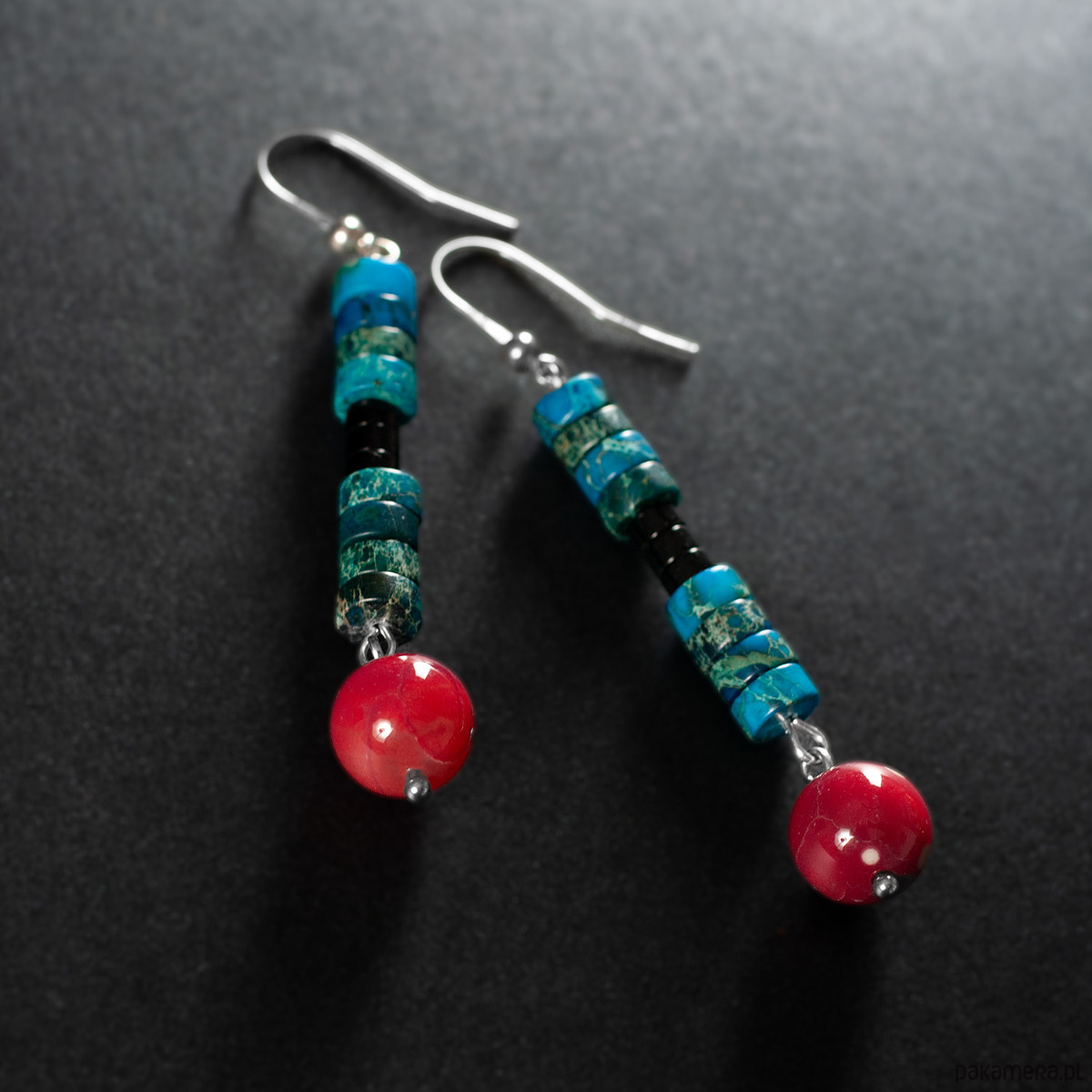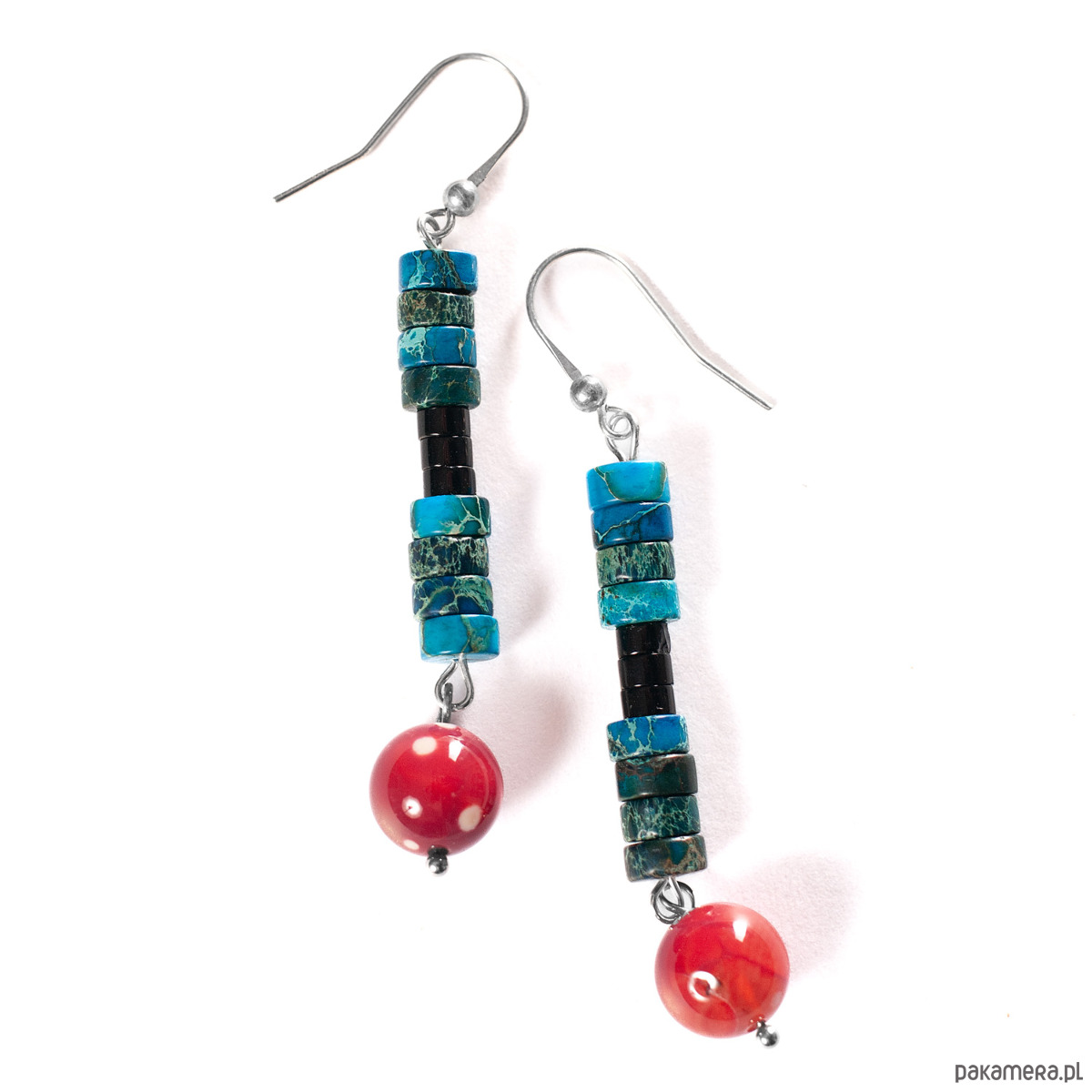 Kolczyki z jaspisem, onyksem i agatem. [SK20]