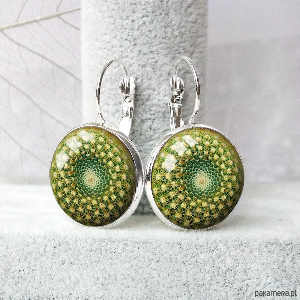 • Interesujące kolczyki zapinane, z grafiką artystyczną, zatopioną pod wypukłym szkiełkiem, dzięki któremu grafika nabiera trójwymiarowego wyrazu, w oprawie w kolorze srebrnym.