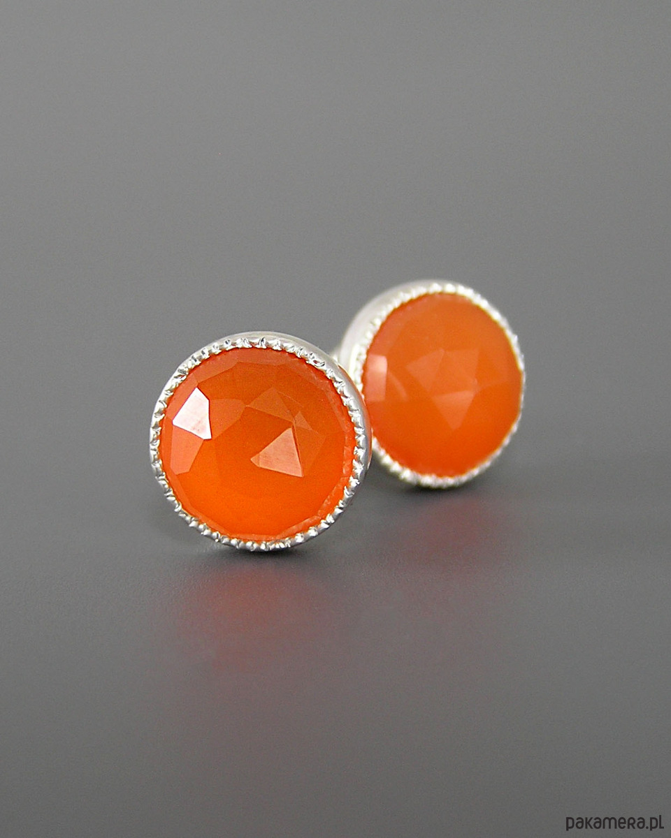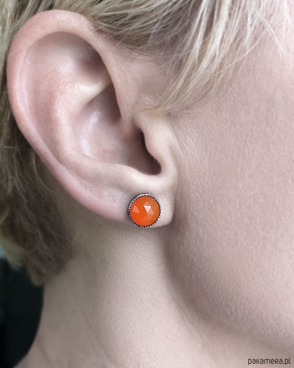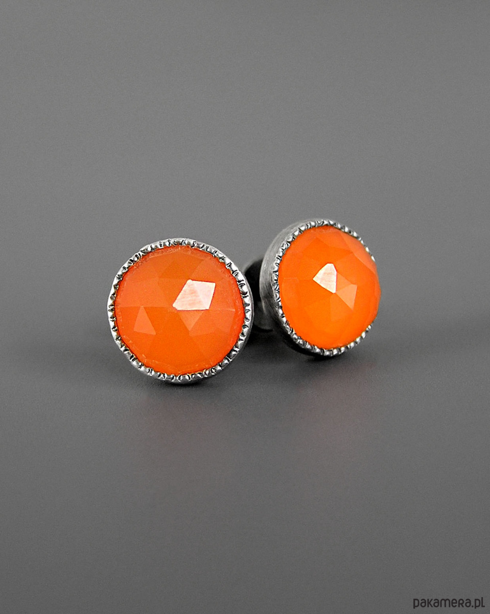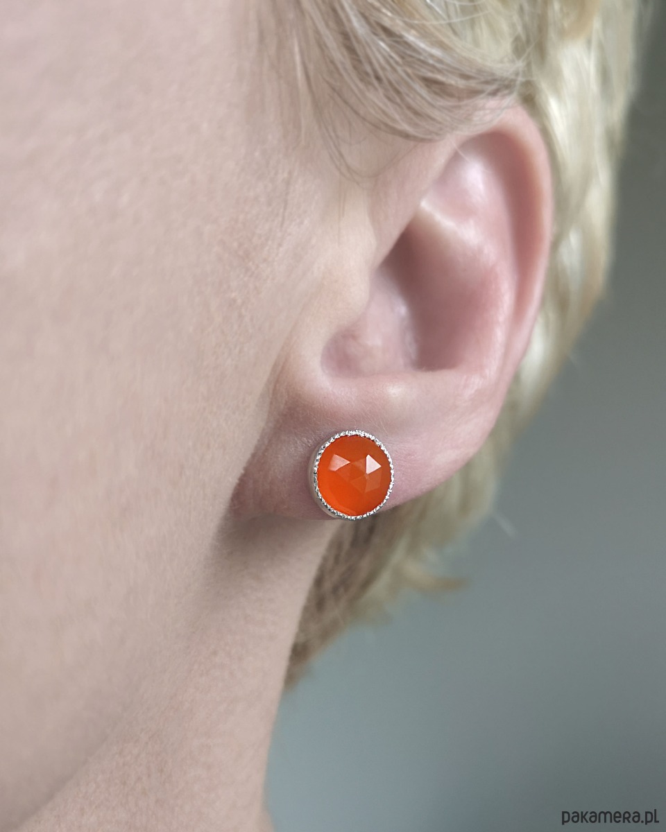 Unikatowe kolczyki wykonane ze srebra 925 z pomarańczowym fasetowanym karneolem.