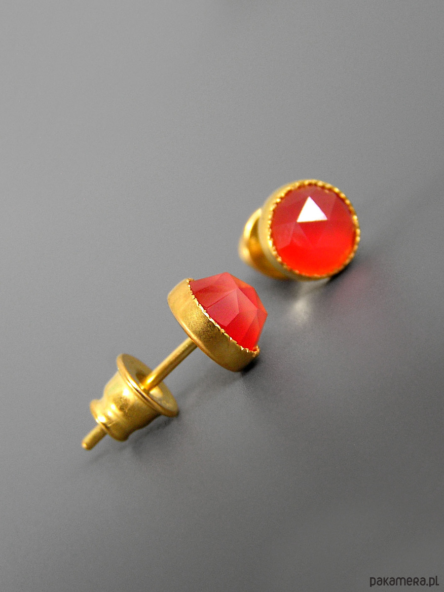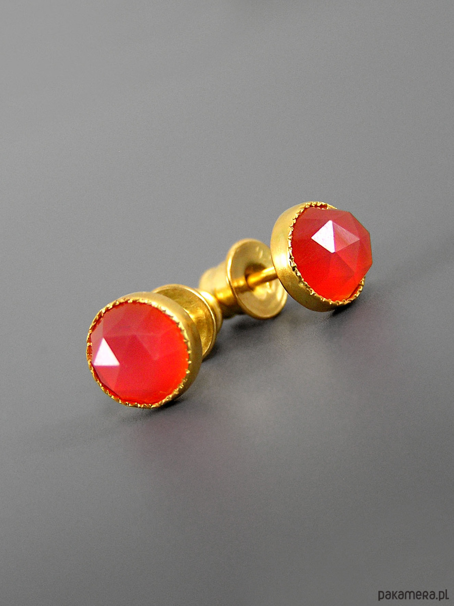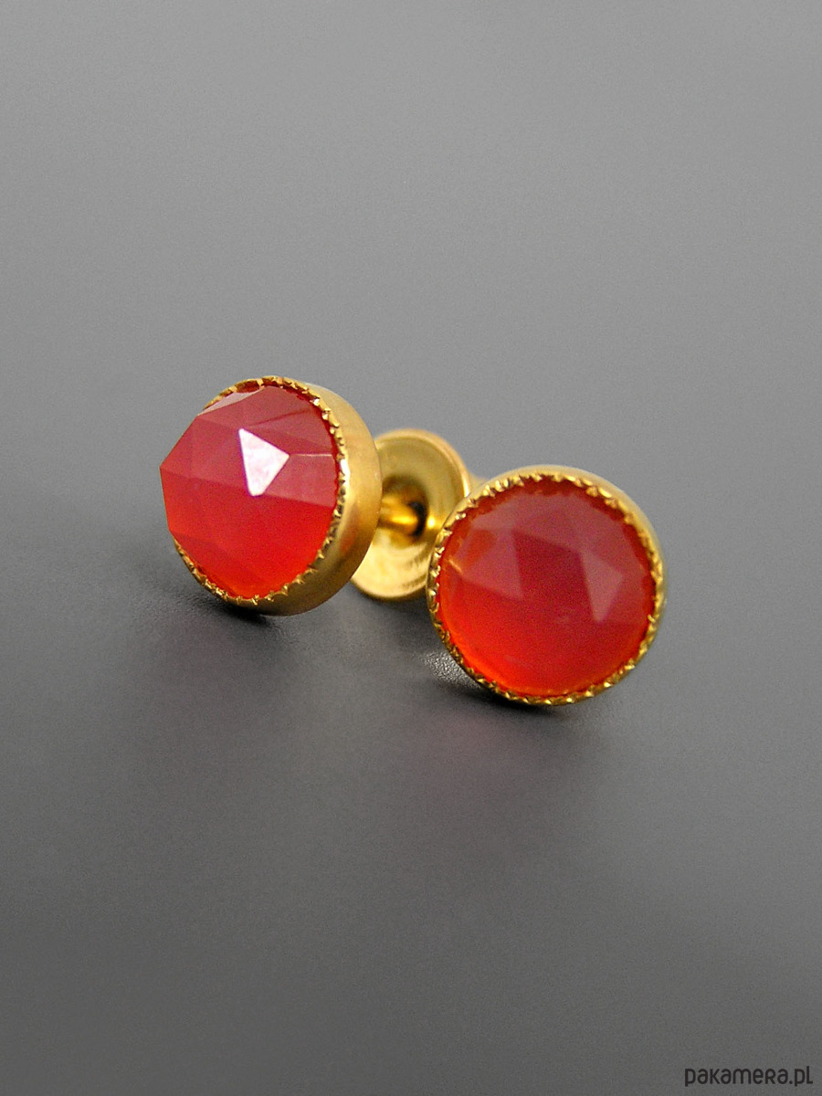 Unikatowe kolczyki wykonane ze srebra 925 z fasetowanym karneolem.
