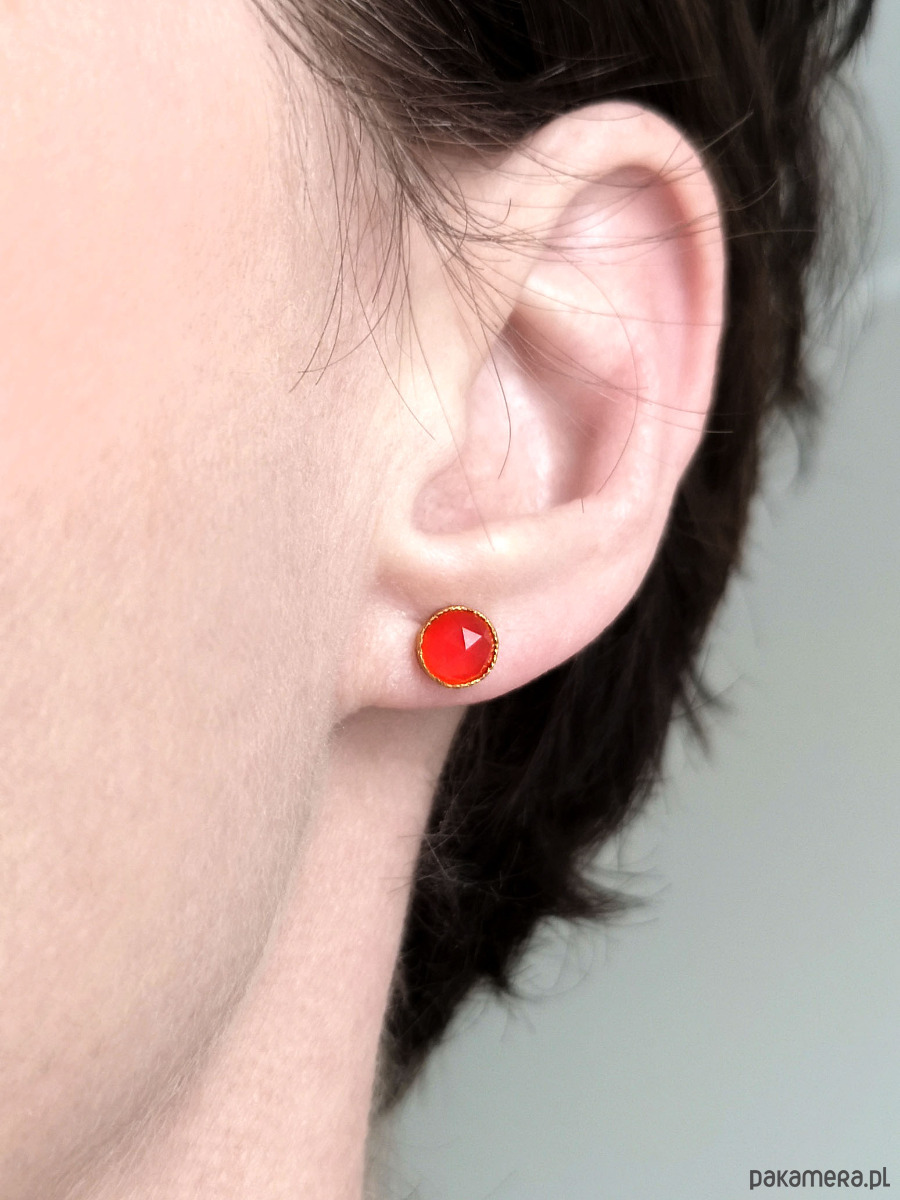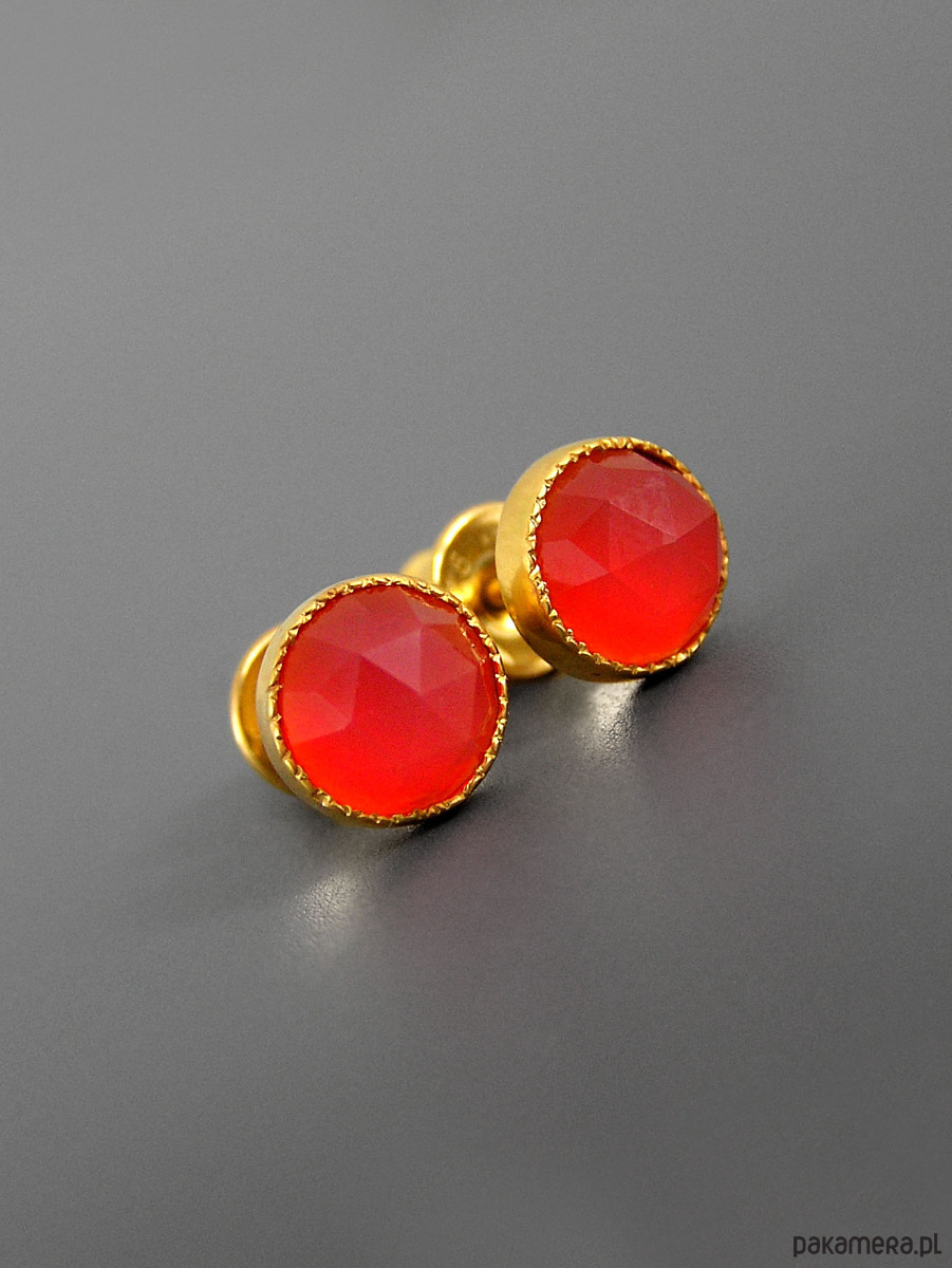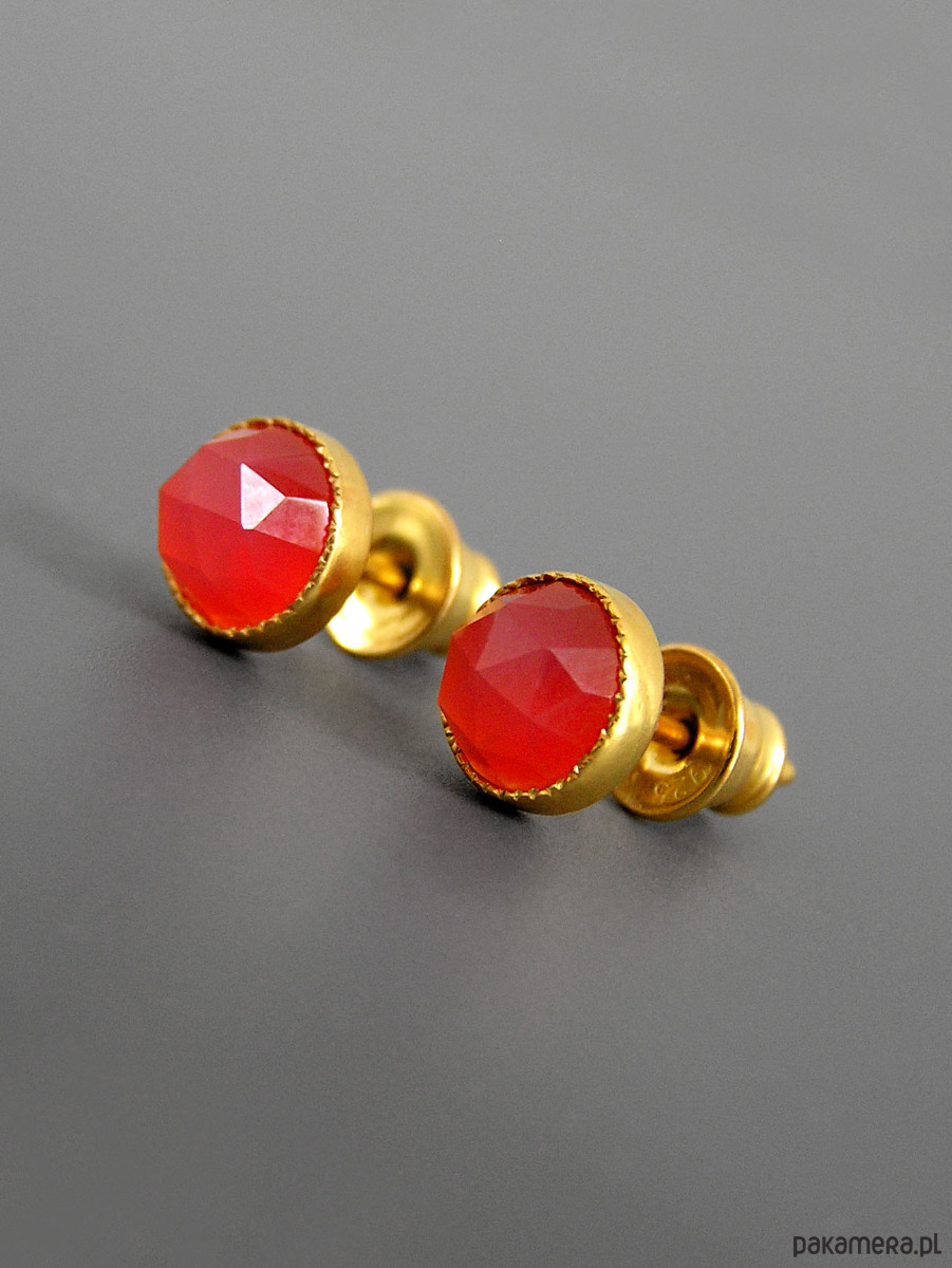Unikatowe kolczyki wykonane ze srebra 925 z fasetowanym karneolem.