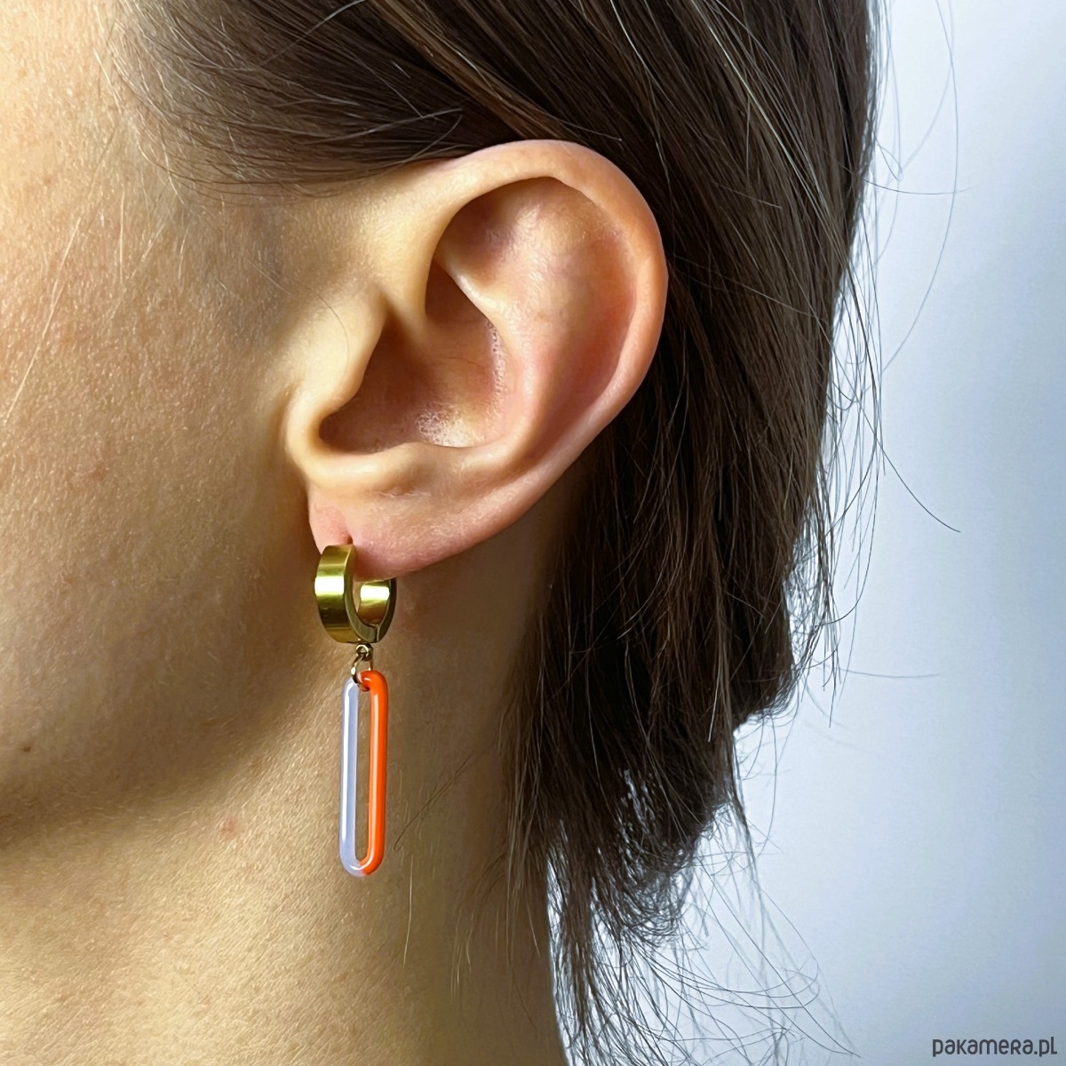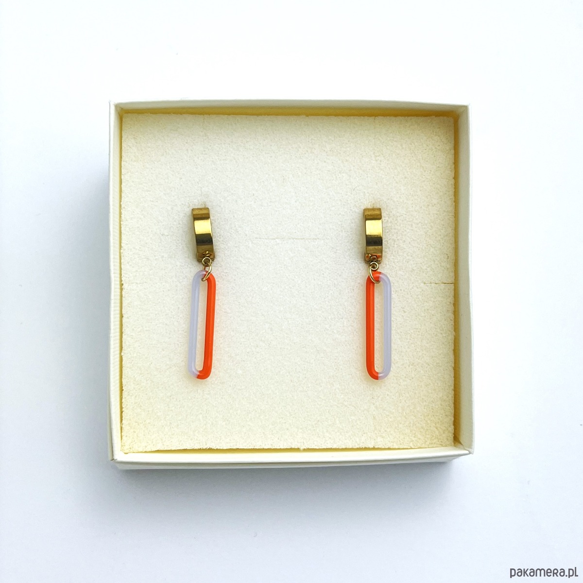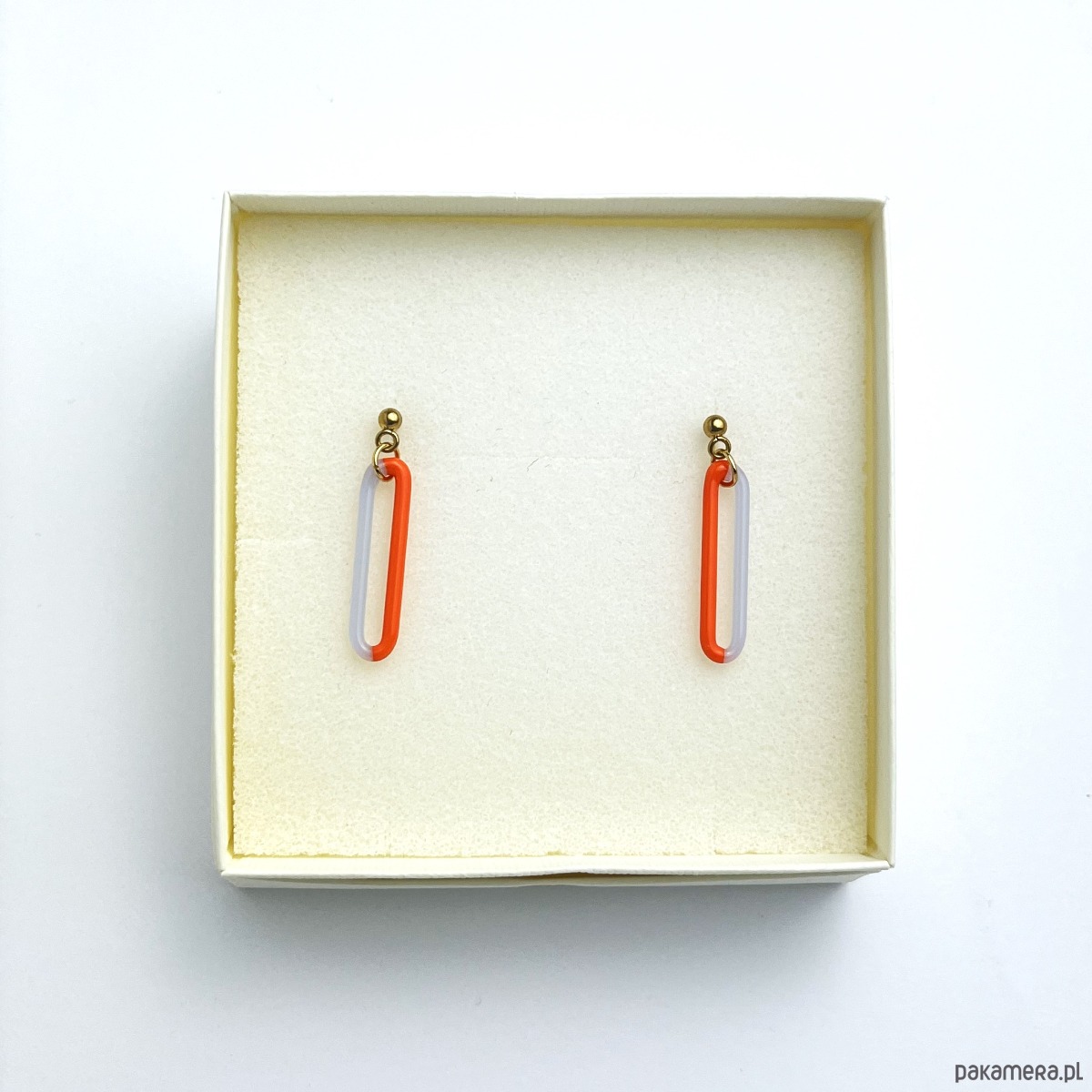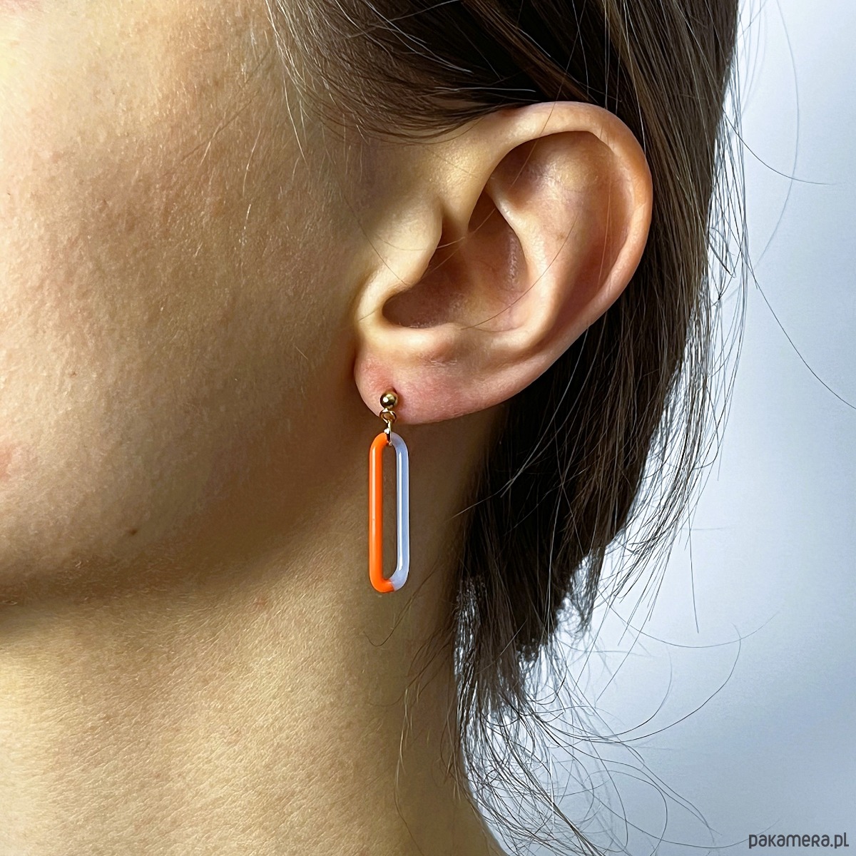Kolczyki z kolekcji DUO pomarańczowo - lawendowe