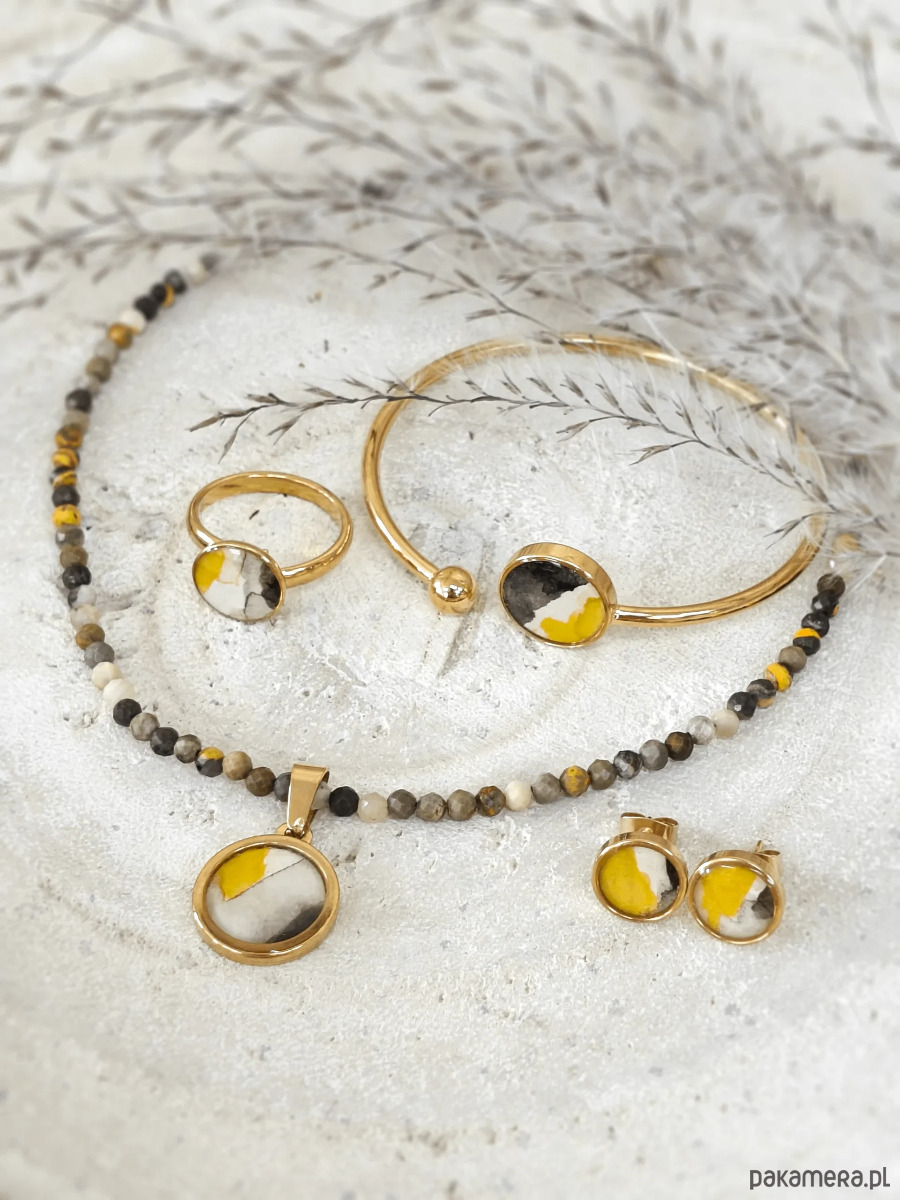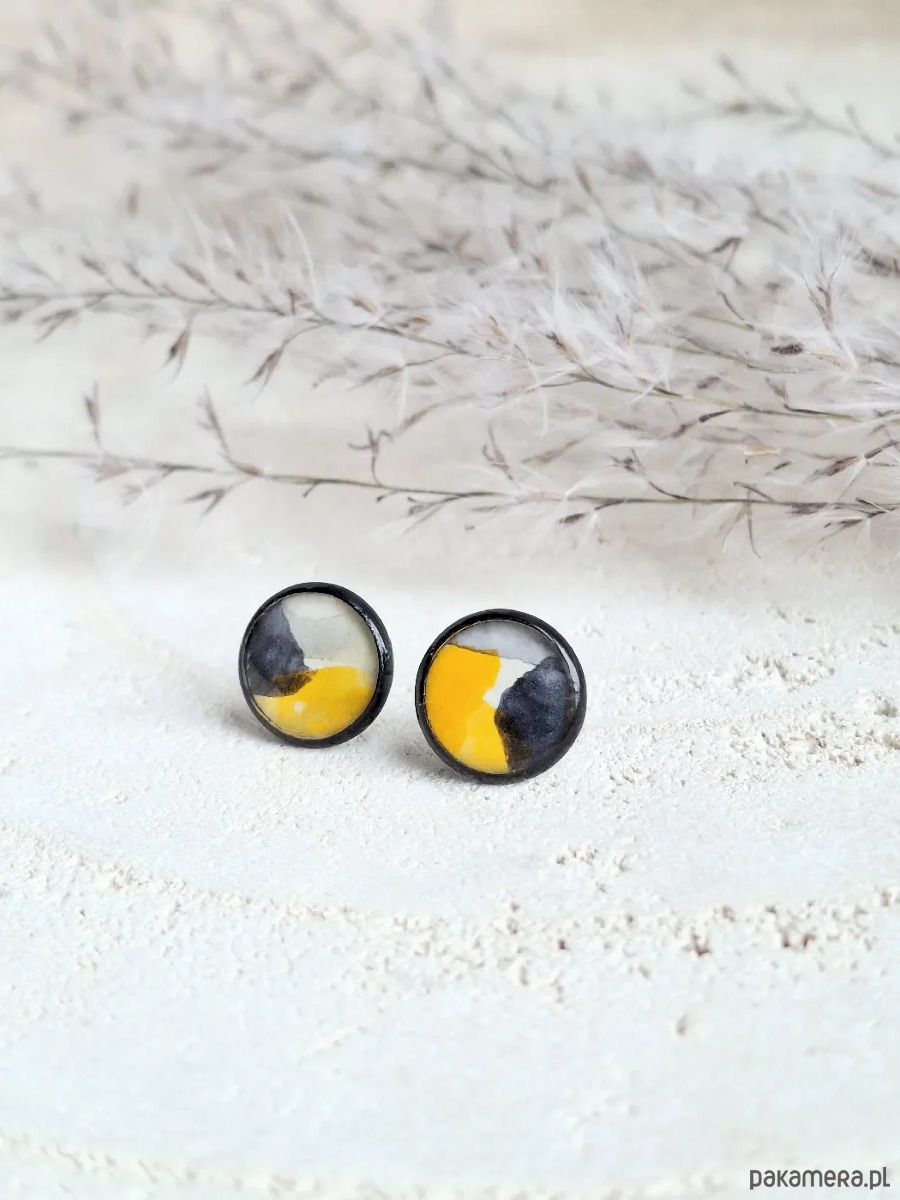 Te subtelne kolczyki z kolekcji „Gąska” to kwintesencja delikatności i naturalnego piękna. Na tle ręcznie malowanej akwareli w odcieniach żółci, bieli, szarości i czerni, znajduje się unikalny wzór, stworzony z dbałością o każdy szczegół. Jego naturalne piękno, uchwycone z precyzją, tworzy kolczyki, które zachwycają swoją lekkością i oryginalnością. Tło, malowane z precyzją przy użyciu japońskich akwareli z naturalnych pigmentów, dodaje kolczykom unikalnego charakteru i artystycznego wyrazu. Baza kolczyków, wykonana z trwałej i hipoalergicznej stali chirurgicznej, gwarantuje komfort noszenia i stanowi elegancki kontrast dla kolorowych akwareli. Te ręcznie robione kolczyki to doskonały wybór dla kobiet, które cenią sobie oryginalność i piękno. To również idealny pomysł na prezent, pełen delikatności, wdzięku i artystycznego ducha.