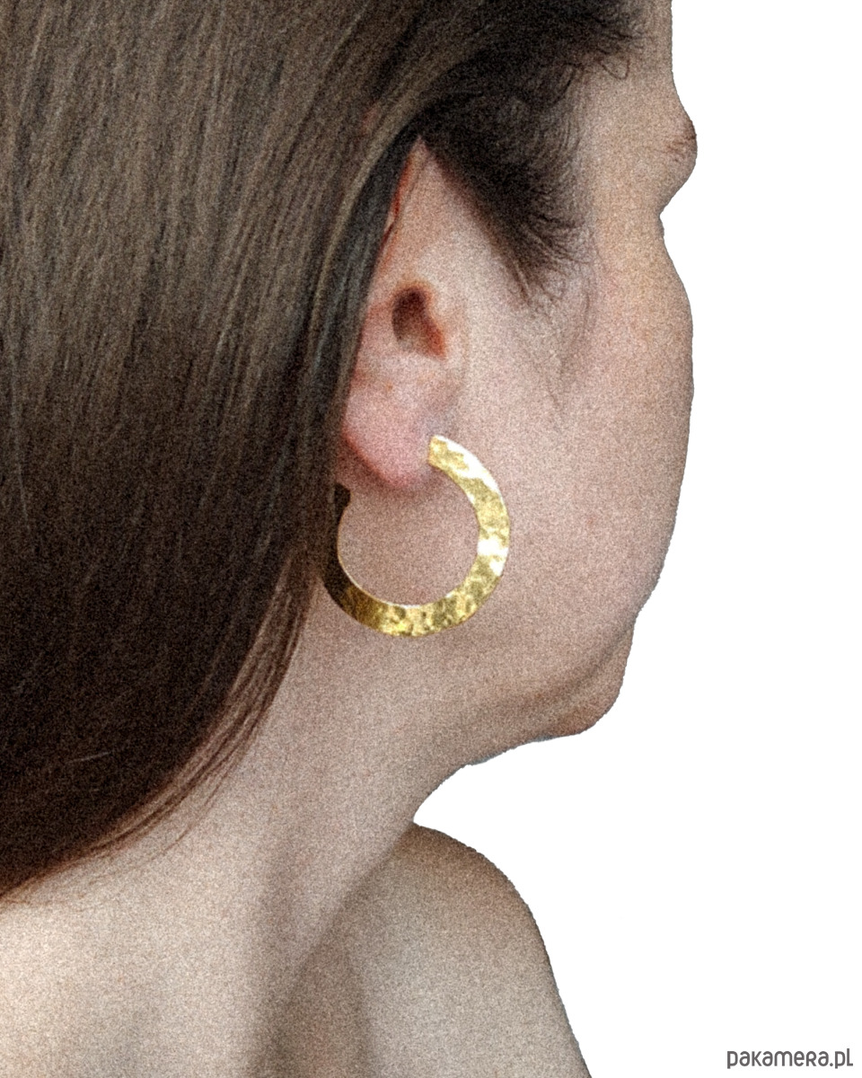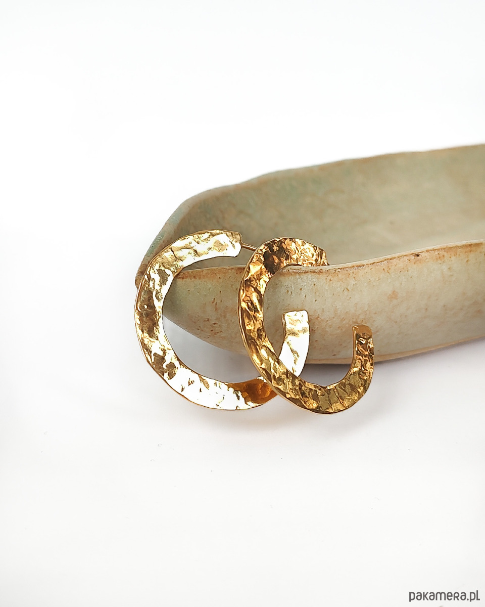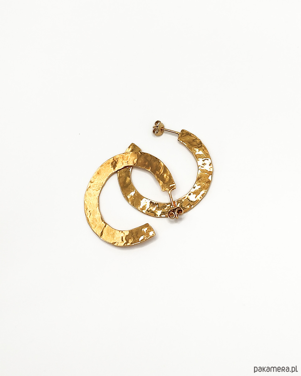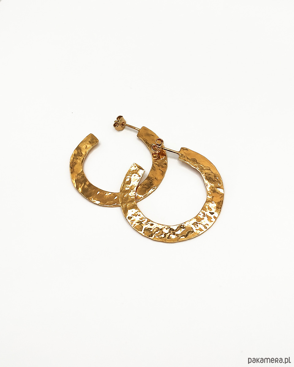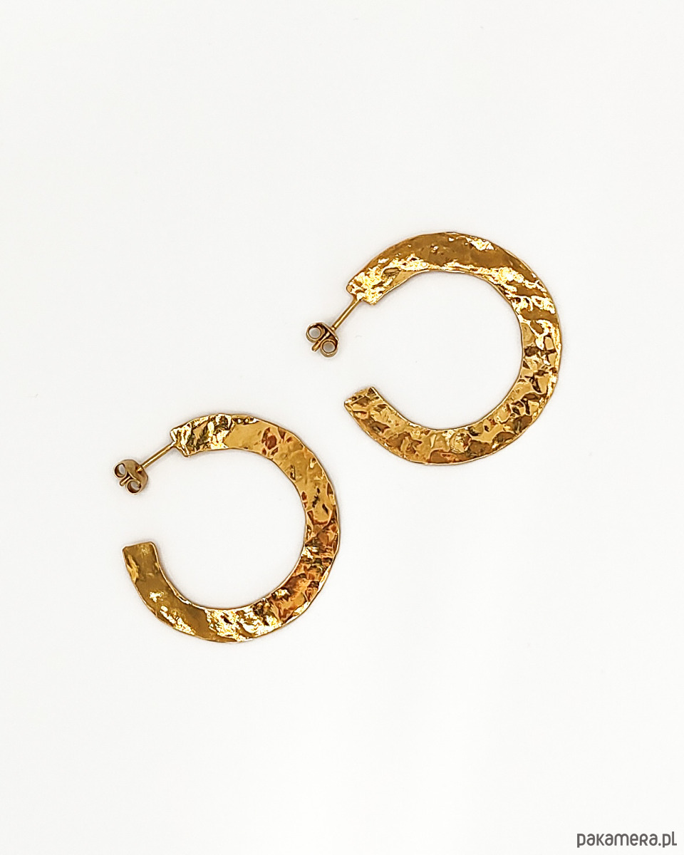 Te eleganckie kolczyki na sztyfcie, o imponującej średnicy 3,5 cm, stanowią wyrazisty dodatek do każdej stylizacji. Ich młotkowana, ręcznie wykonana powierzchnia, przypominająca mieniącą się wodę, nadaje im unikalny charakter i sprawia, że są idealnym wyborem zarówno na co dzień, jak i na wyjątkowe okazje.