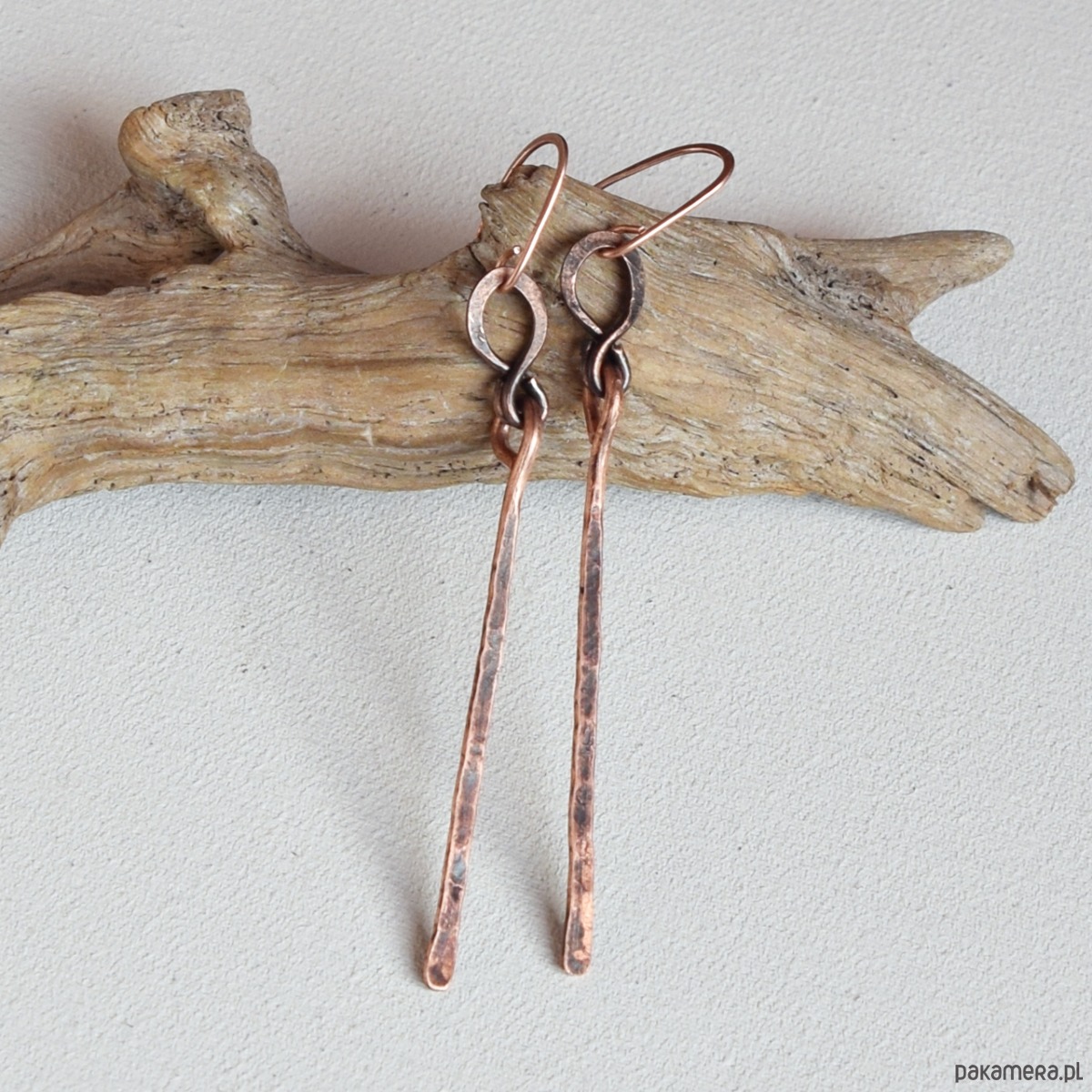 Kolczyki z kutej oksydowanej miedzi długie /69/