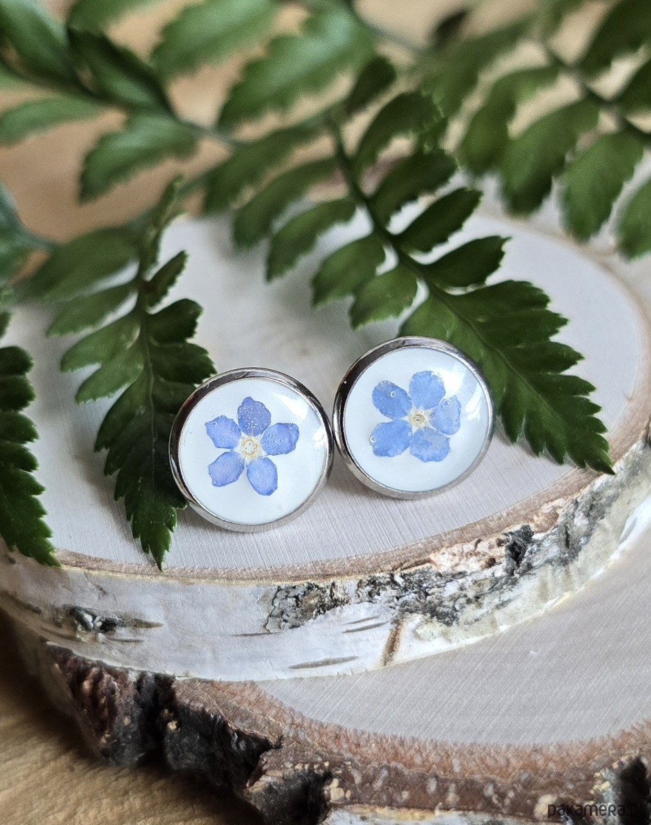 Oferuję Państwu unikalną biżuterię. Kolczyki są wykonane z suszonych kwiatów i żywicy epoksydowej. Biżuteria jest wspaniałym i oryginalnym prezentem na lata.