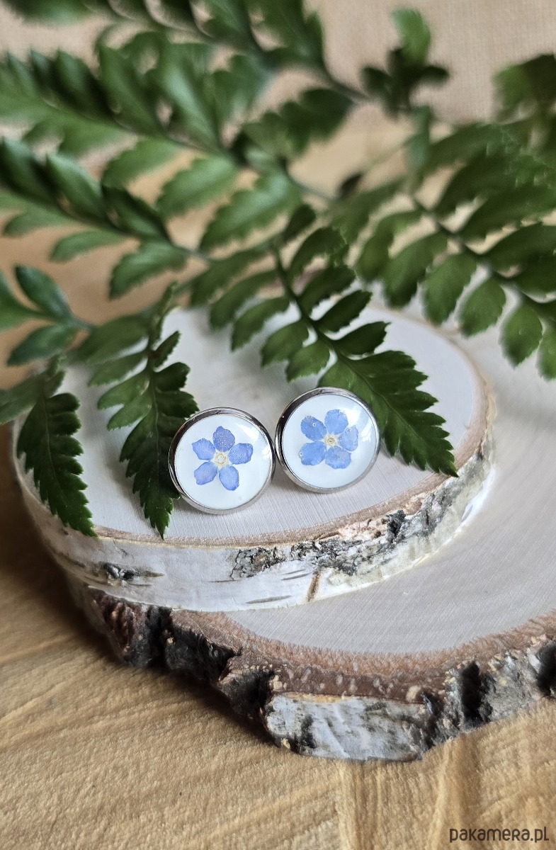 Kolczyki z kwiatami niezapominajkami srebrne