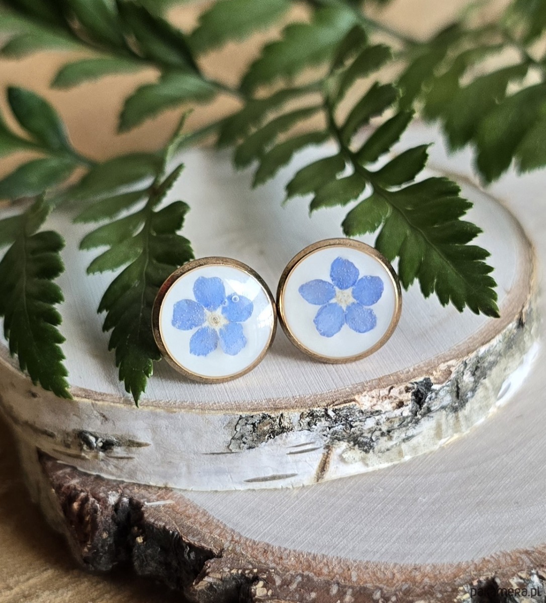 Oferuję Państwu unikalną biżuterię. Kolczyki są wykonane z suszonych kwiatów i żywicy epoksydowej. Biżuteria jest wspaniałym i oryginalnym prezentem na lata.