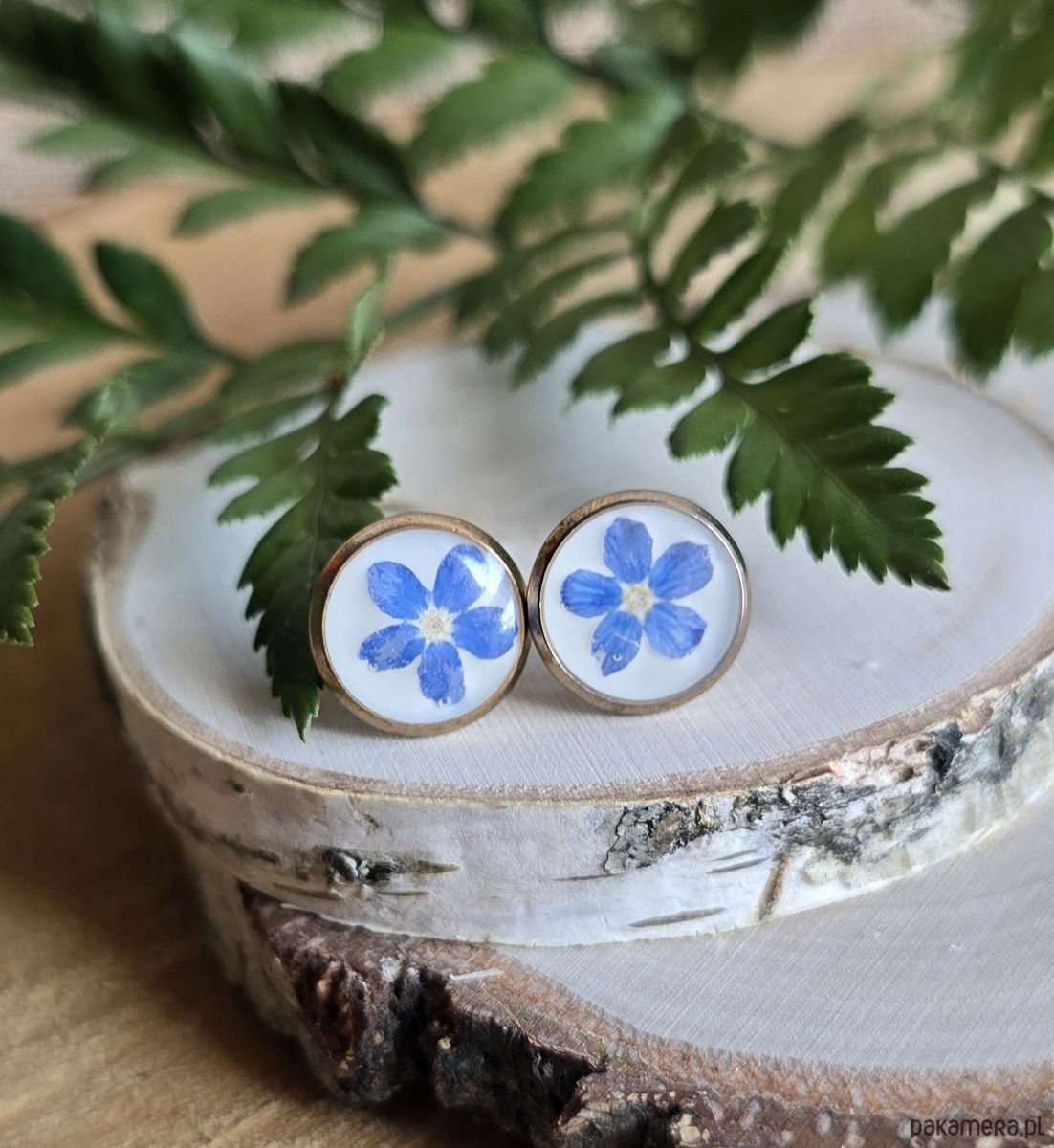 Oferuję Państwu unikalną biżuterię. Kolczyki są wykonane z suszonych kwiatów i żywicy epoksydowej. Biżuteria jest wspaniałym i oryginalnym prezentem na lata.