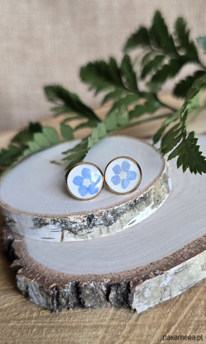 Kolczyki z kwiatami niezapominajkami złote