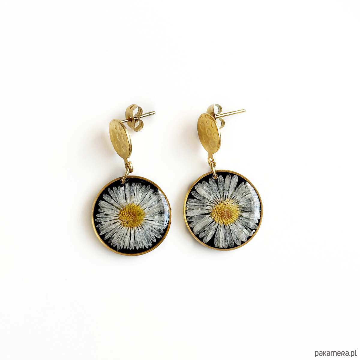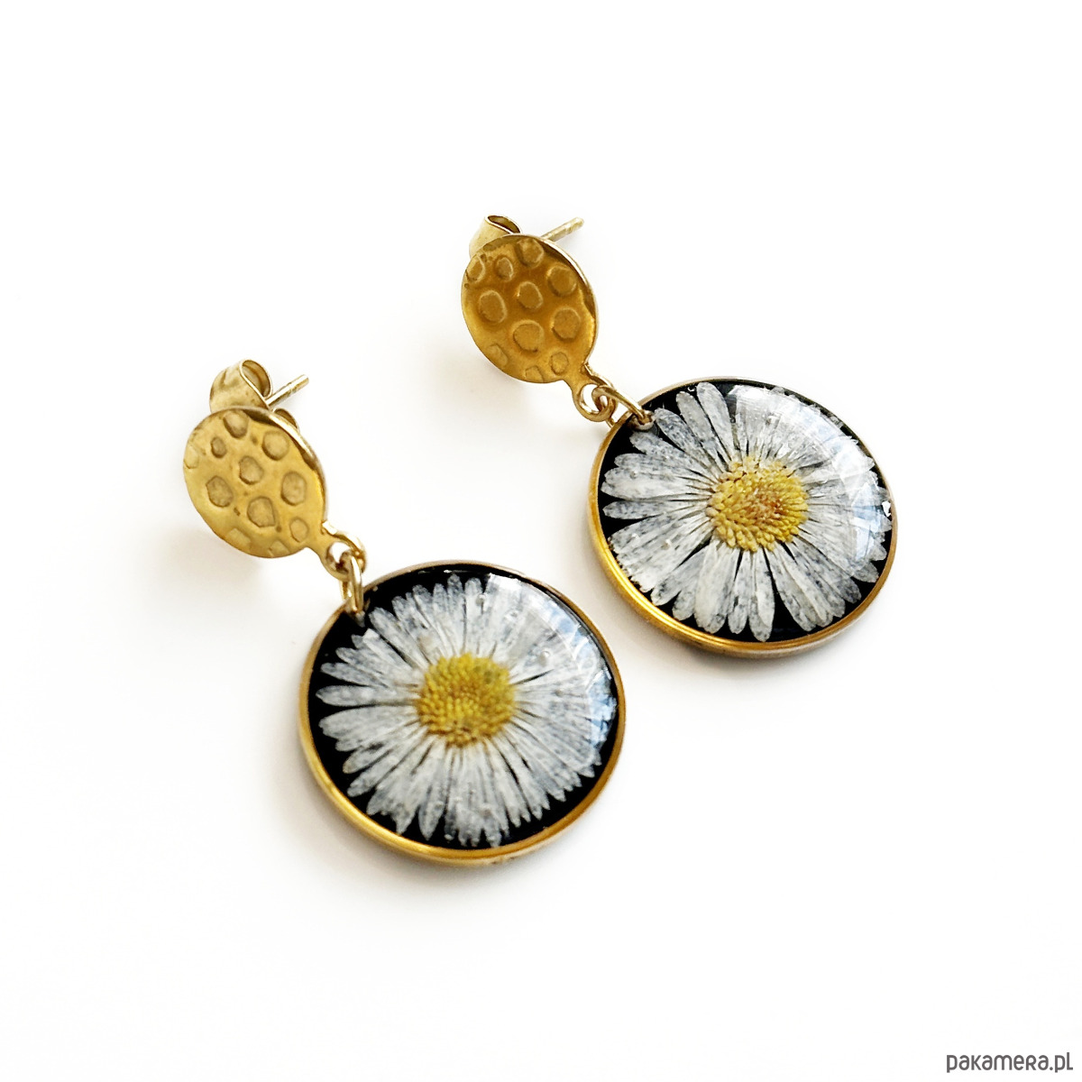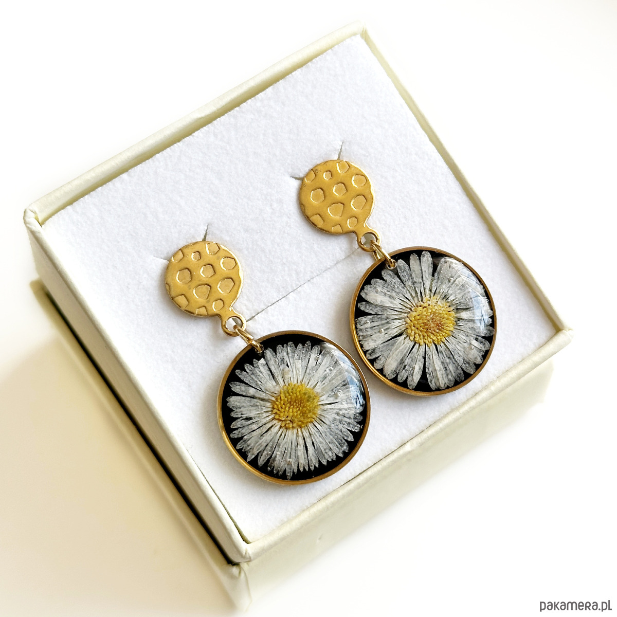 Kolczyki wiszące wykonane ze stali szlachetnej oraz żywicy epoksydowej.