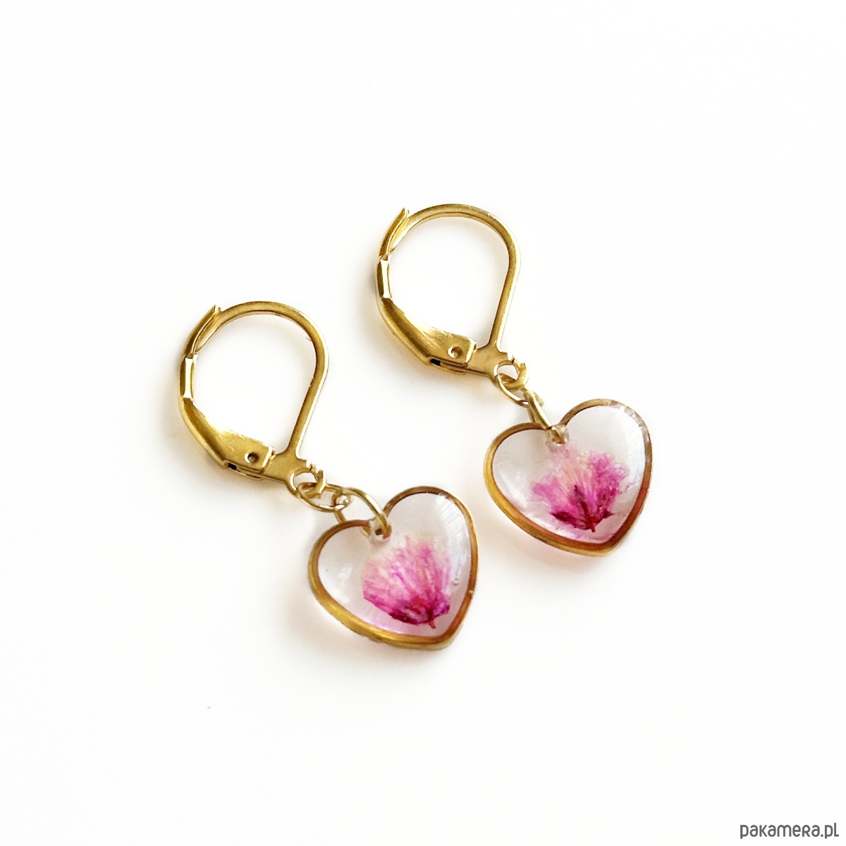 Kolczyki wiszące wykonane ze stali szlachetnej oraz żywicy epoksydowej.